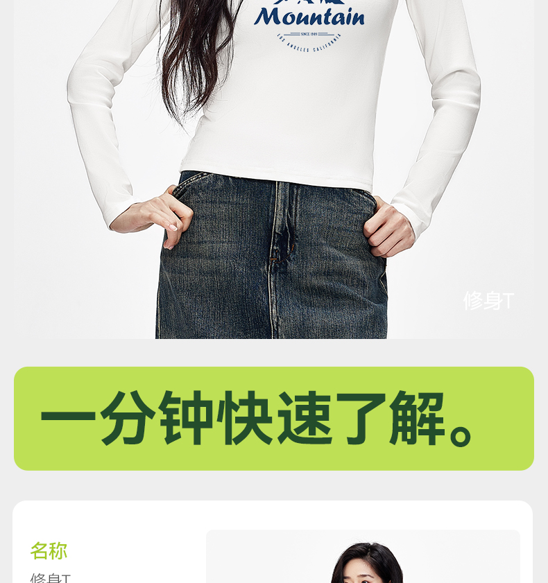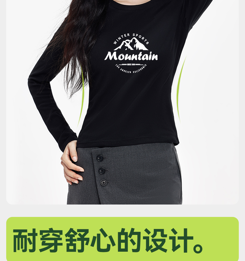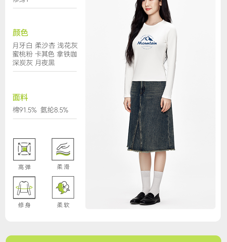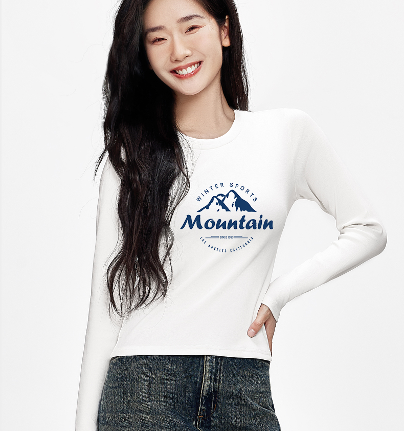 「棉的美学」正肩修身长袖打底衫女印花新款简约修身显瘦可外穿上衣