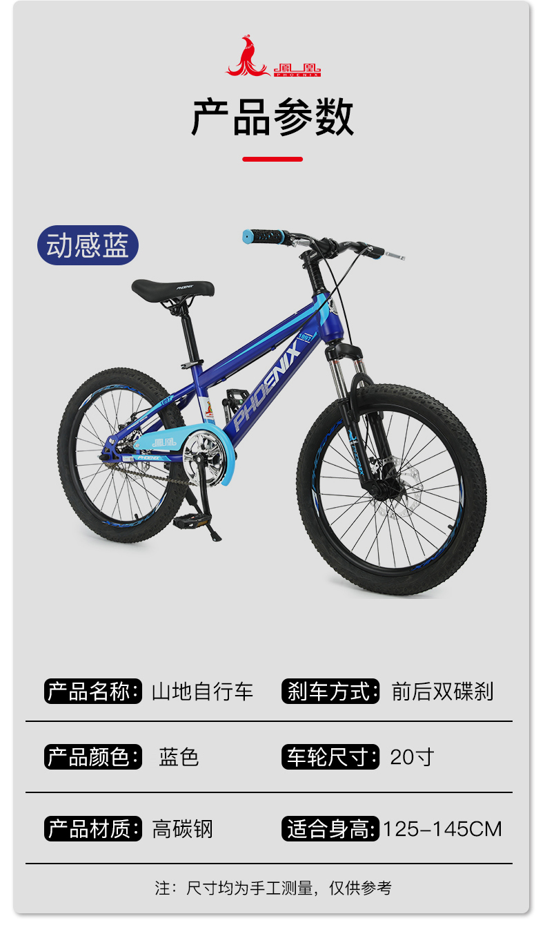 凤凰20寸学生自行车-贝TT-20塔95%装 蓝色