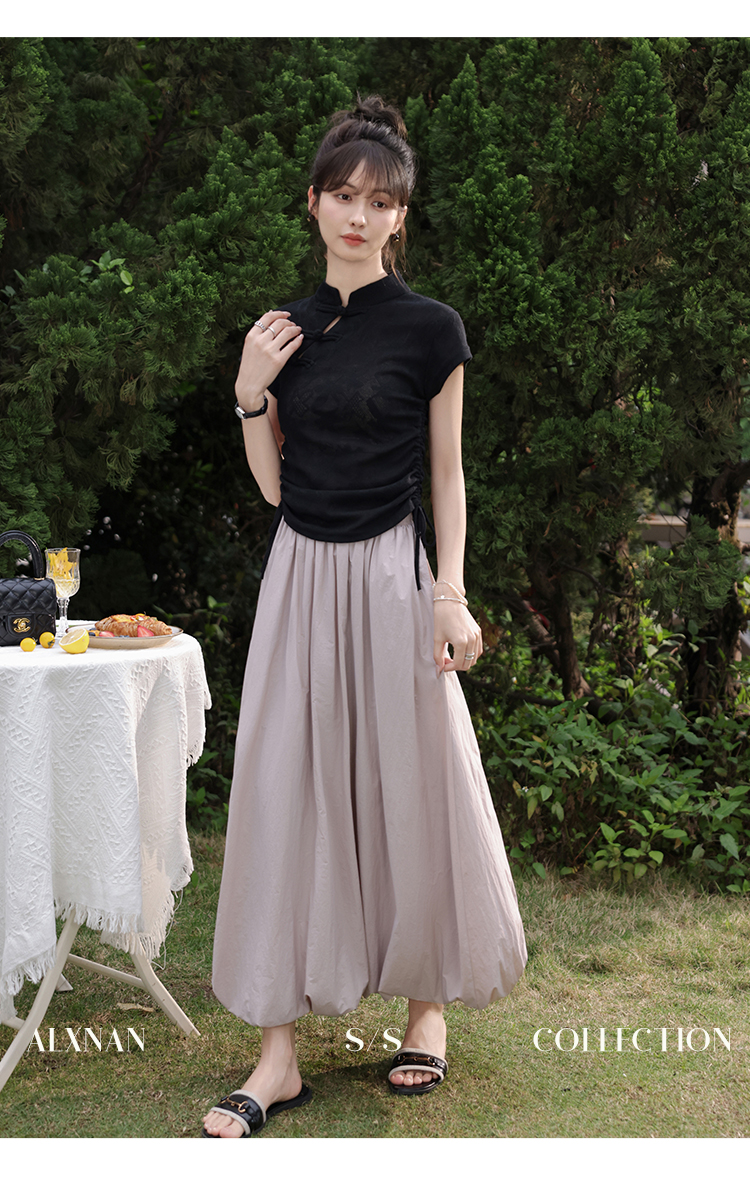 【6折秒杀】鹿向南「又见乌托邦」法式花苞裙女新款夏高腰宽松长款半身裙L35929