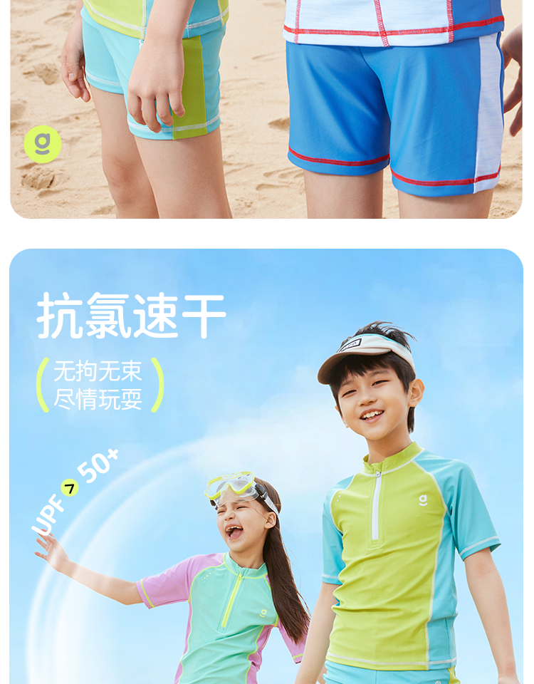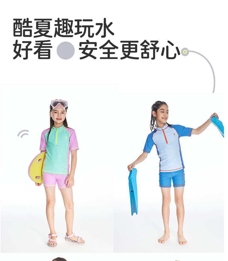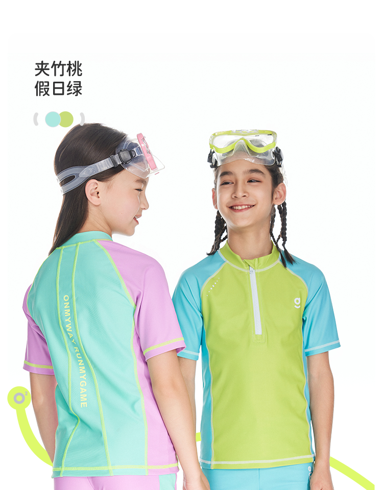 onmygame儿童分体泳衣泳裤套装2024新款男女童速干短裤短袖夏季