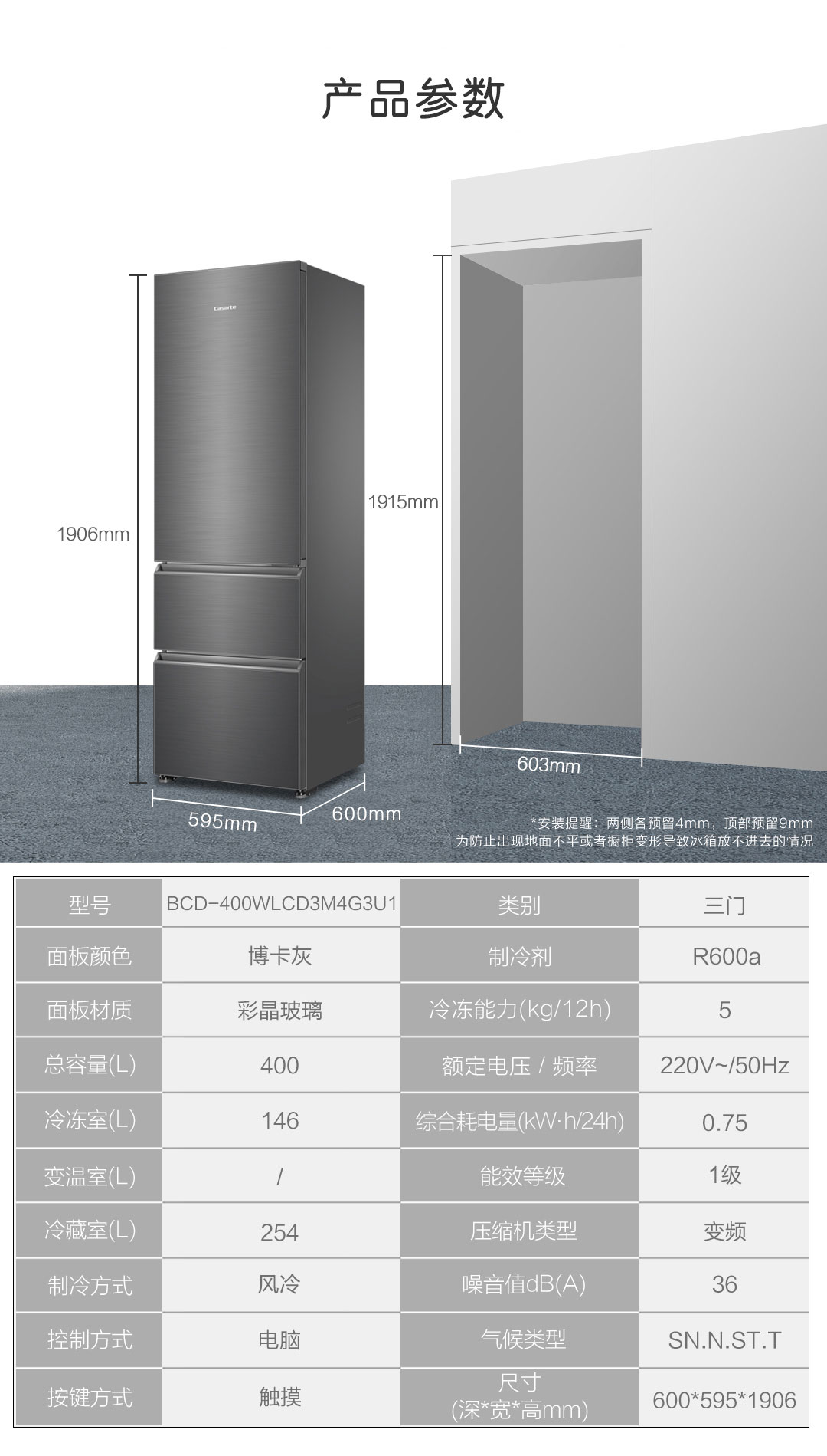 【限天津区域】卡萨帝/冰箱/BCD-400WLCD3M4G3U1