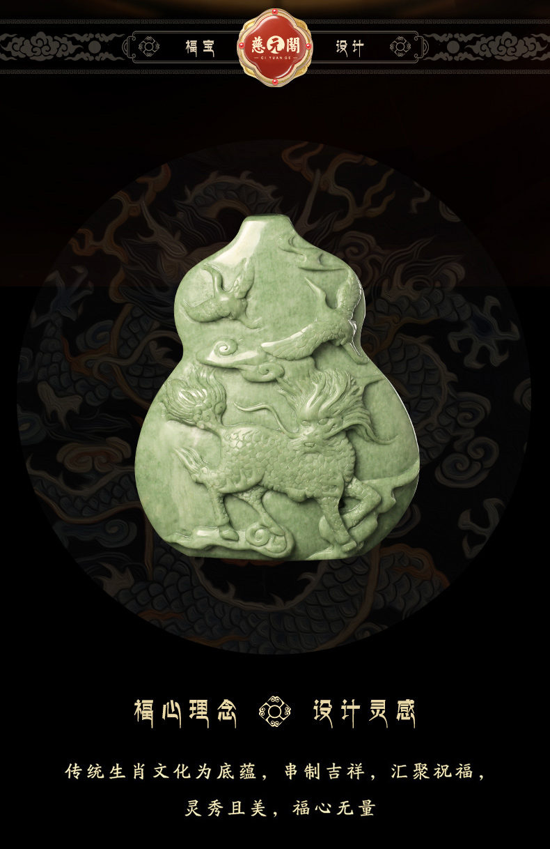 慈元阁高端福禄吊坠翡翠和田玉多宝发晶玉牌项链生肖纪念日