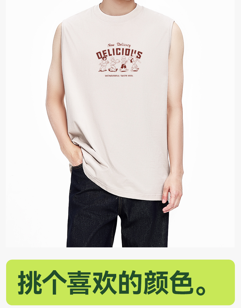 「棉的美学」夏日运动纯棉背心男印花款夏健身休闲透气无袖T恤
