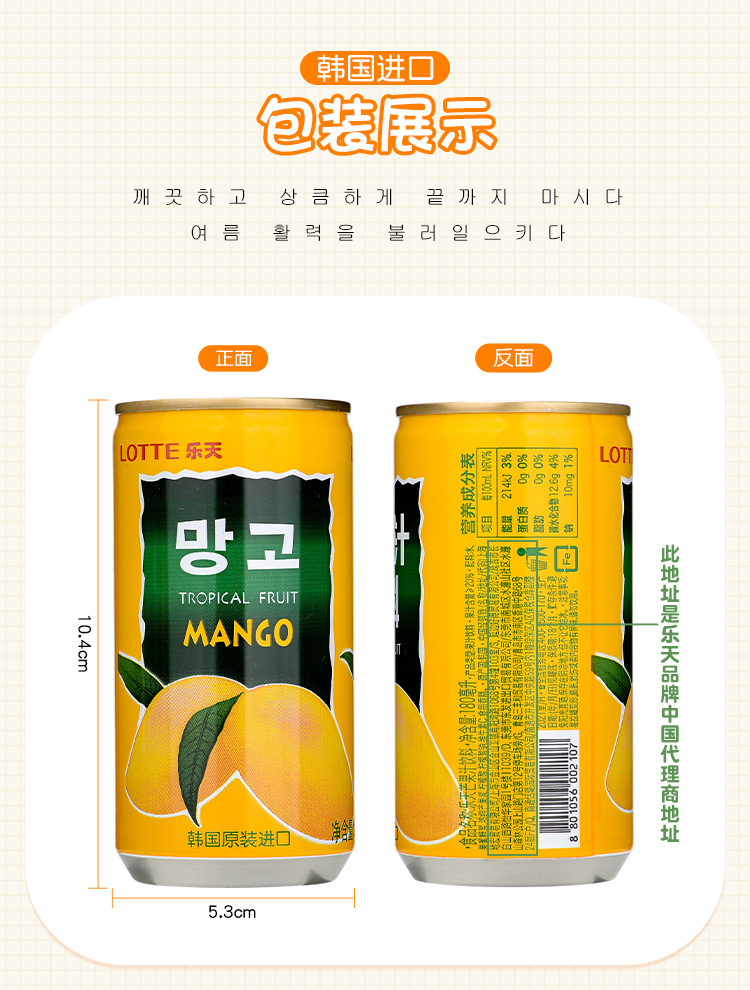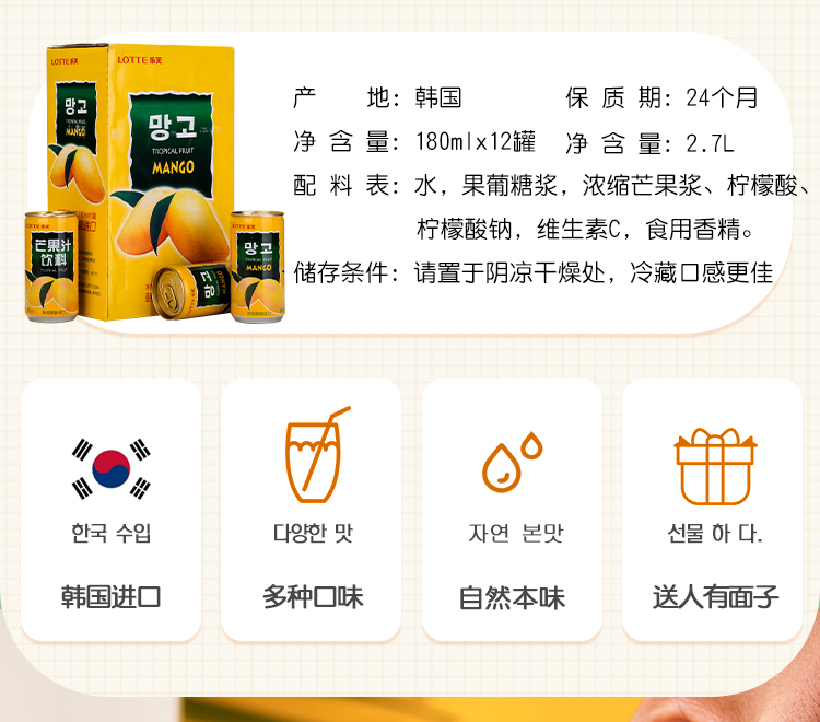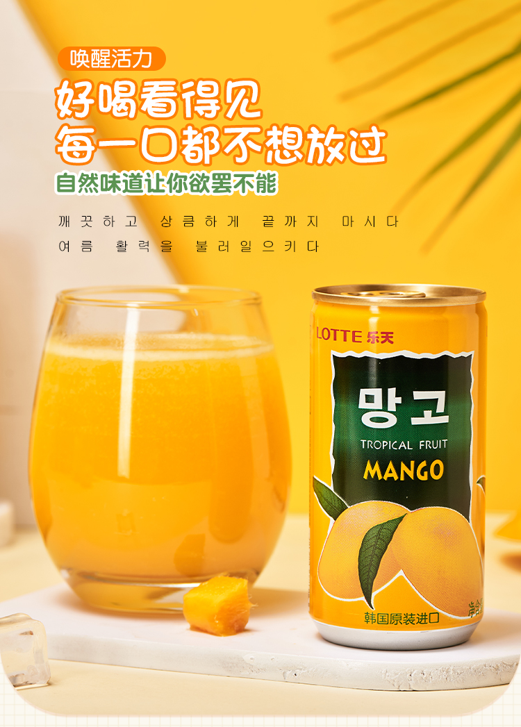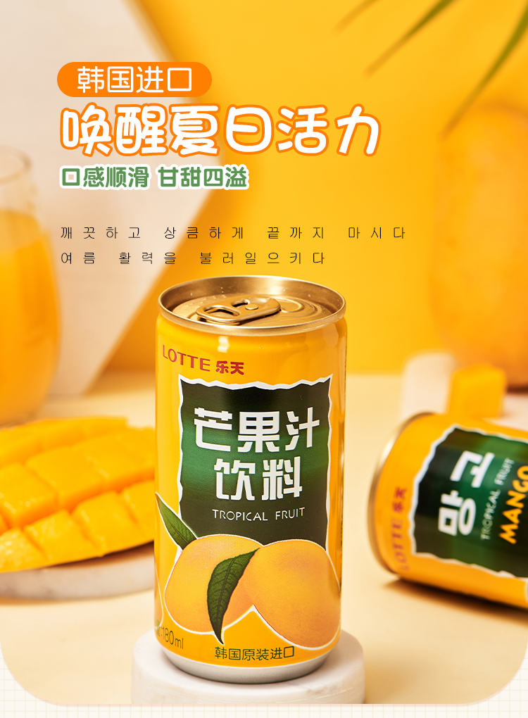 【乐天】韩国原装进口 网红饮料整箱 LOTTE乐天芒果汁饮品罐装