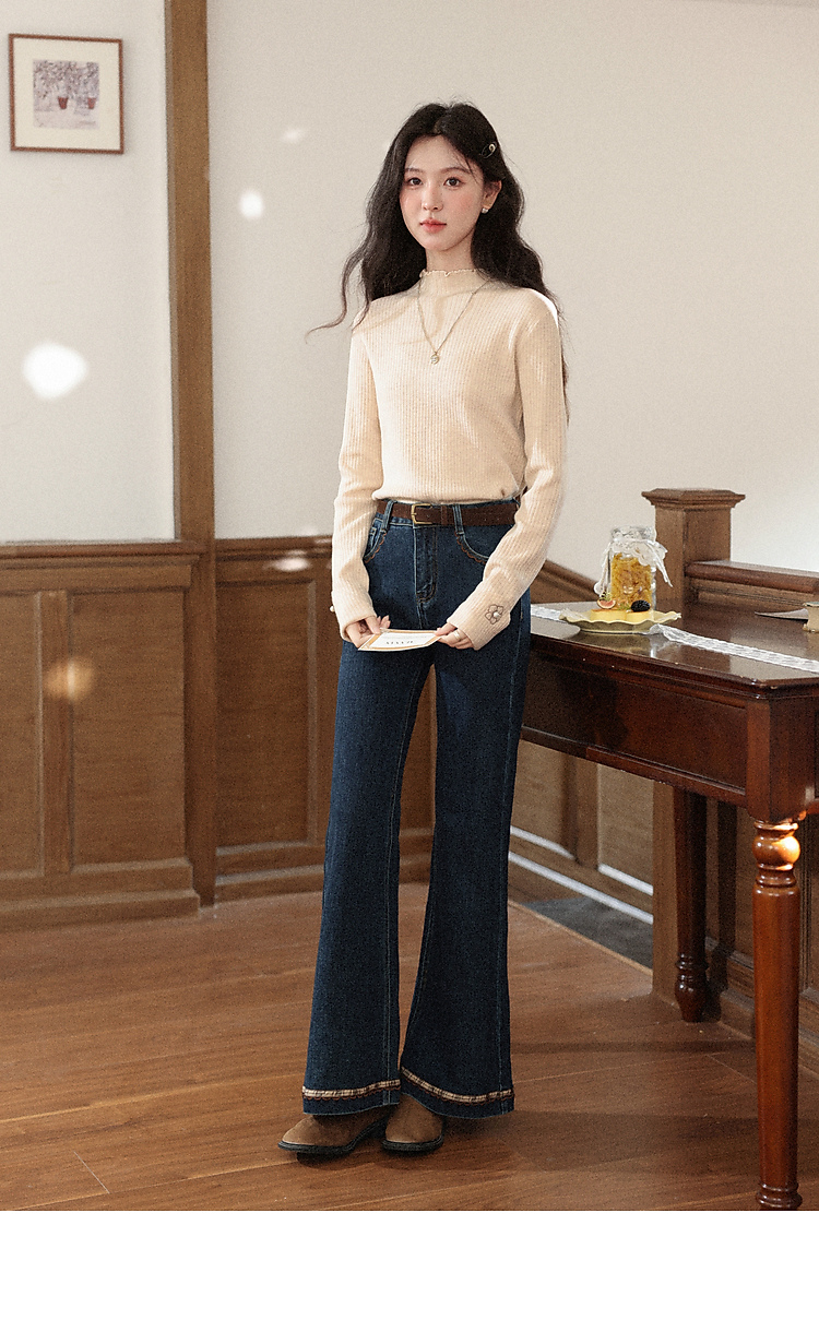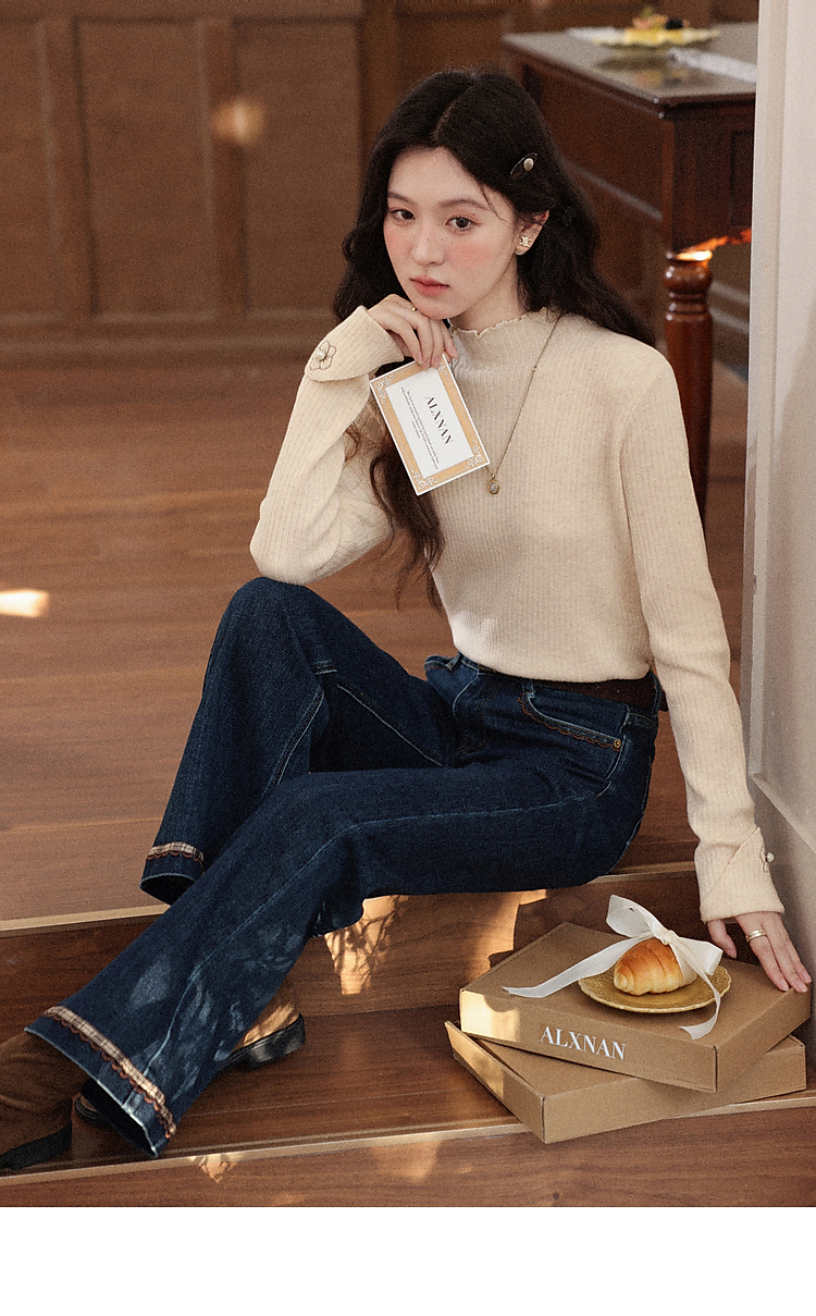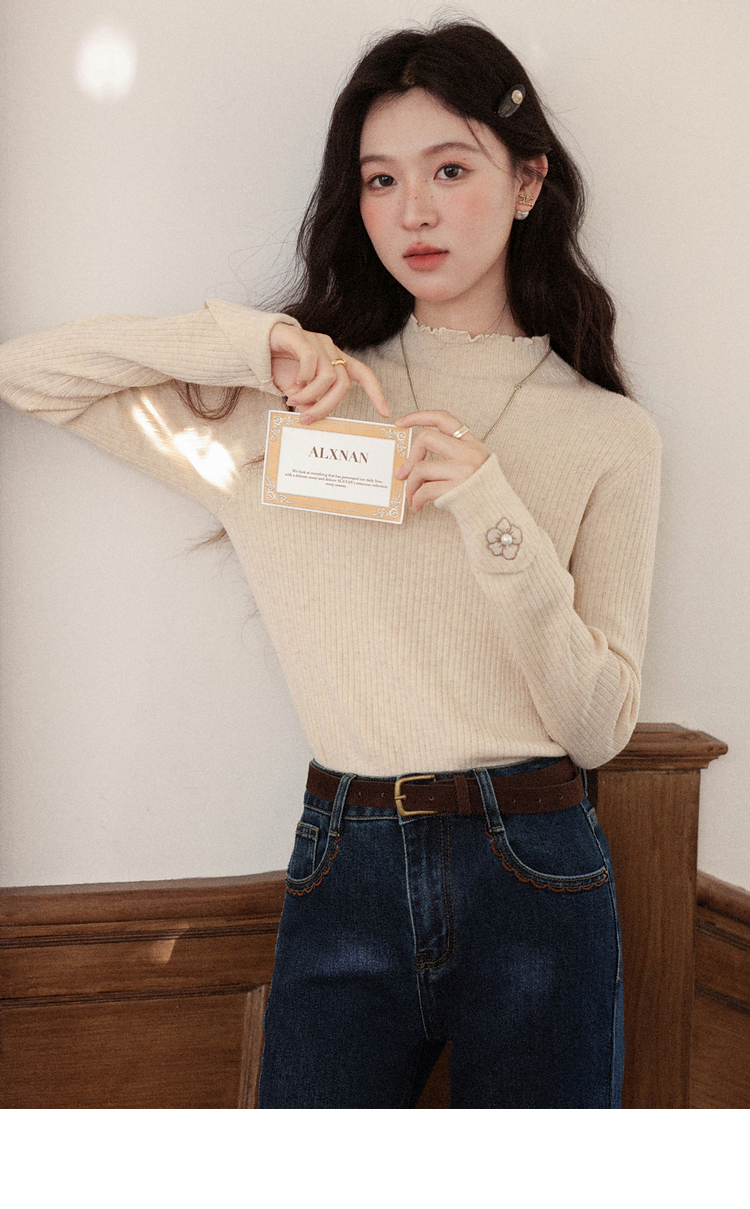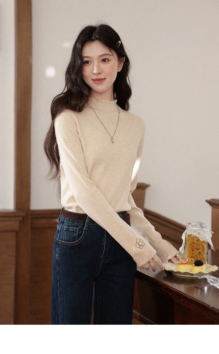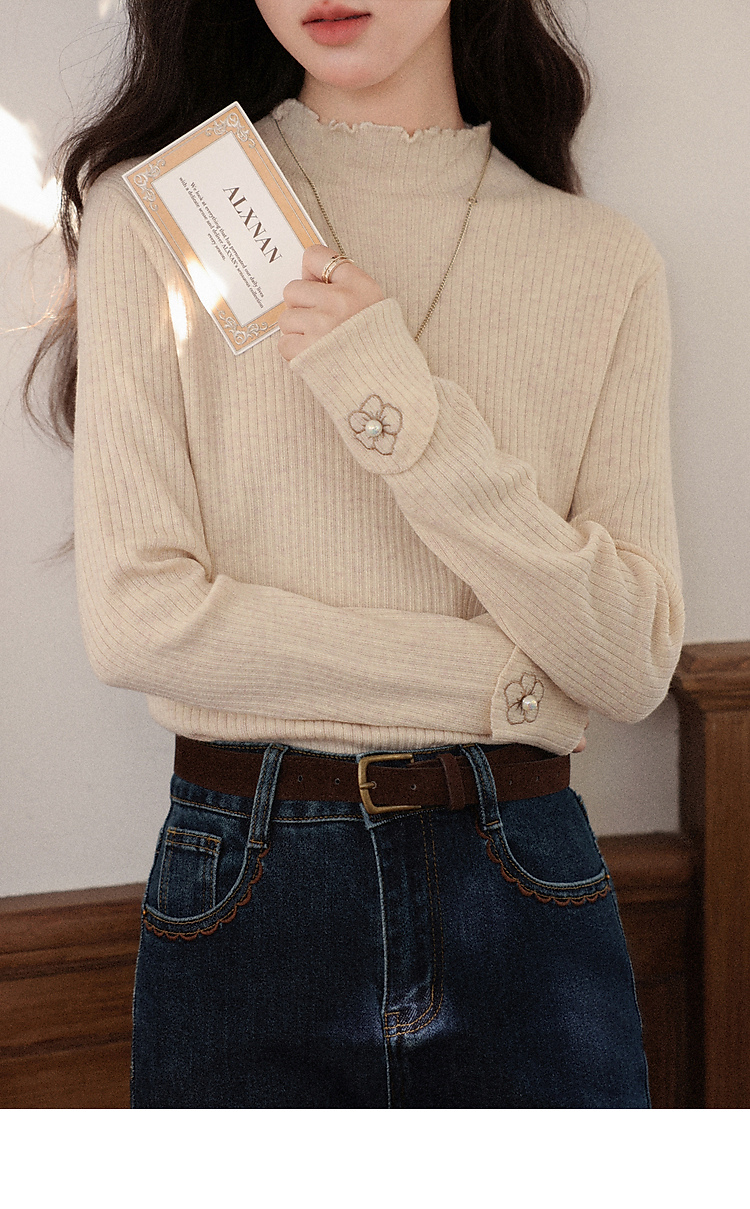 鹿向南「白露落霜」燕麦色半高领打底衫上衣女秋冬针织衫显瘦内搭