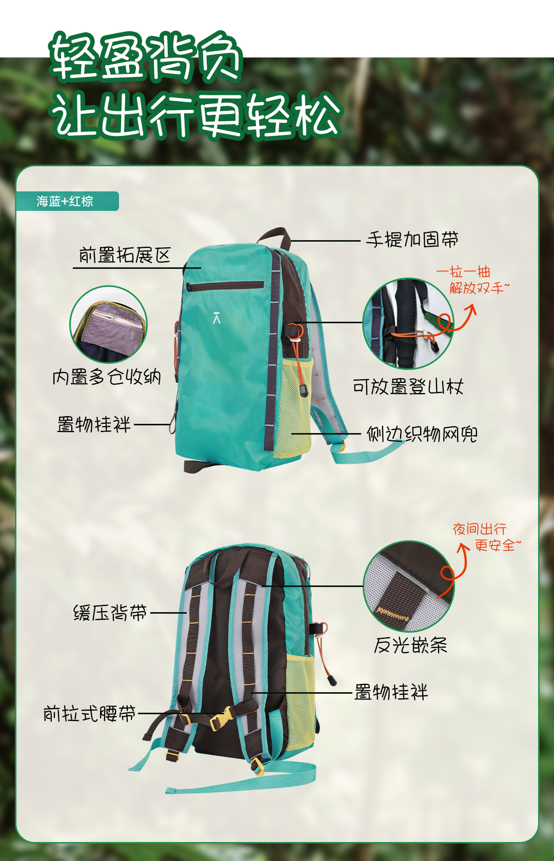 【出游季特惠】ACMEITEM爱棵米-户外拼色大容量双肩包轻量爬山徒步旅行宽带背包GAG3510416A