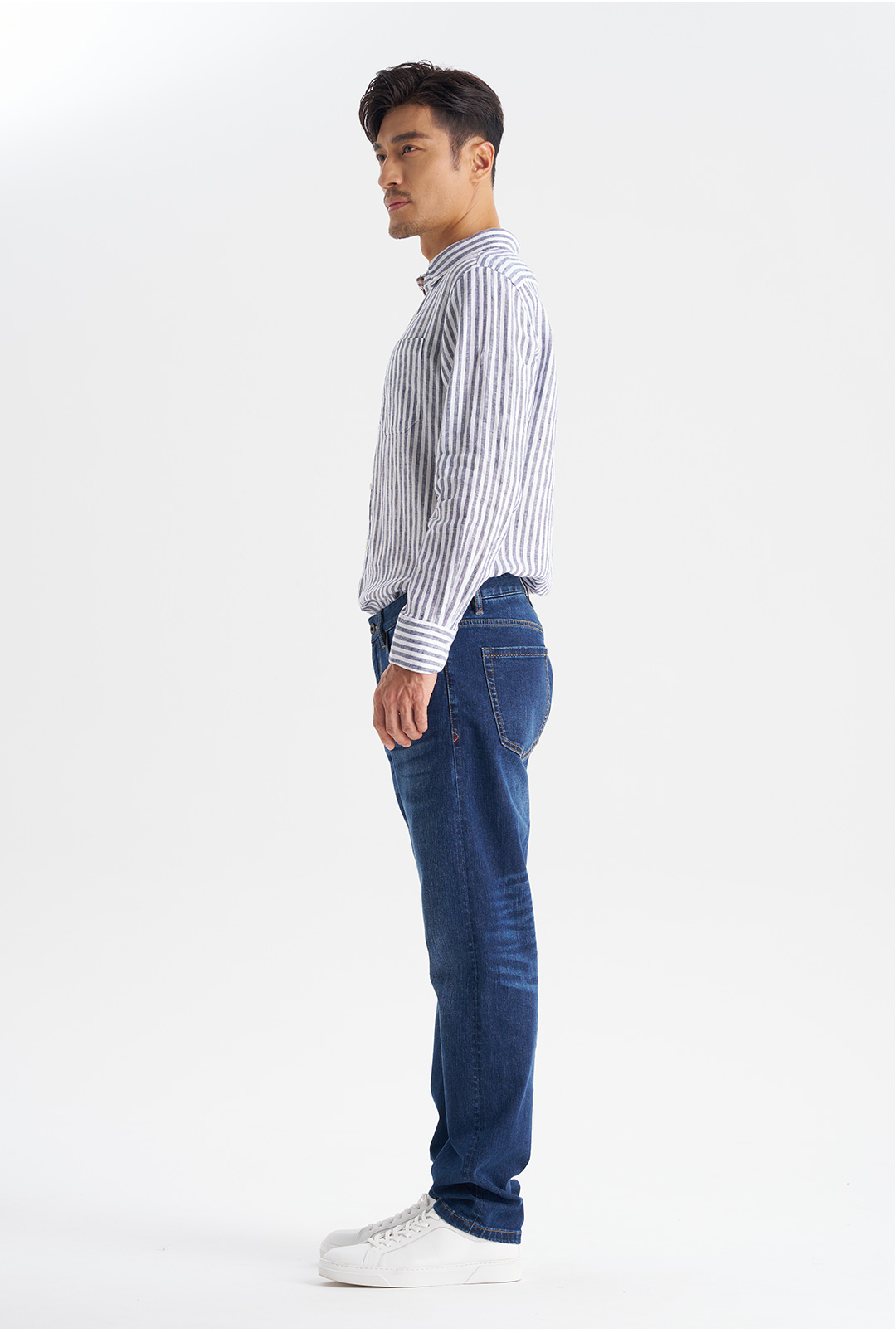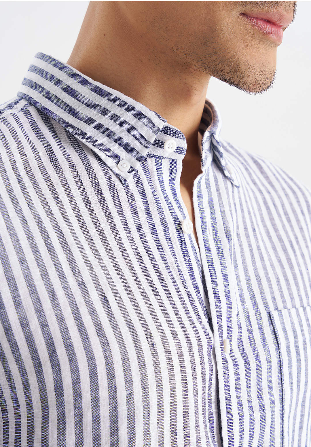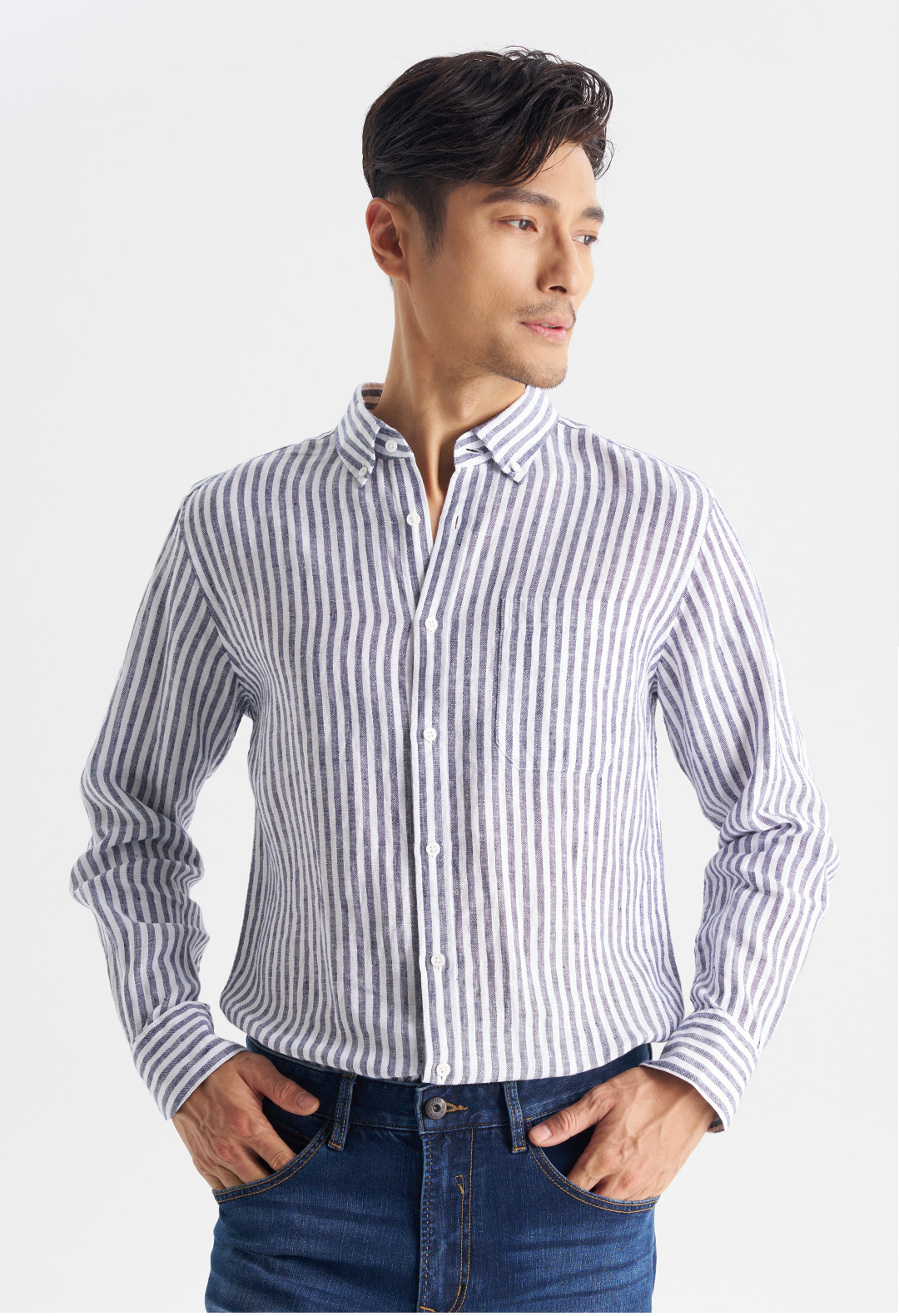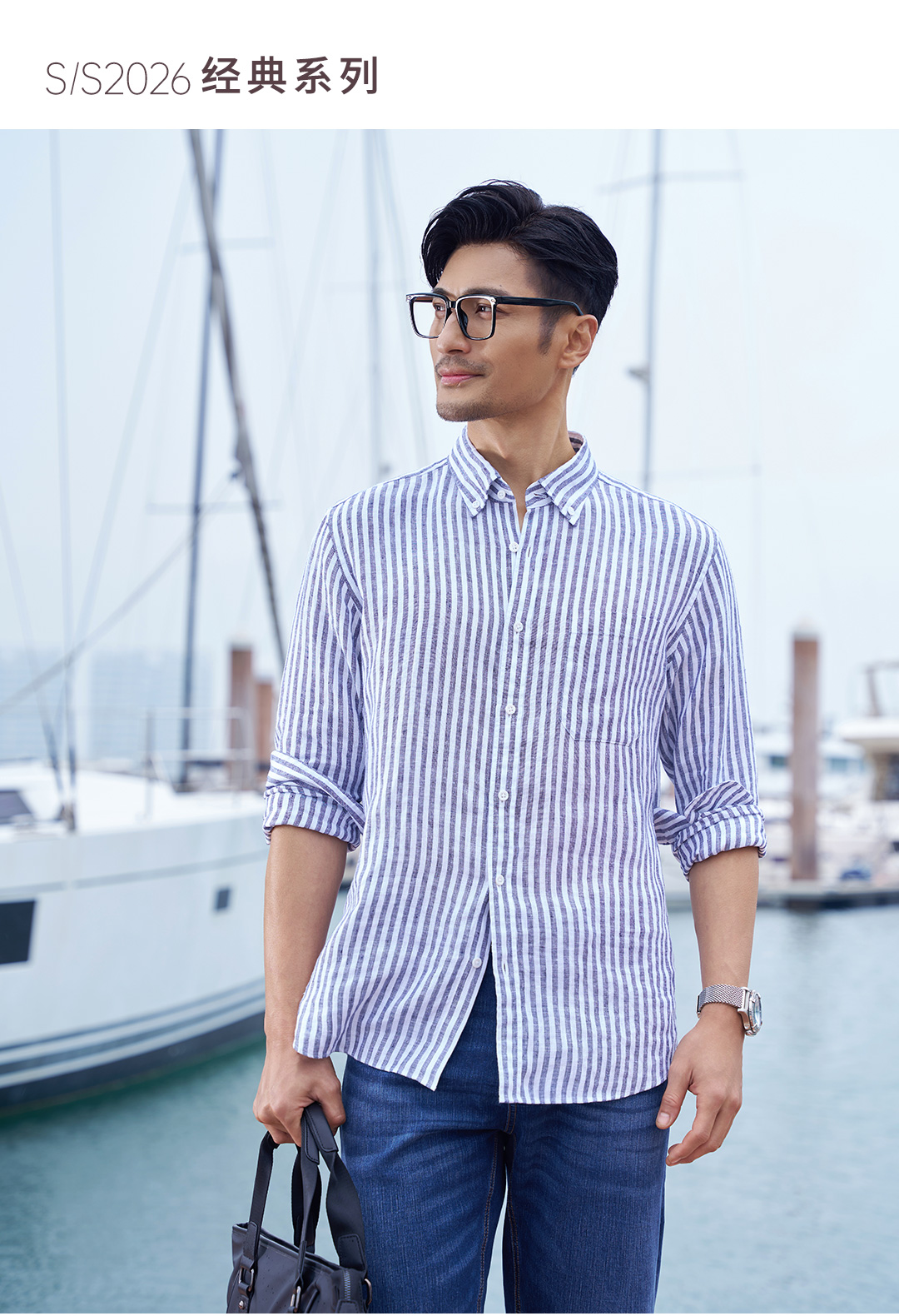 【经典8号】2026春时尚休闲亚麻100%麻宽条纹口袋长袖衬衫265B7F639L【门店同款】