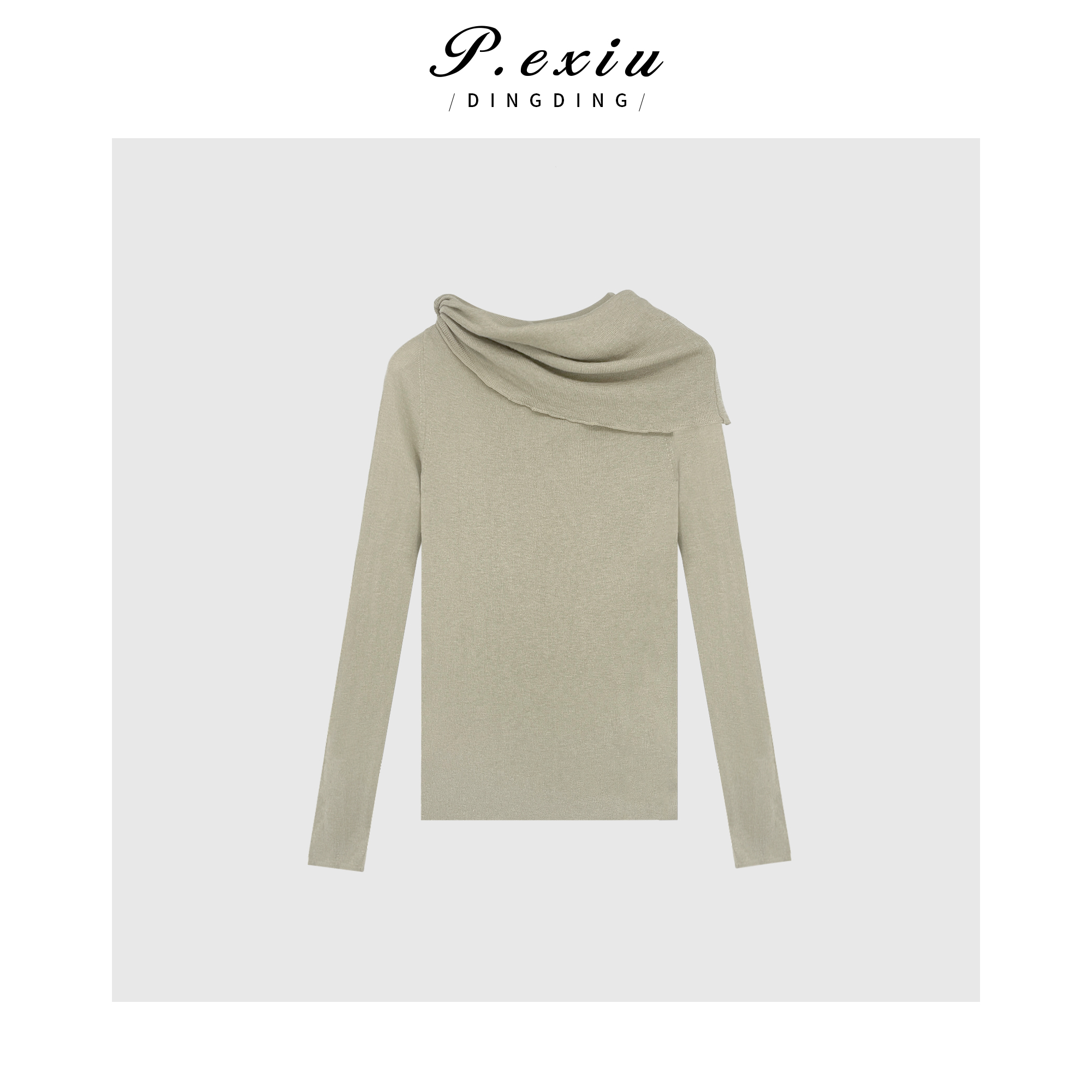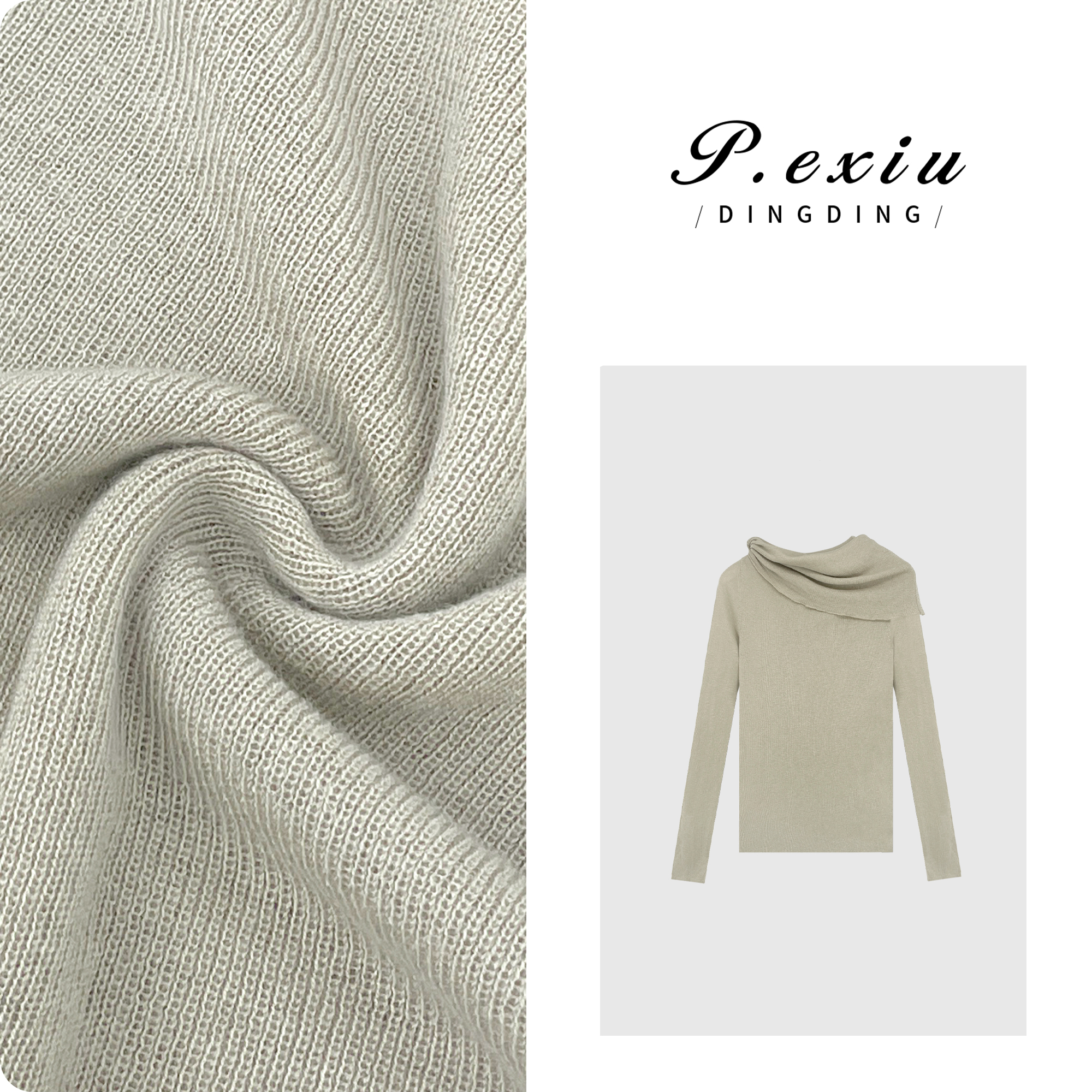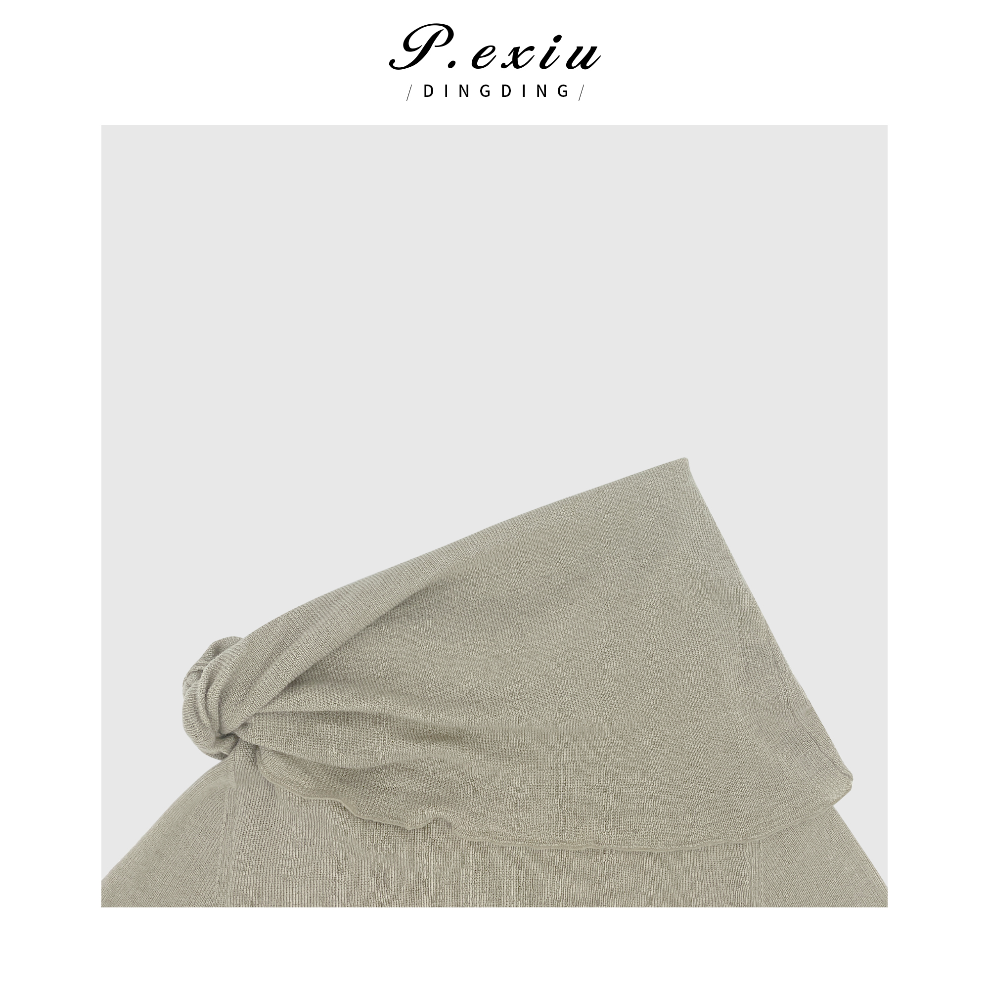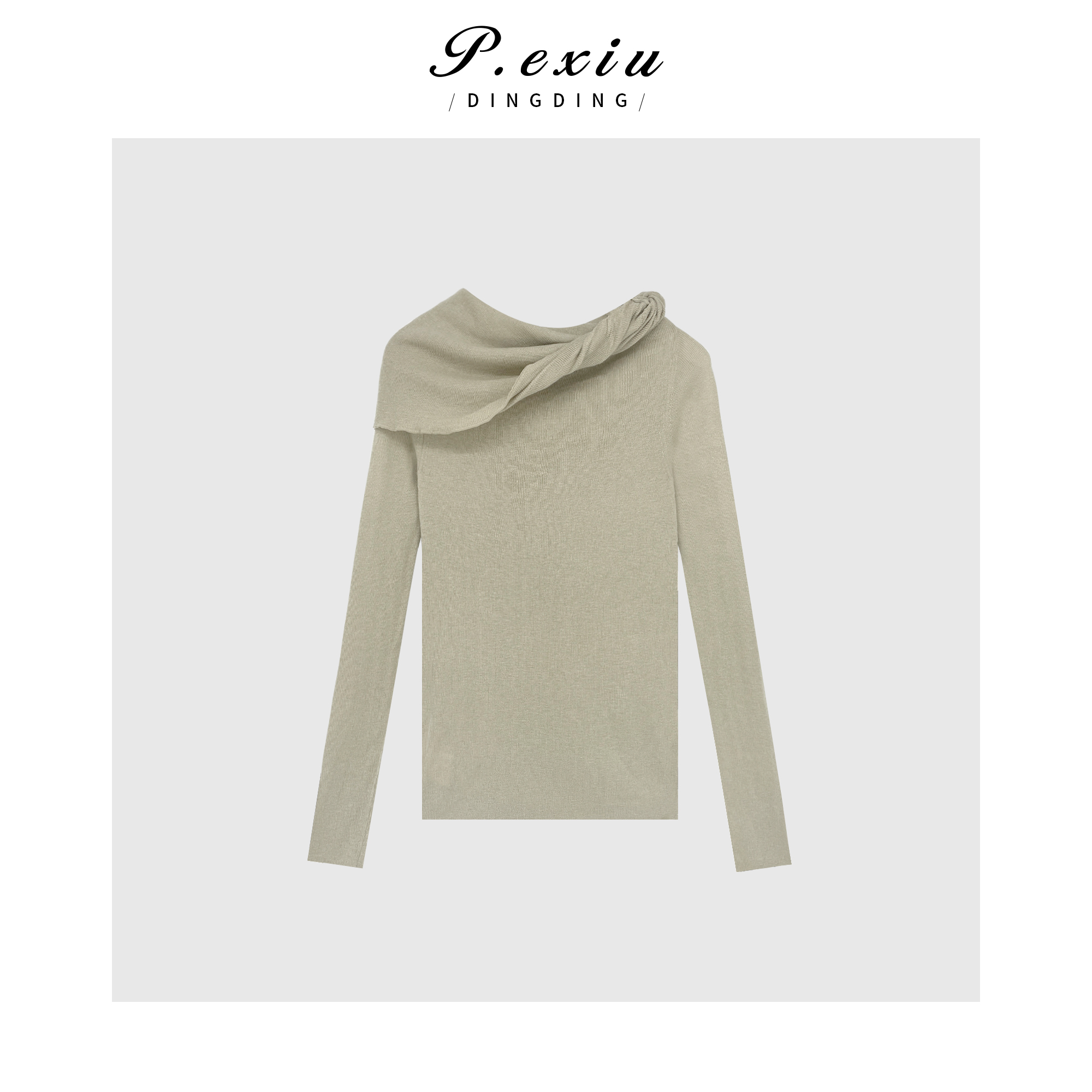 03-2潘依绣丁丁宠粉PanYiXiu/潘依绣【柔美涟漪】法式一字领披肩气质针织上衣 Q18356