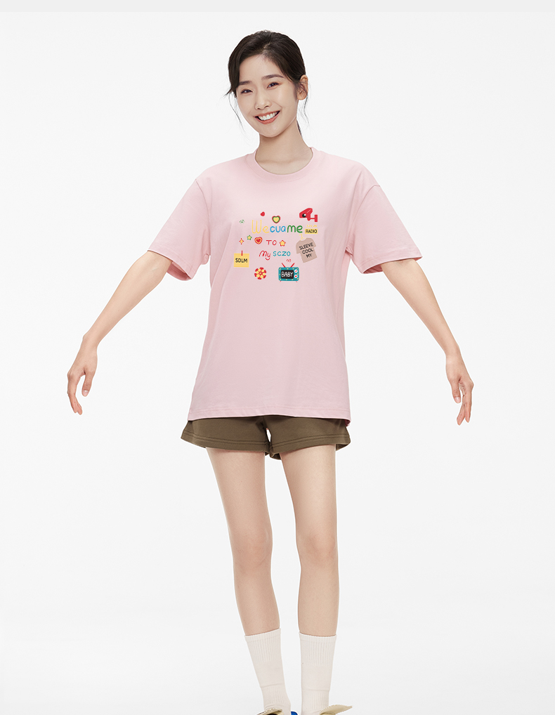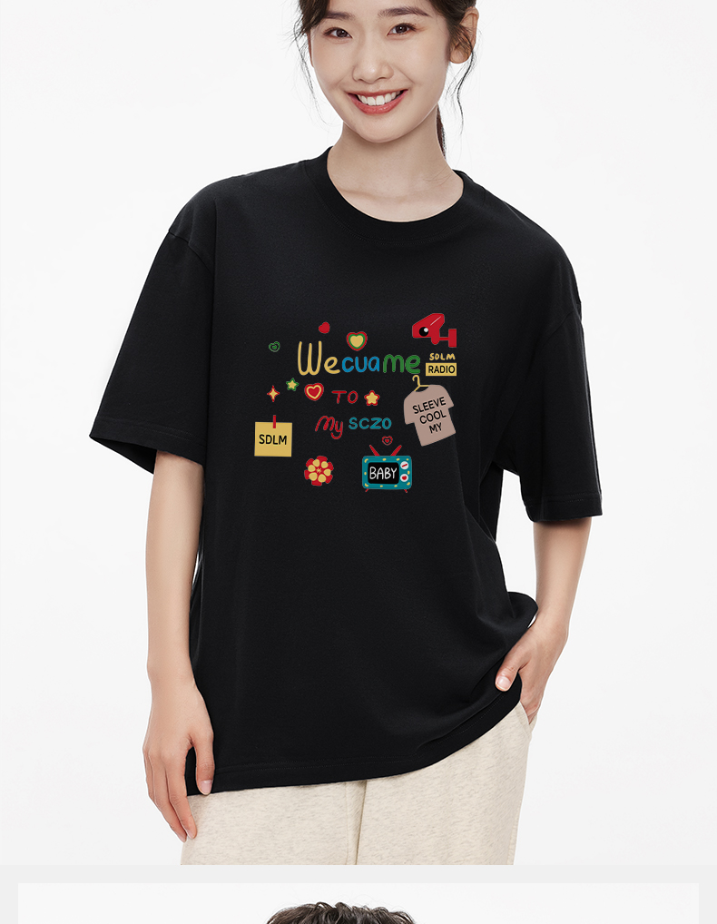 「棉的美学」纯棉休闲短袖T恤夏季新款彩色字母印花小众潮酷上衣