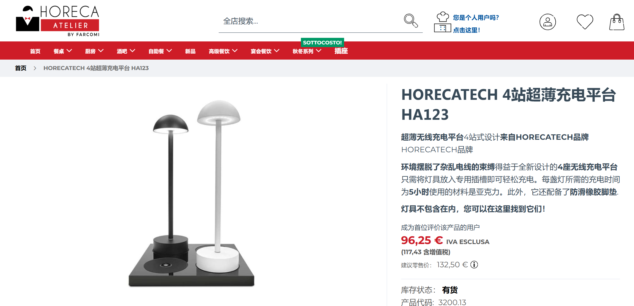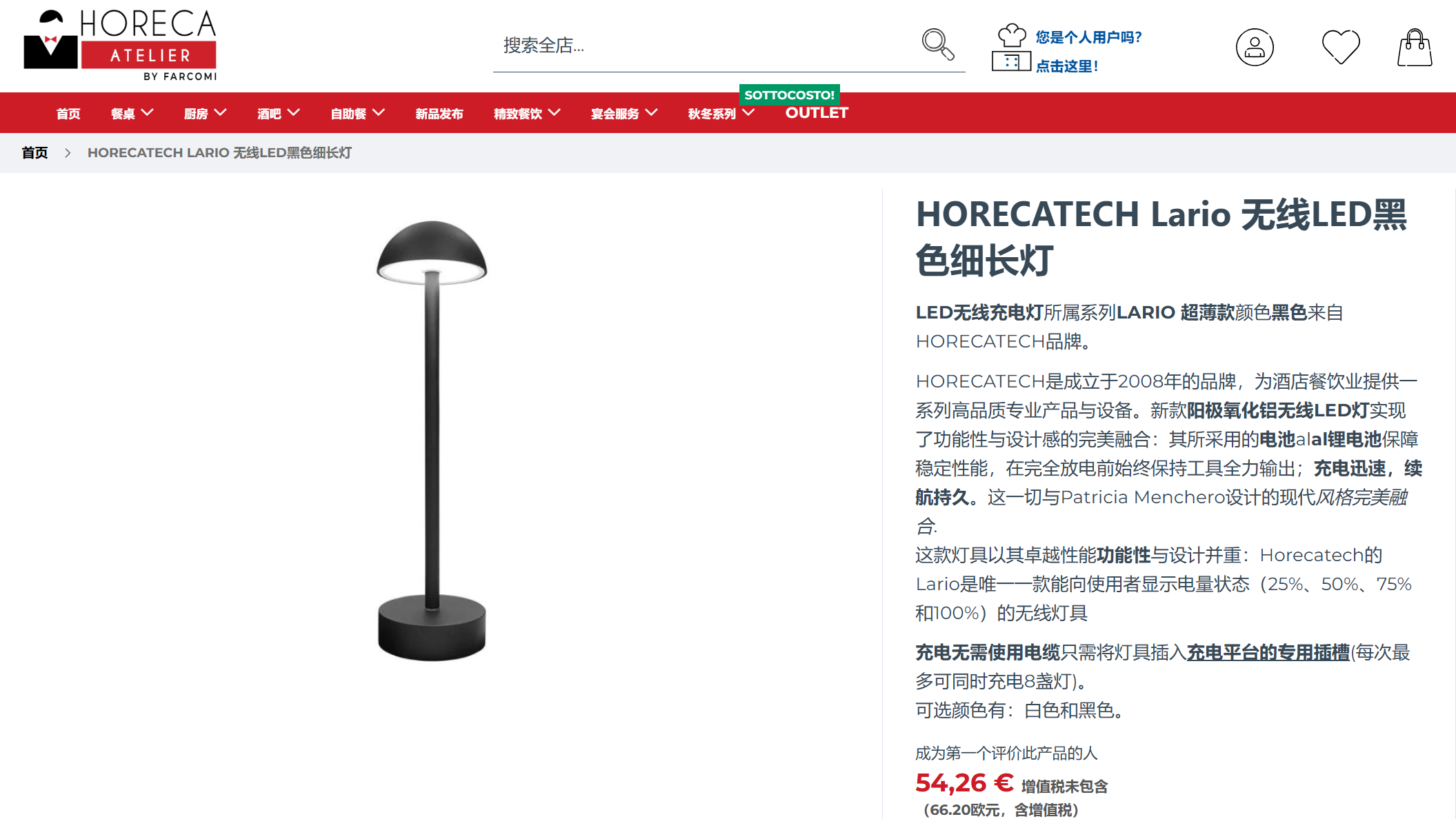LED无线充电灯所属系列LARIO 超薄款颜色黑色来自HORECATECH品牌。