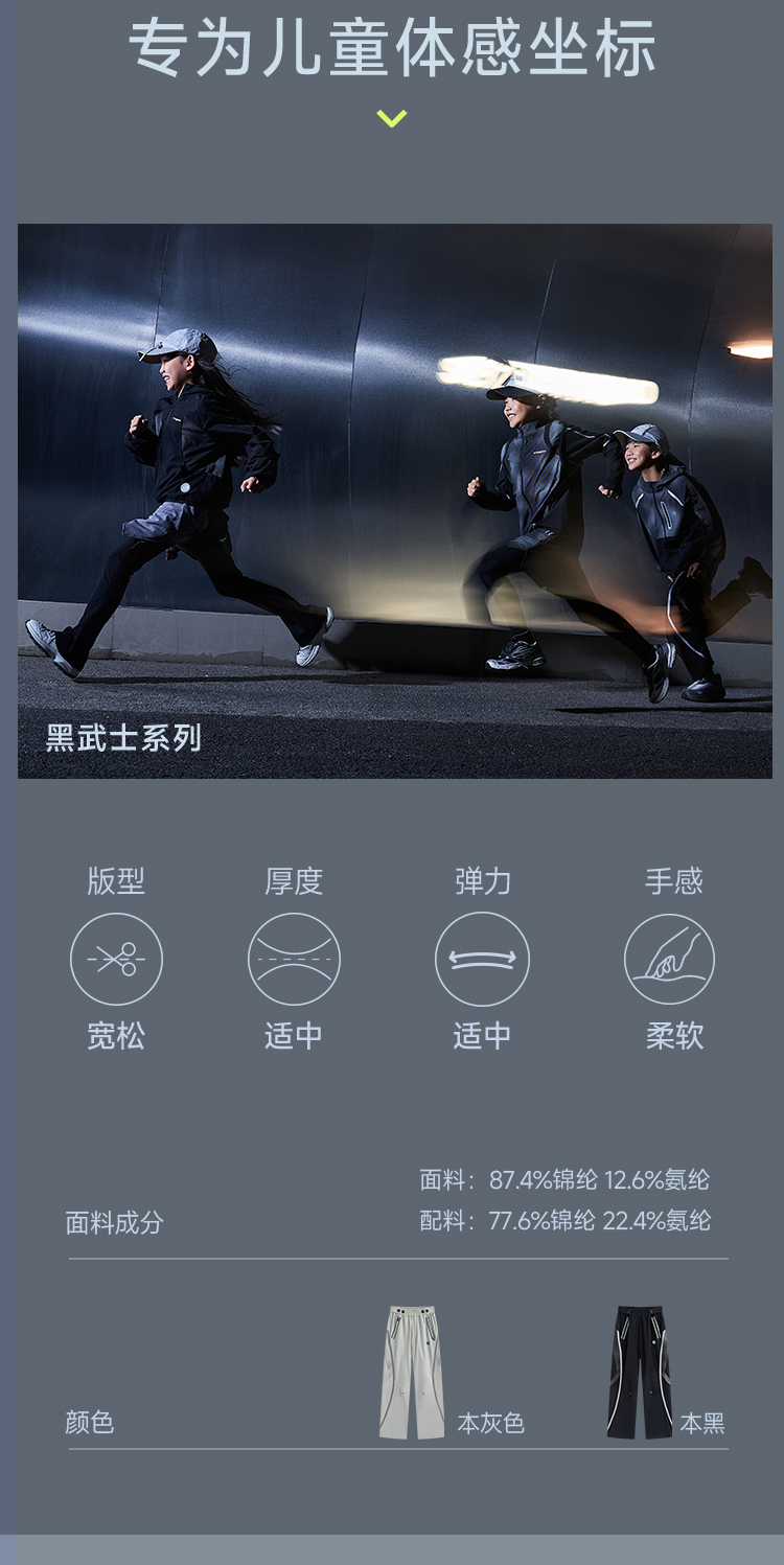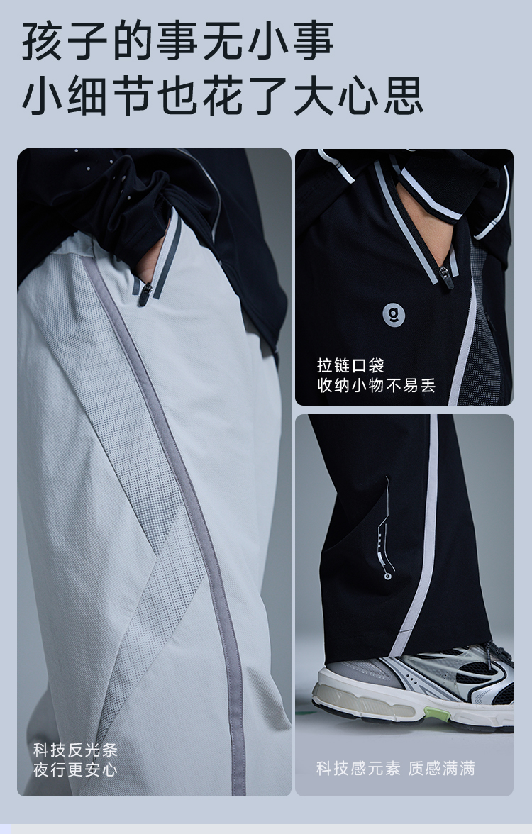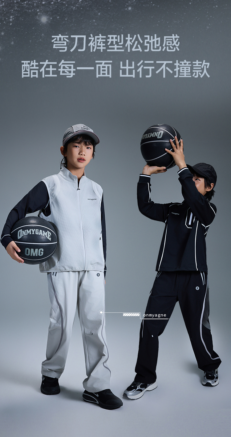 onmygame【黑武士】男童运动长裤防泼水儿童机能弯刀裤子GQ1E120670