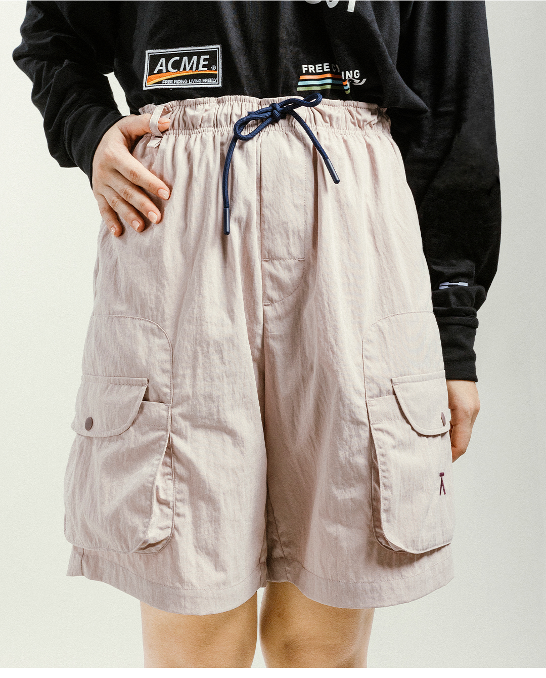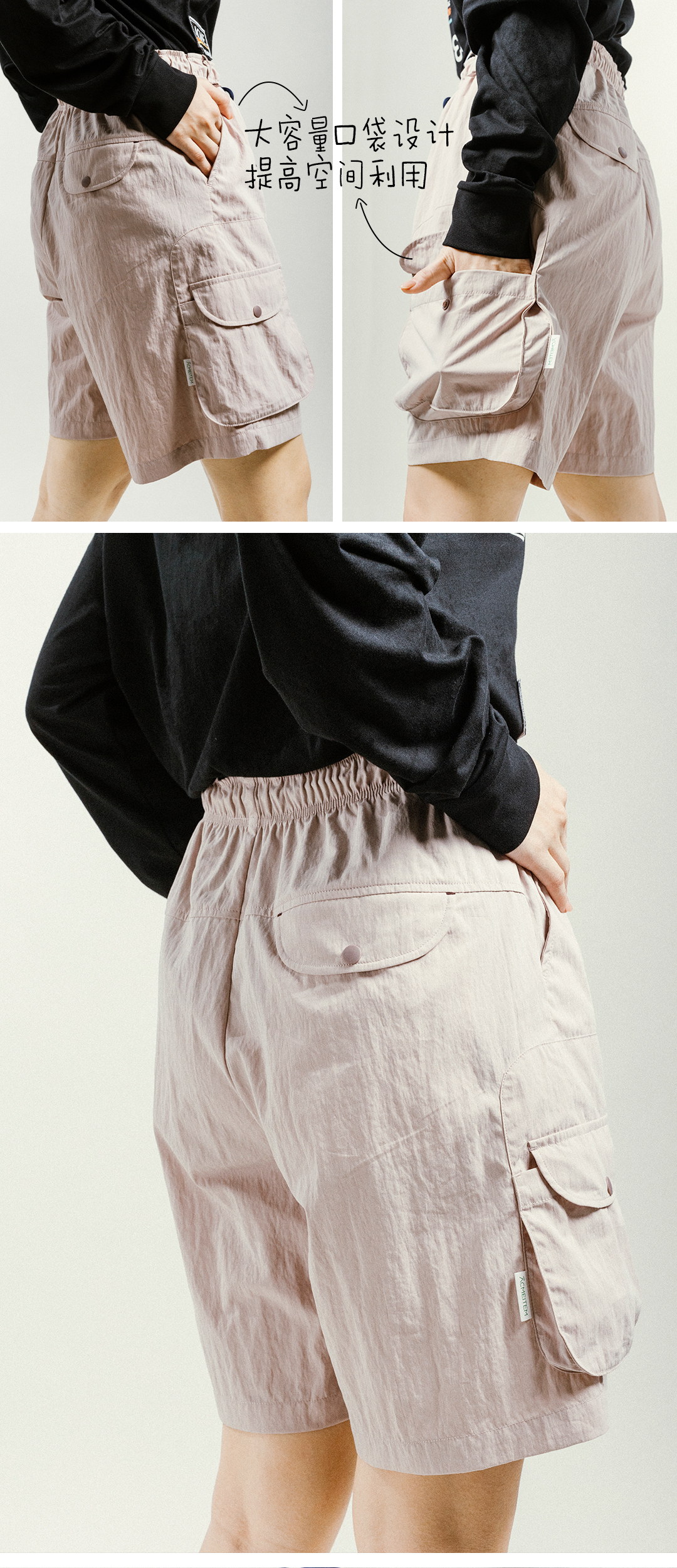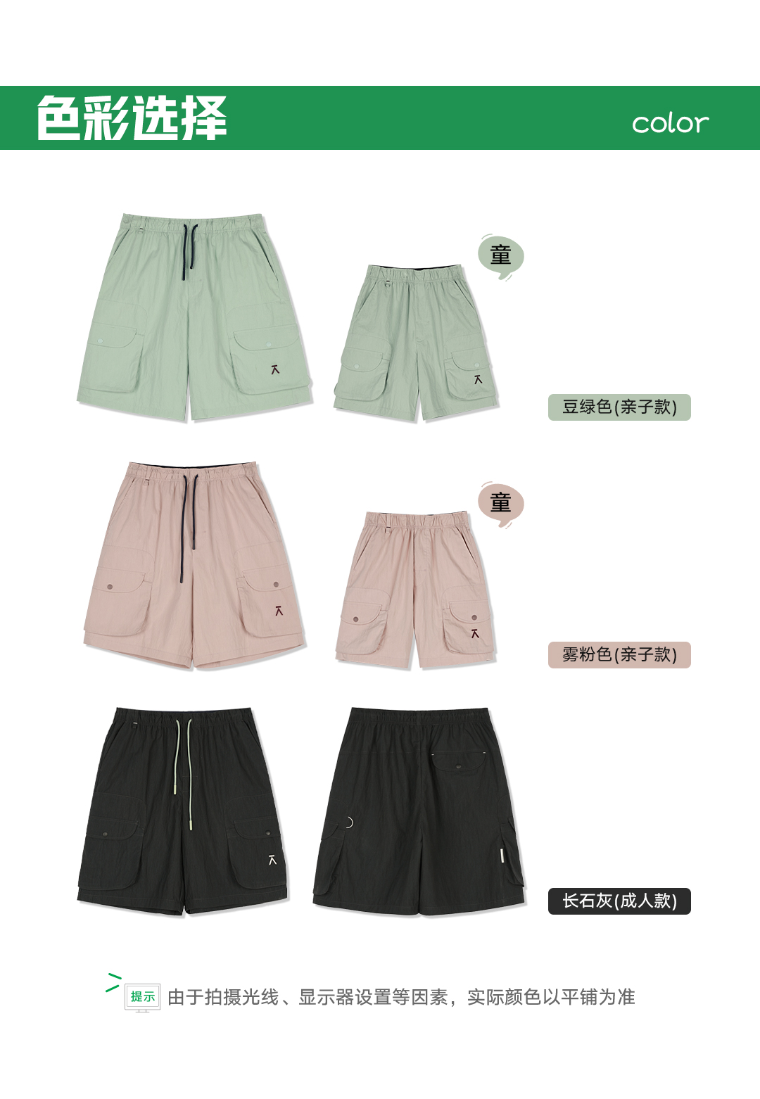 【出游季特惠】ACMEITEM爱棵米 户外亲子大容量口袋短裤宽松绣花休闲裤子男女GAG3220988C