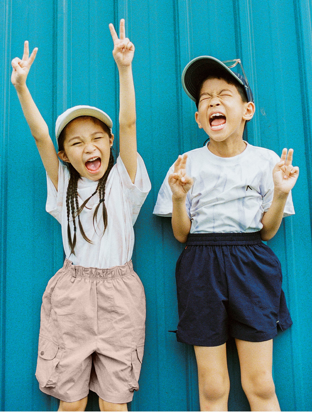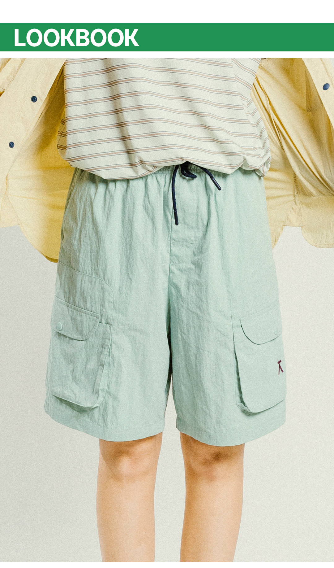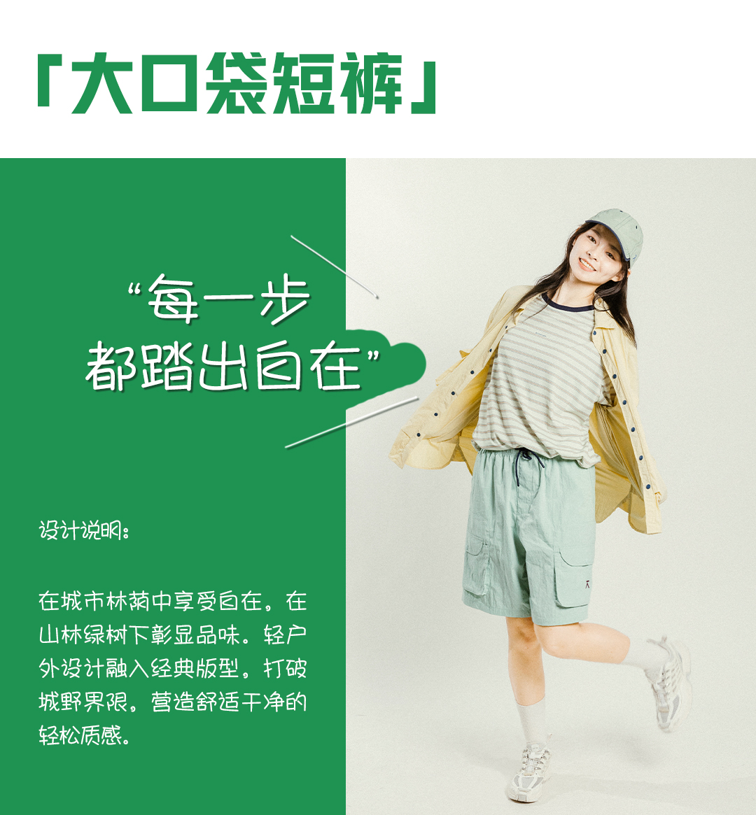 【出游季特惠】ACMEITEM爱棵米 户外亲子大容量口袋短裤宽松绣花休闲裤子男女GAG3220988C