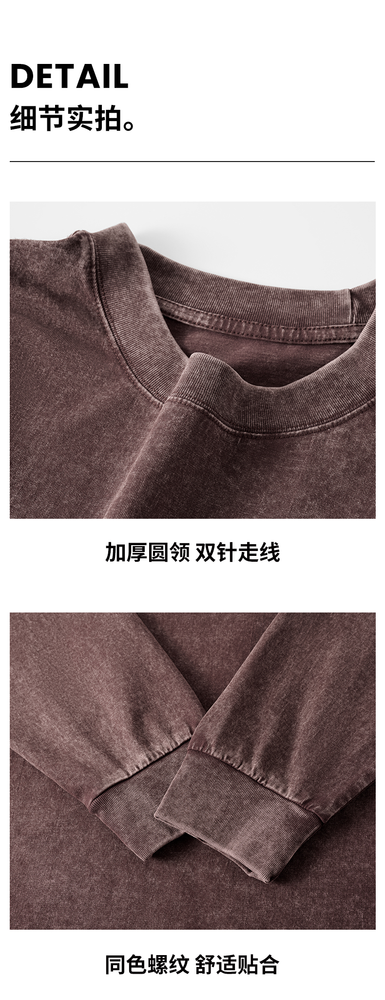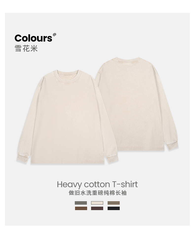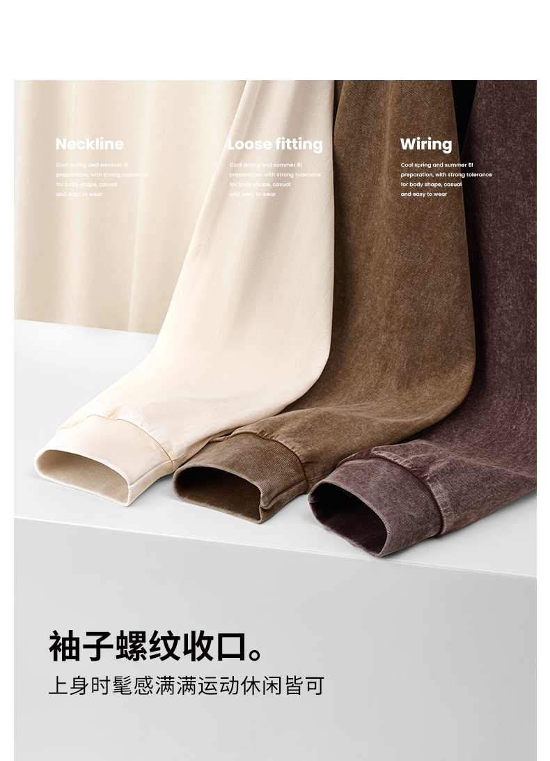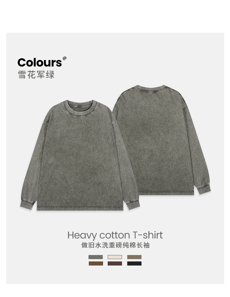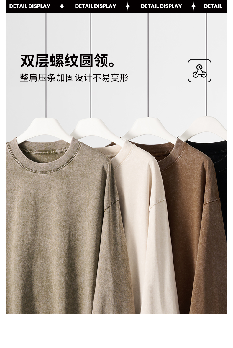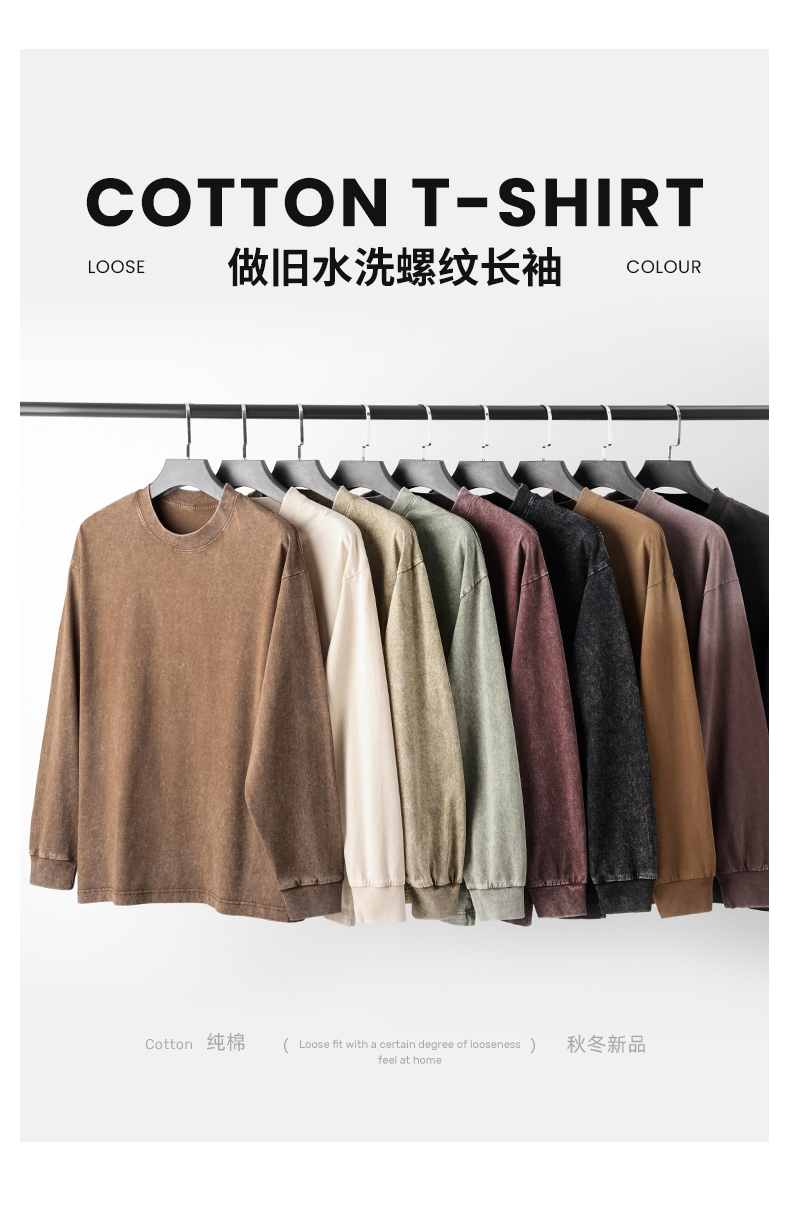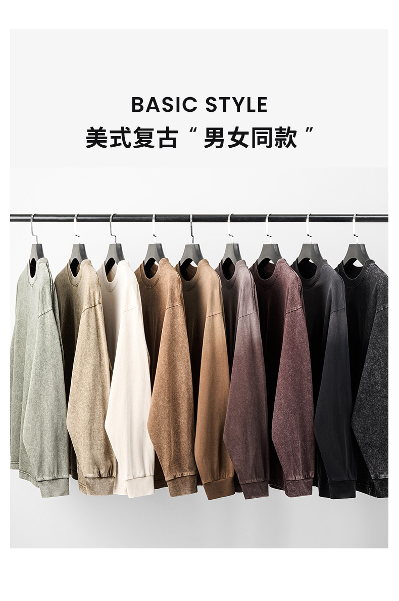 「棉的美学」美式纯棉复古做旧长袖t恤男 春秋季打底内搭百搭打底衫男女同款