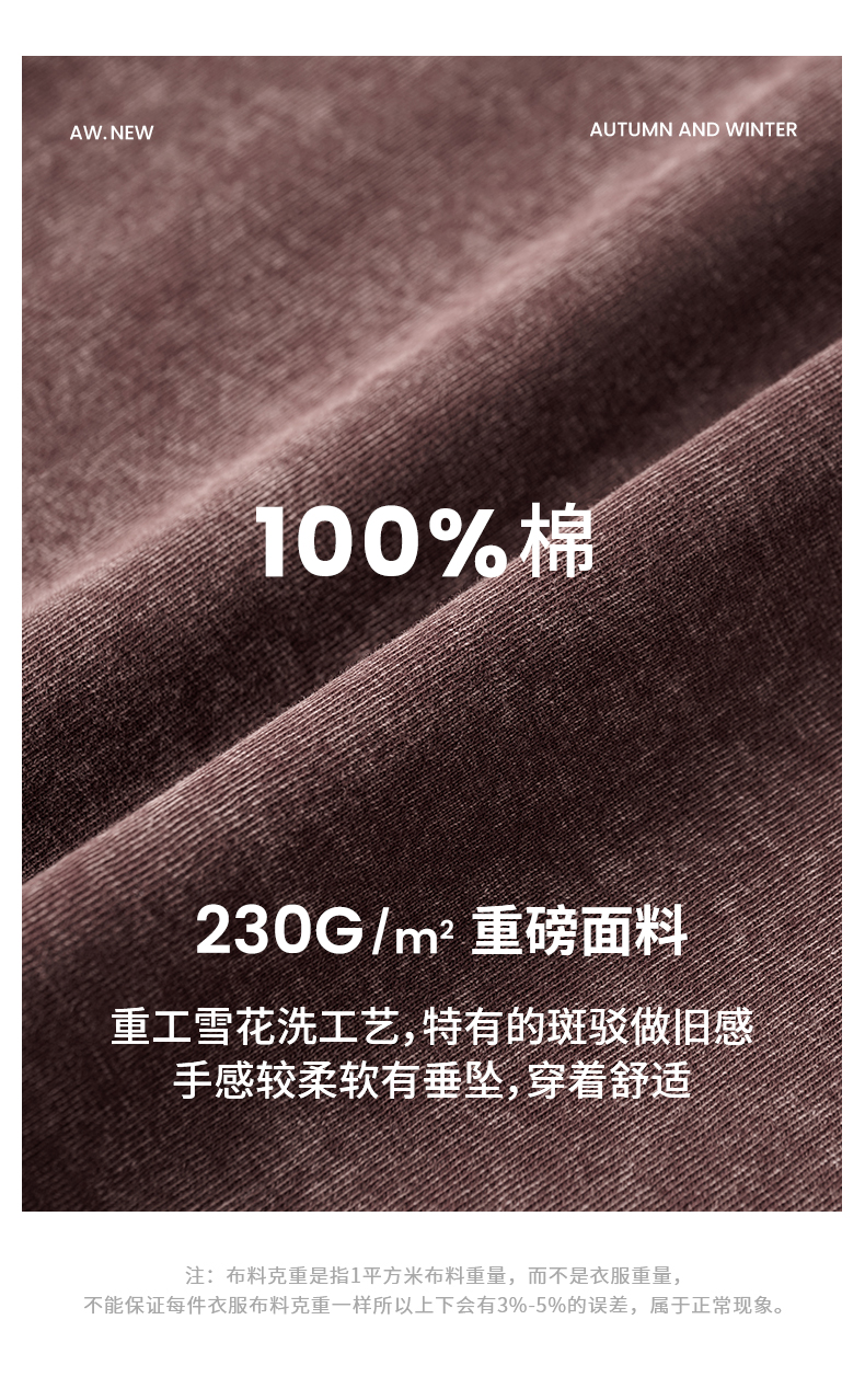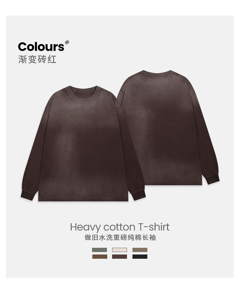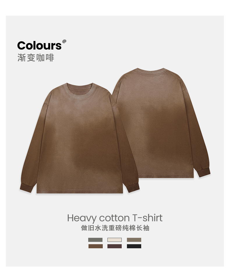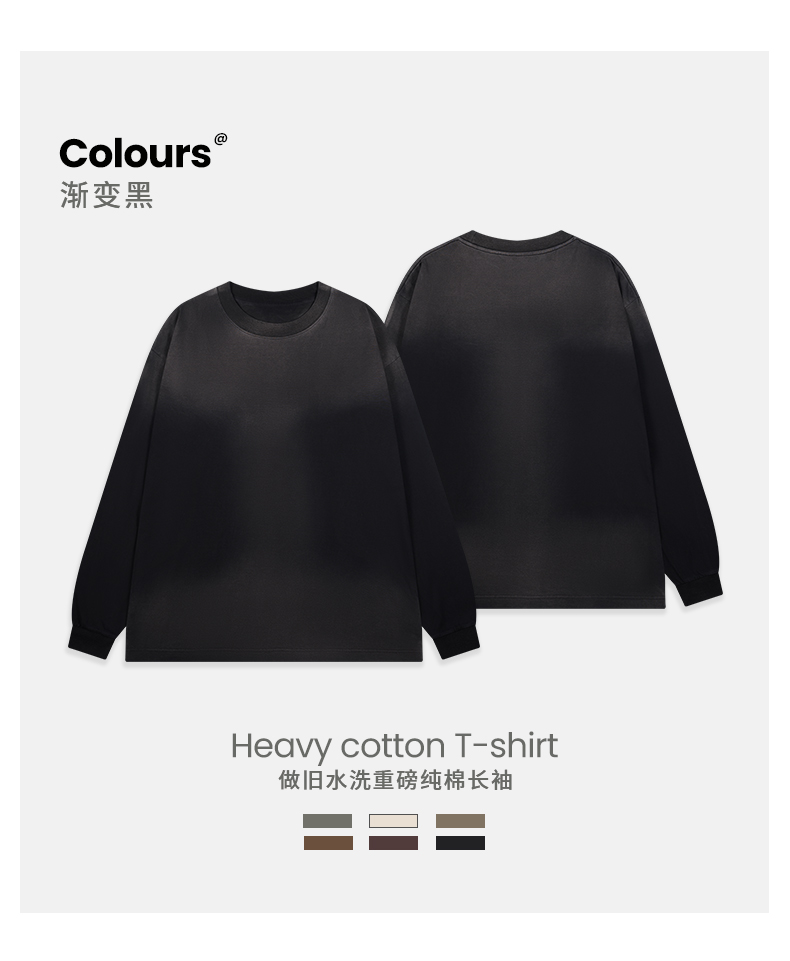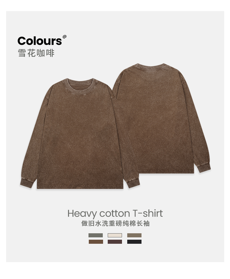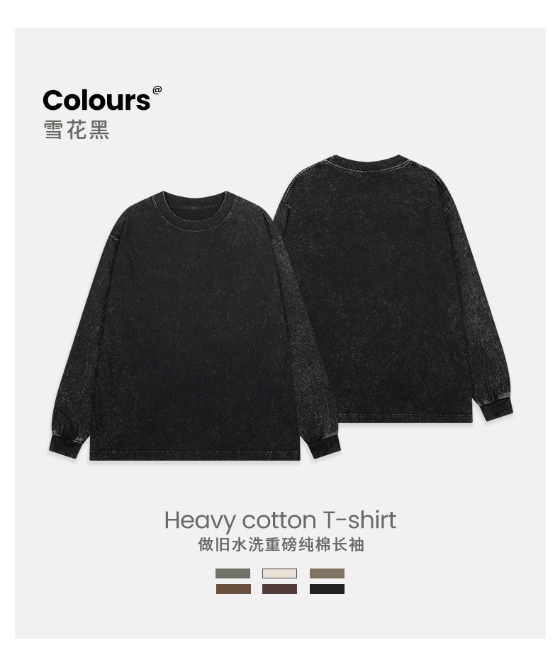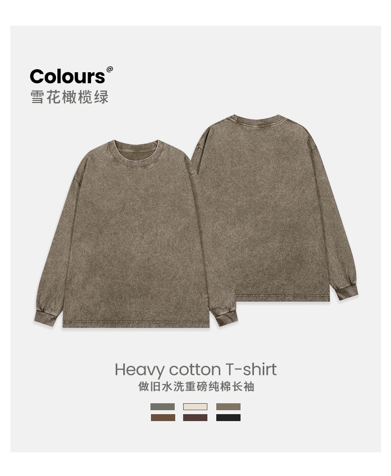 「棉的美学」美式纯棉复古做旧长袖t恤男 春秋季打底内搭百搭打底衫男女同款