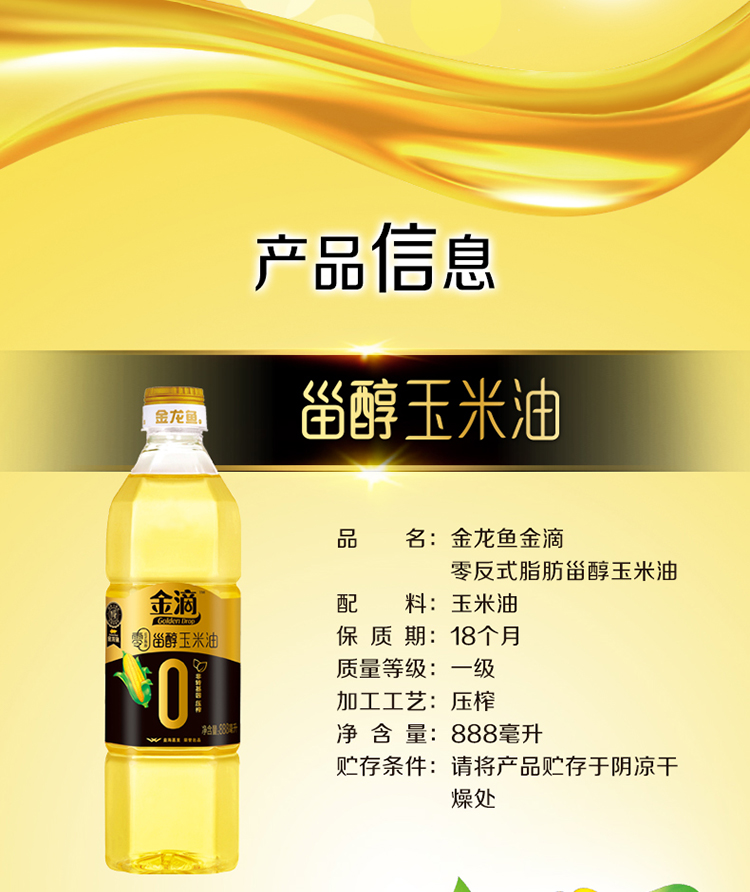 金龙鱼阳光零反式脂肪甾醇玉米油888ML+金龙鱼御品珍珠米500g+礼袋