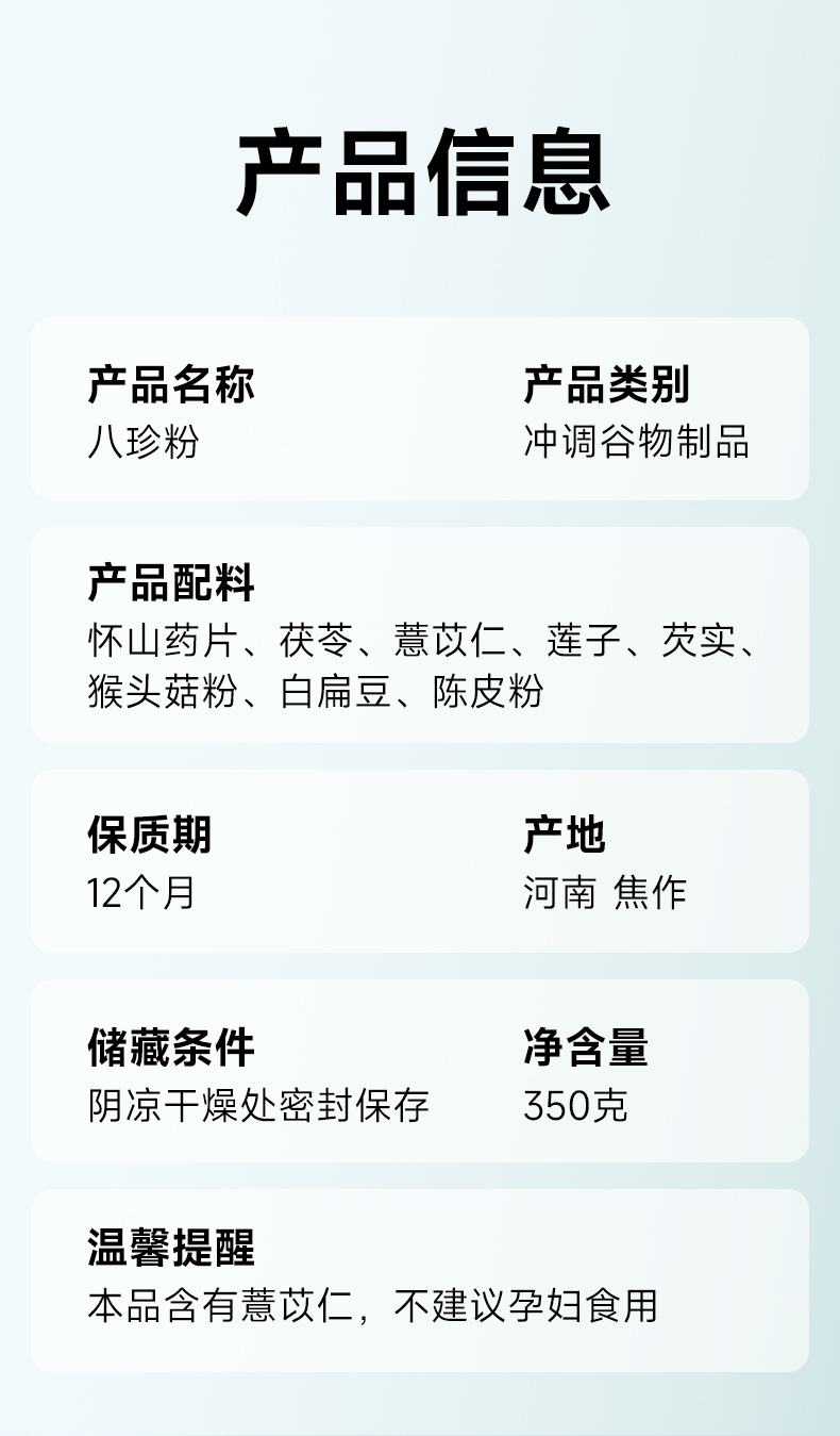 中体健臣八珍粉怀山药陈皮猴头菇早餐养生食品代餐粉350g