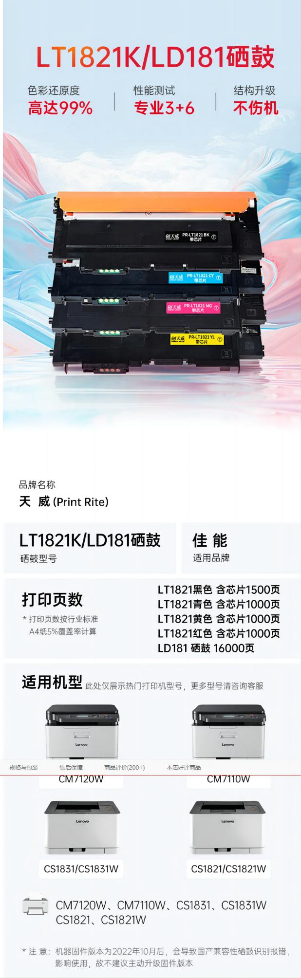 天威LT1821粉盒 适用联想CS1831 1831W硒鼓CM7120W墨盒CS1821墨粉7110W 墨粉盒