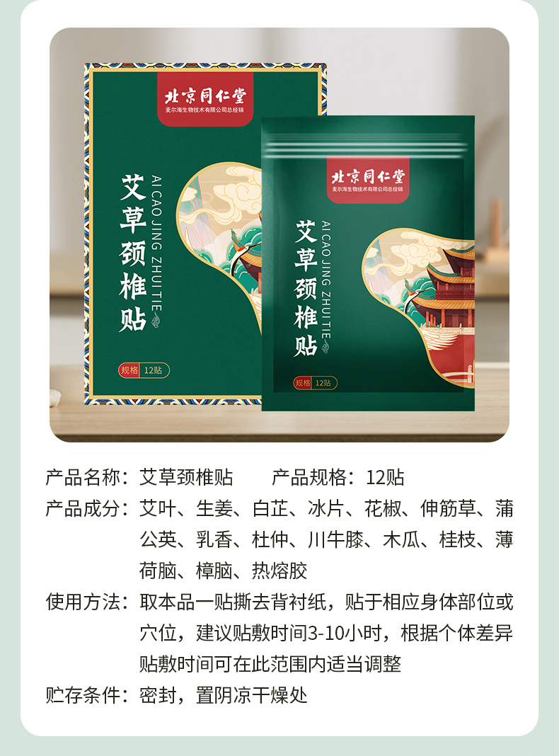 【创办于1669年!北京同仁堂老北京颈椎贴腰椎贴膝盖贴】艾草颈椎贴艾草腰椎贴艾草膝盖贴,植物精华,亲肤透气,直击各种不适,缓释压力