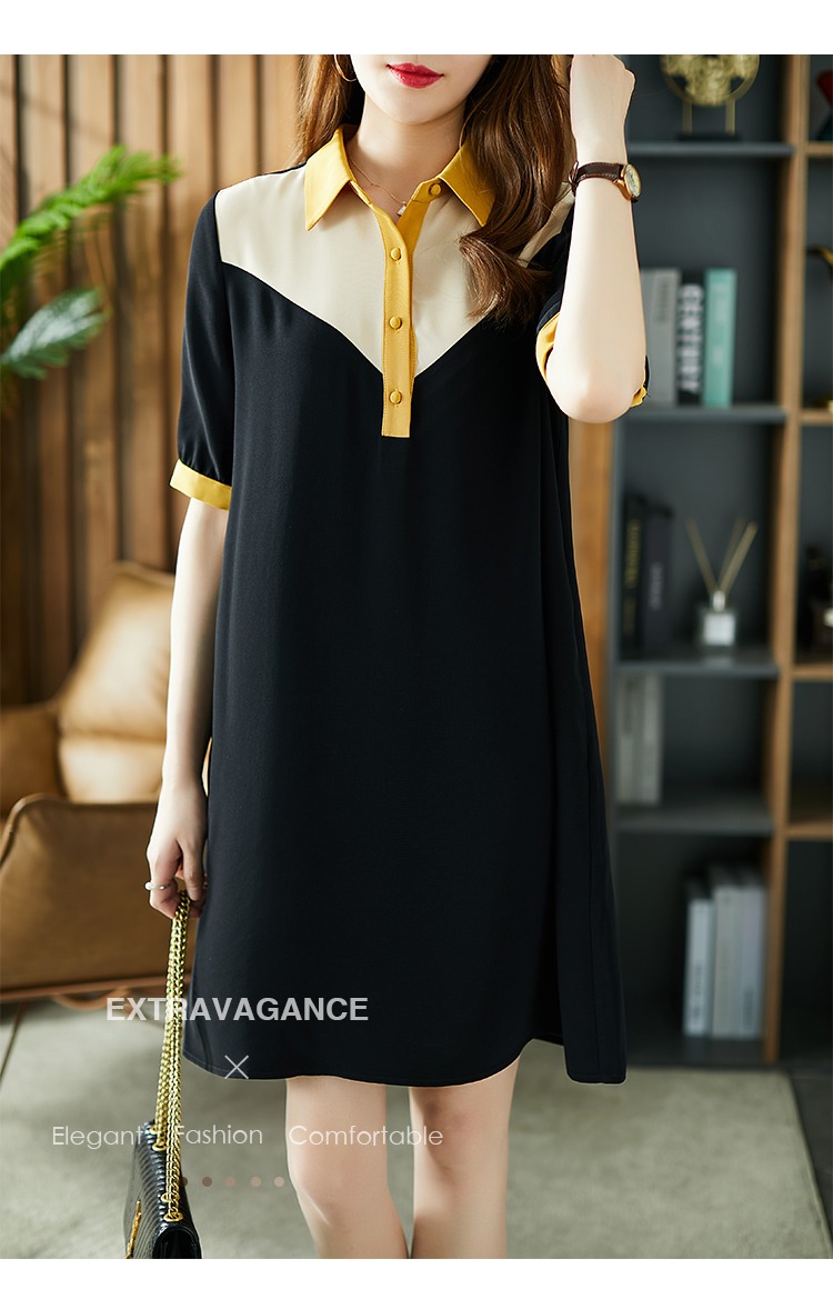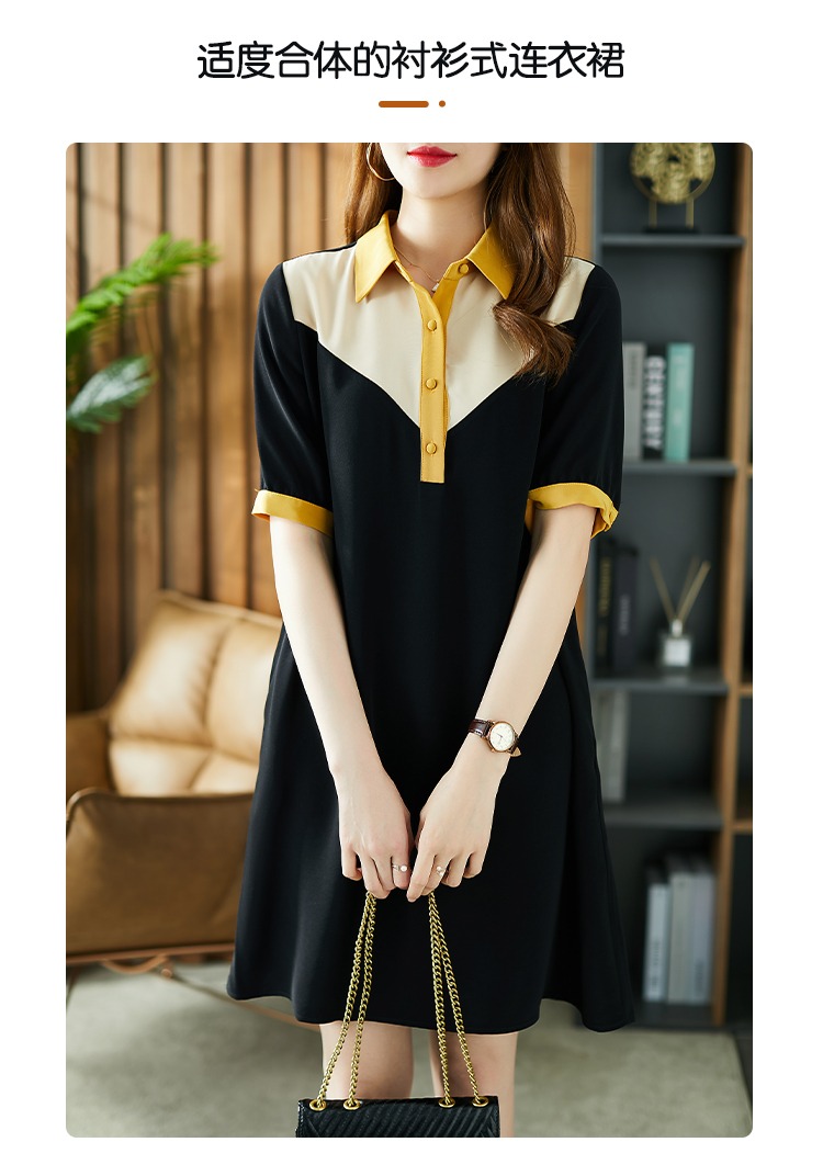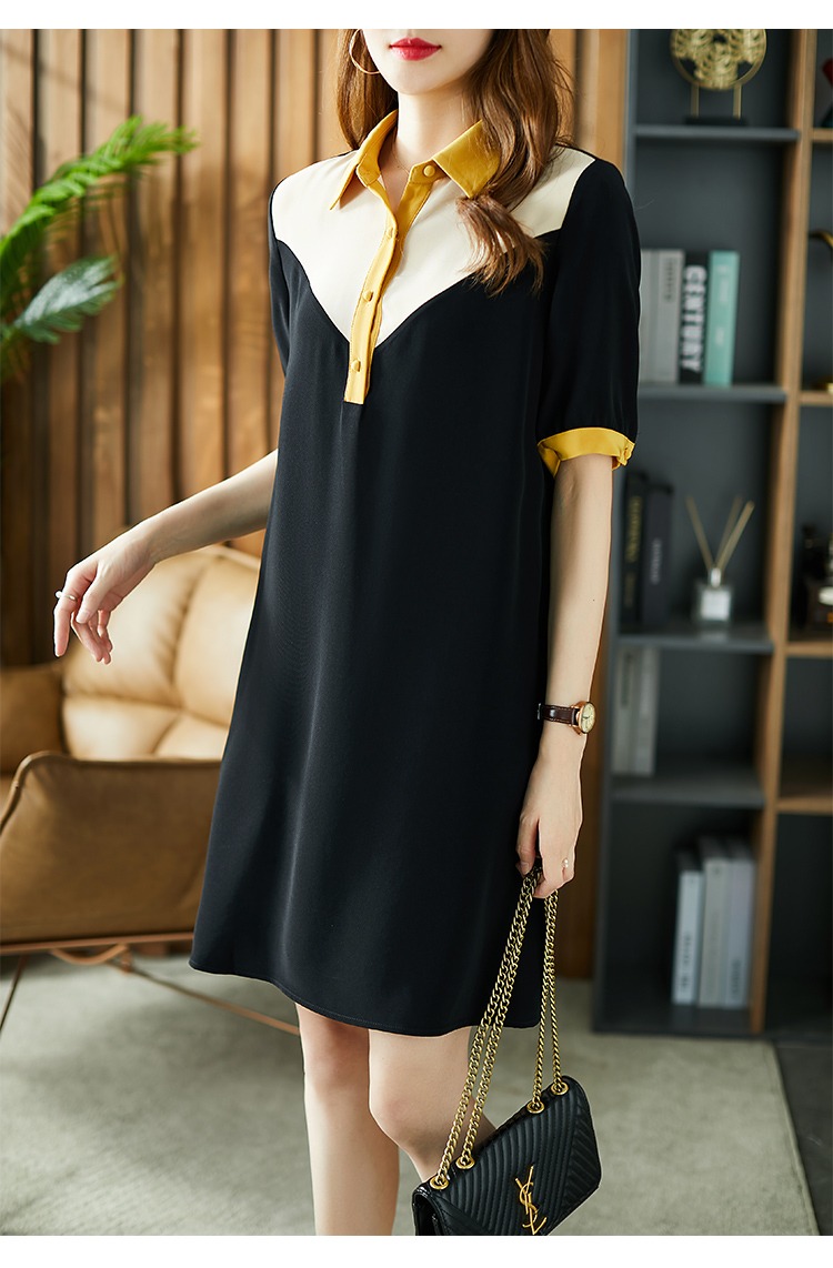【现货款】天丝气质短袖Polo领连衣裙女2023夏季新款韩版宽松显瘦a字裙