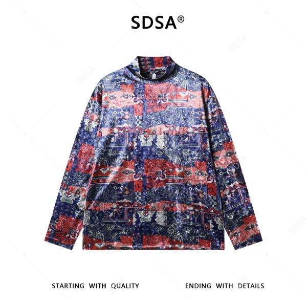 T4972SDSA男士秋冬新款痞帅男装潮牌满印洒金星星半高领长袖T恤百搭潮