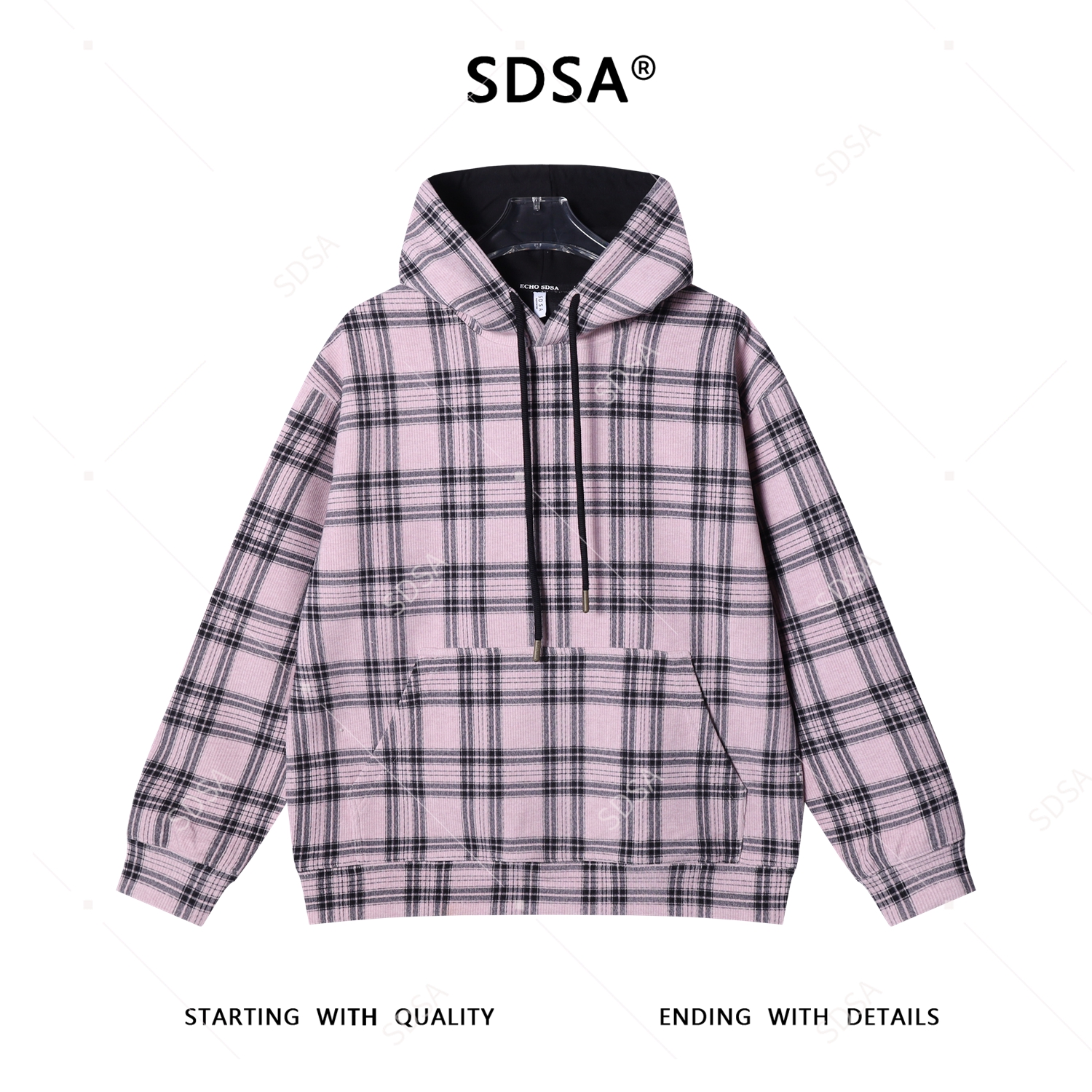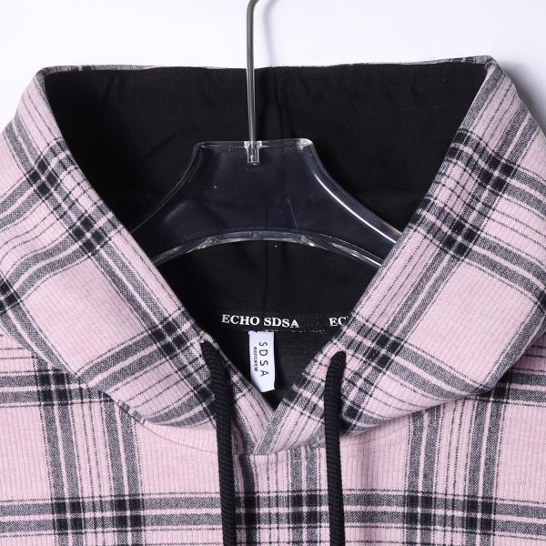 WY1048SDSA男士秋冬新款痞帅男装复古格子连帽卫衣宽松休闲百搭套头上衣