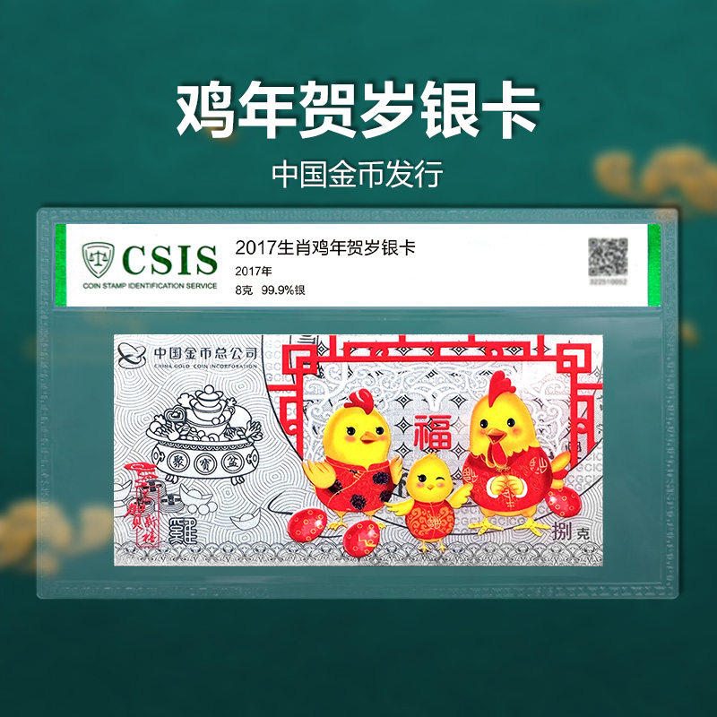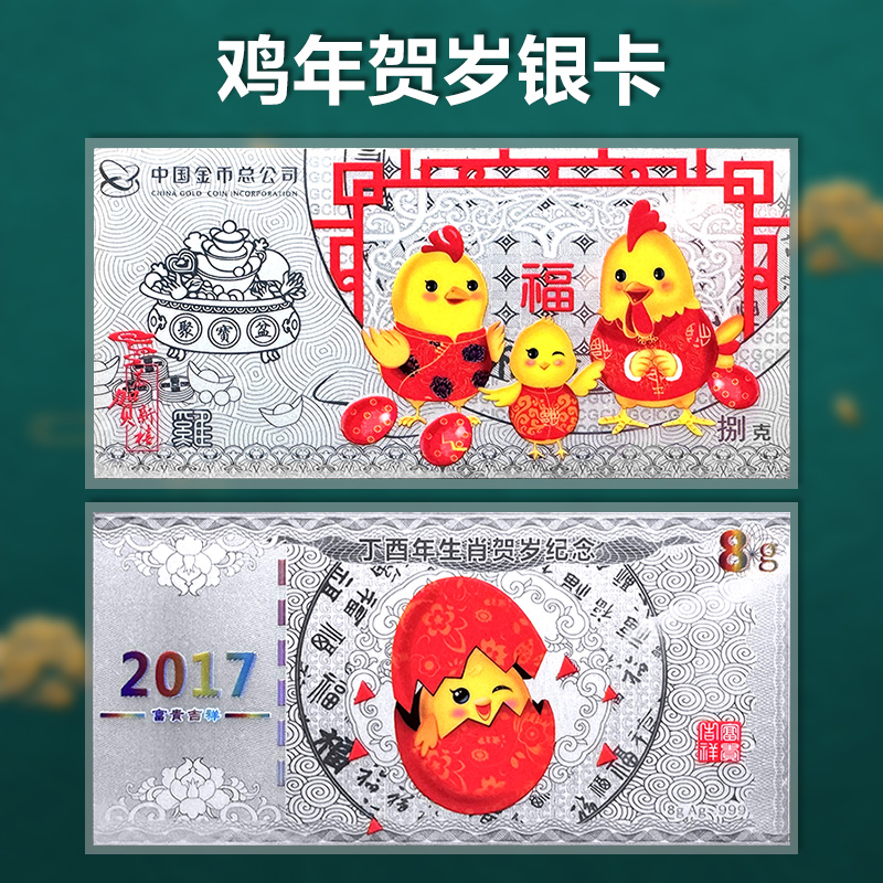 【中国金币】鸡年贺岁银卡,带证书 含纯银8克