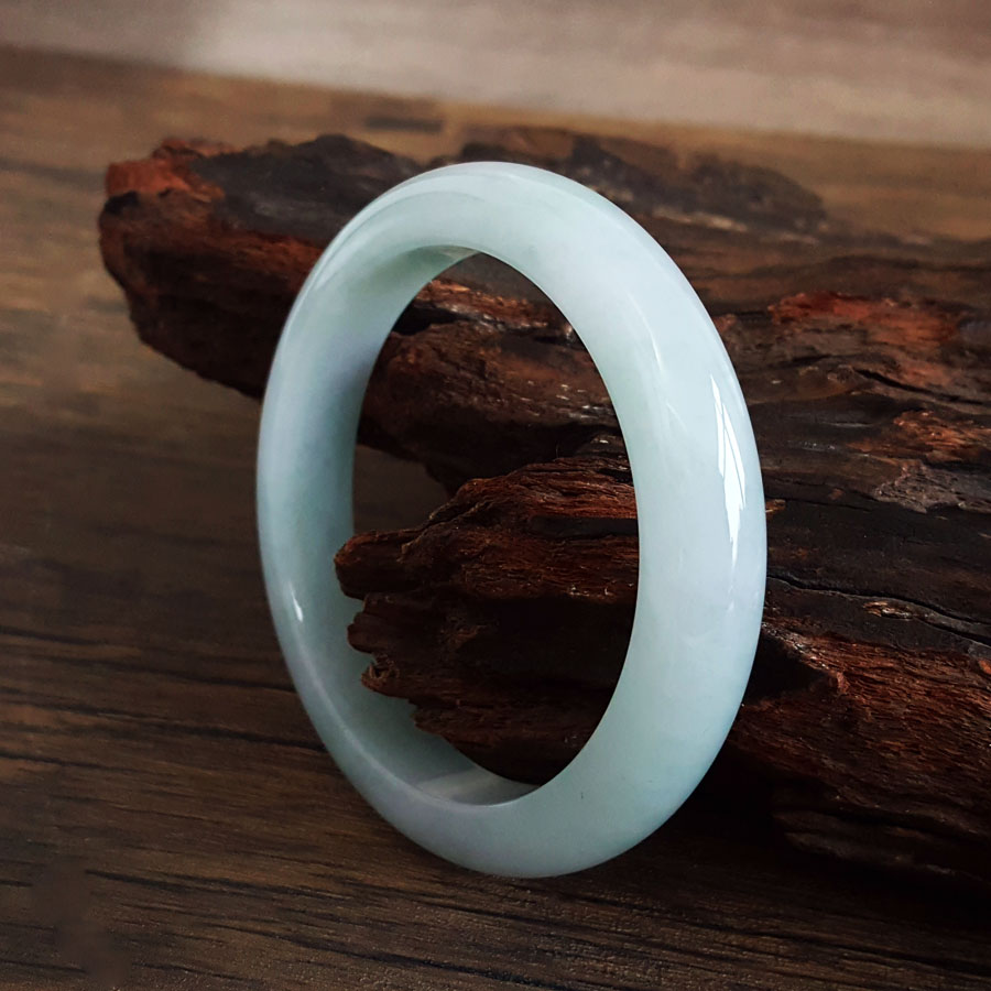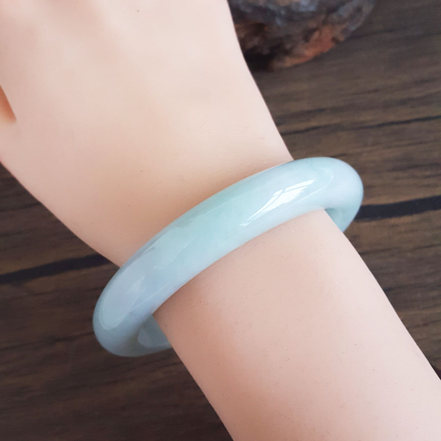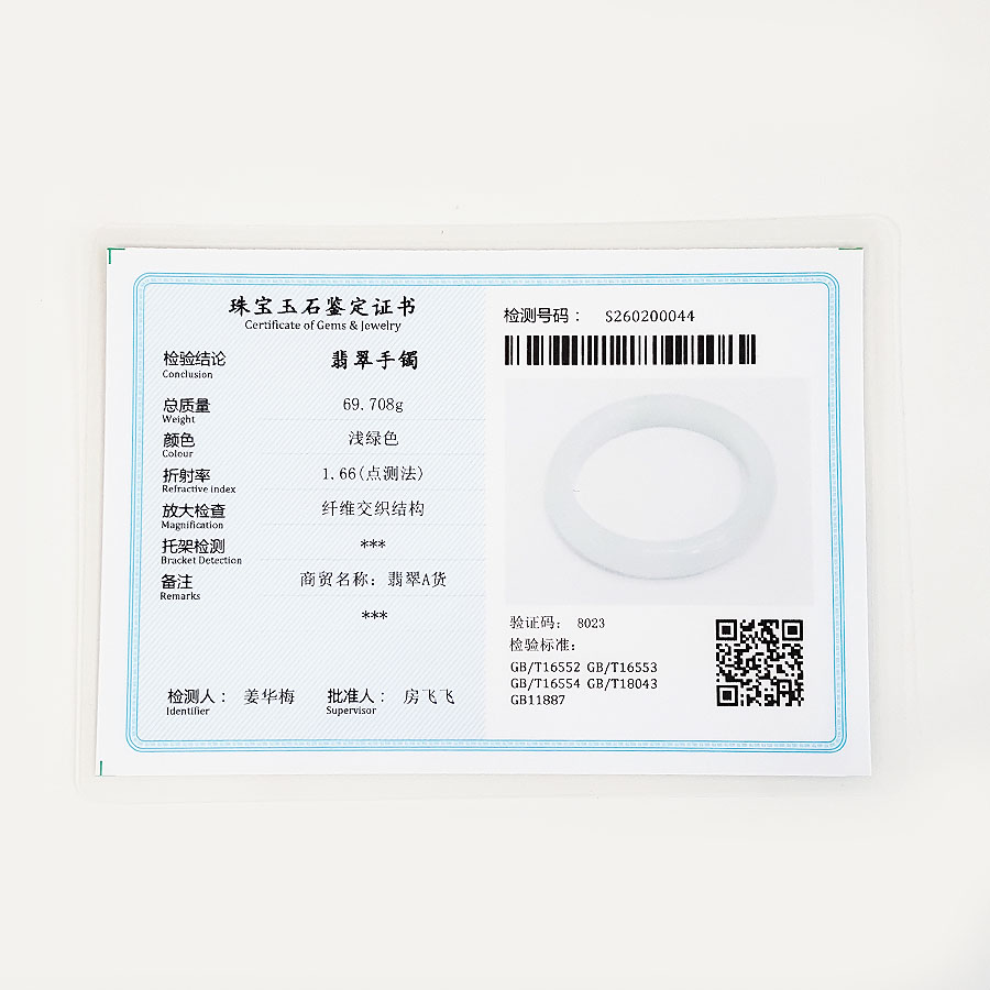 名称 | 天然无纹裂糯种浅绿色61.5号翡翠手镯 |