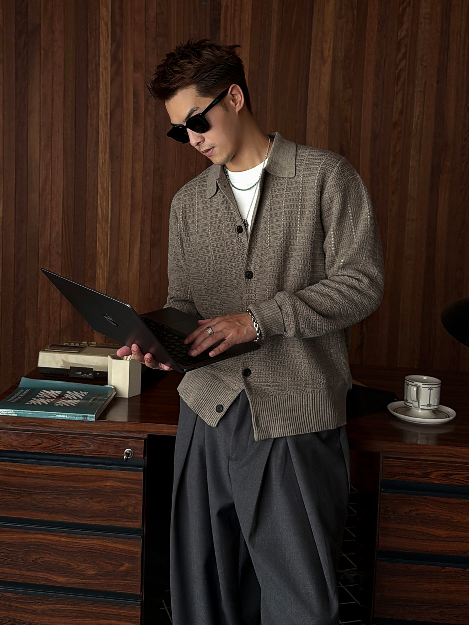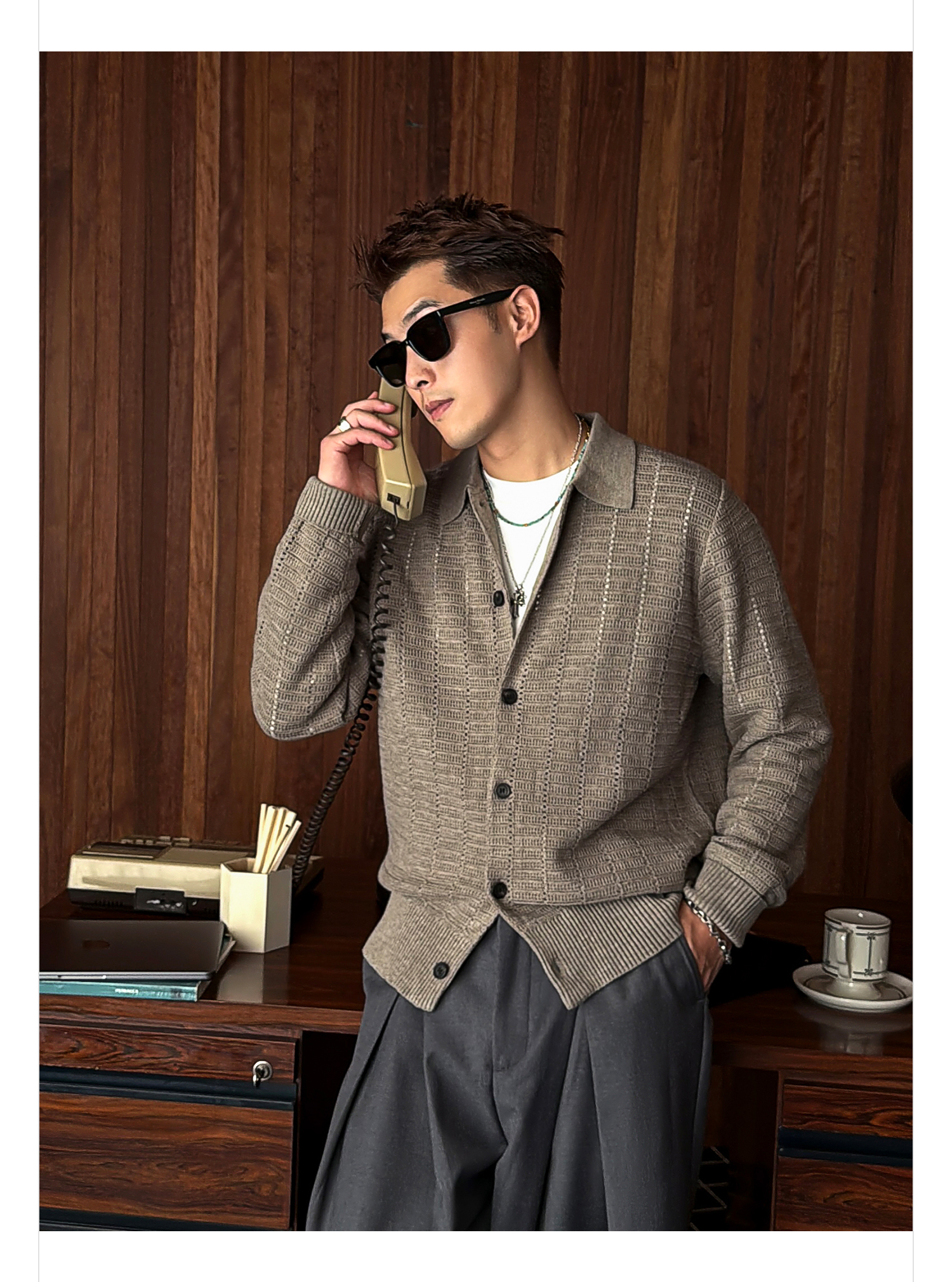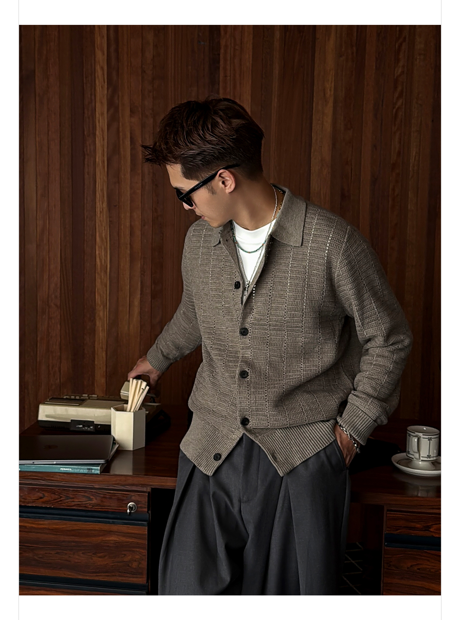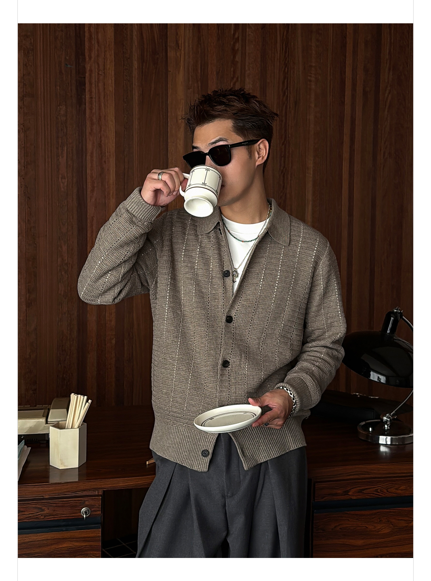 徐太浪508g扭花针织衫外套男2025新款春秋休闲美式慵懒感开衫毛衣