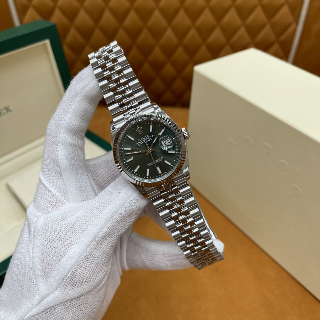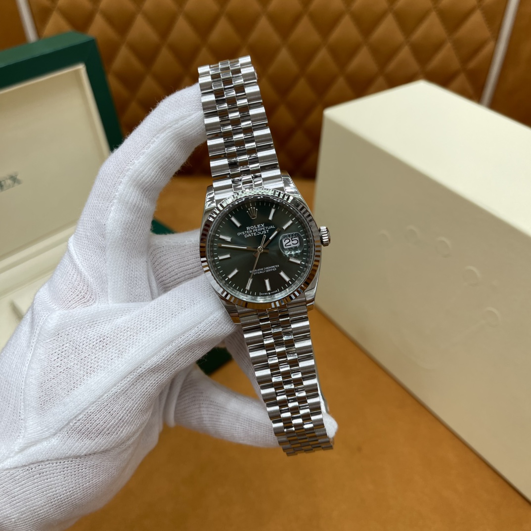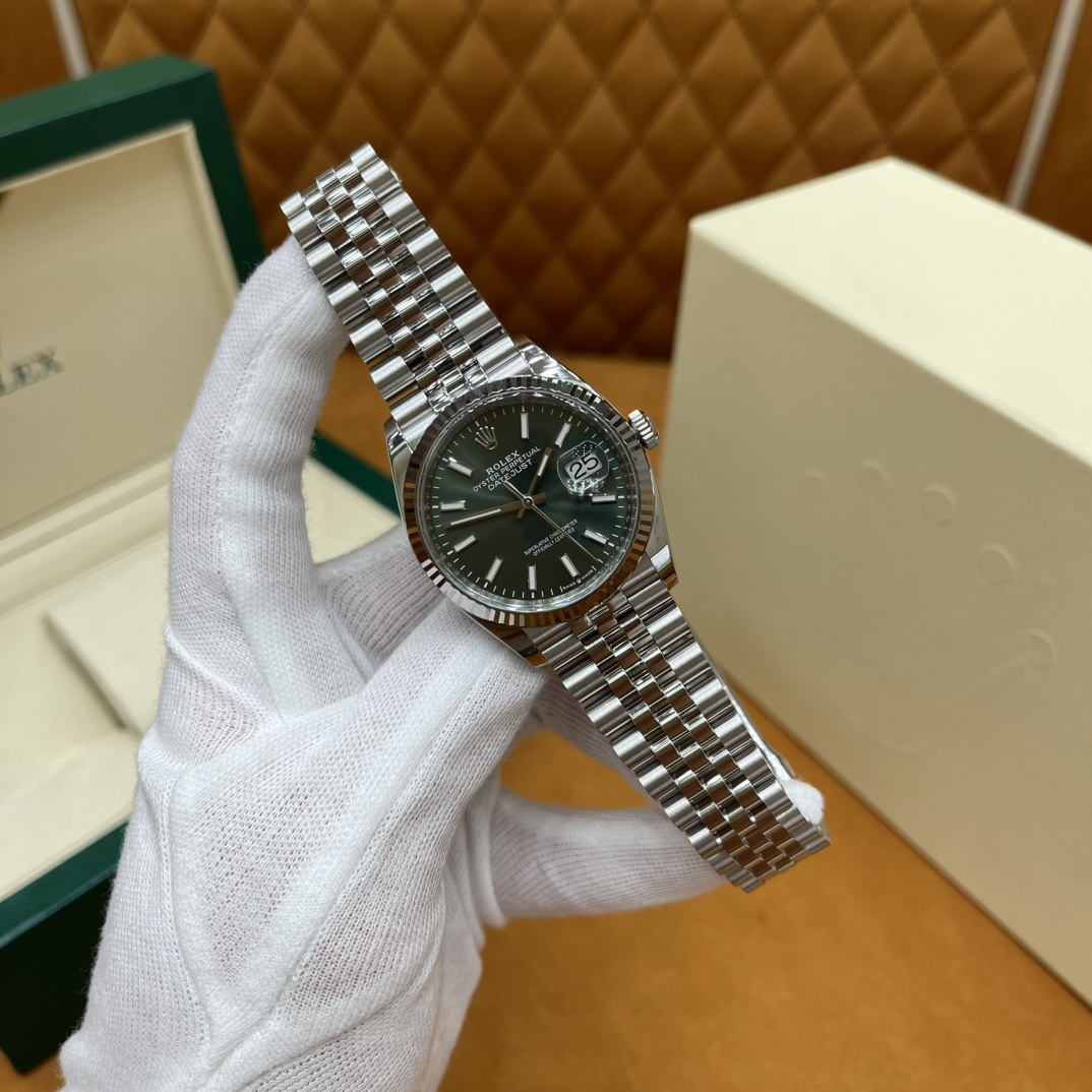 🏷️ 日志型系列m126234-0051 (36mm) 完美版绿盘日志,采用原版3235自动机械机芯,无卡度设计,动力长达72小时,走时精准稳如老狗! 904L精钢表壳表带,质感拉满 推拉顺滑,pvd真空电镀铂金牙圈,持久耐用不易掉色! 三角抗纹外圈搭配与原版无差别的绿色表盘,经典条刻,闪耀精致,低调奢华!防反光凸透式放大日历窗,对版的日历字体,每个数字打磨精细,方便查看~ 高难度的龟壳外观开启方式轻易,锁扣紧密,戴起来非常踏实!舒适的五珠表带,防刮损蓝水晶玻璃,耐磨抗刮,随便造!生活防水。 尺寸:36mm