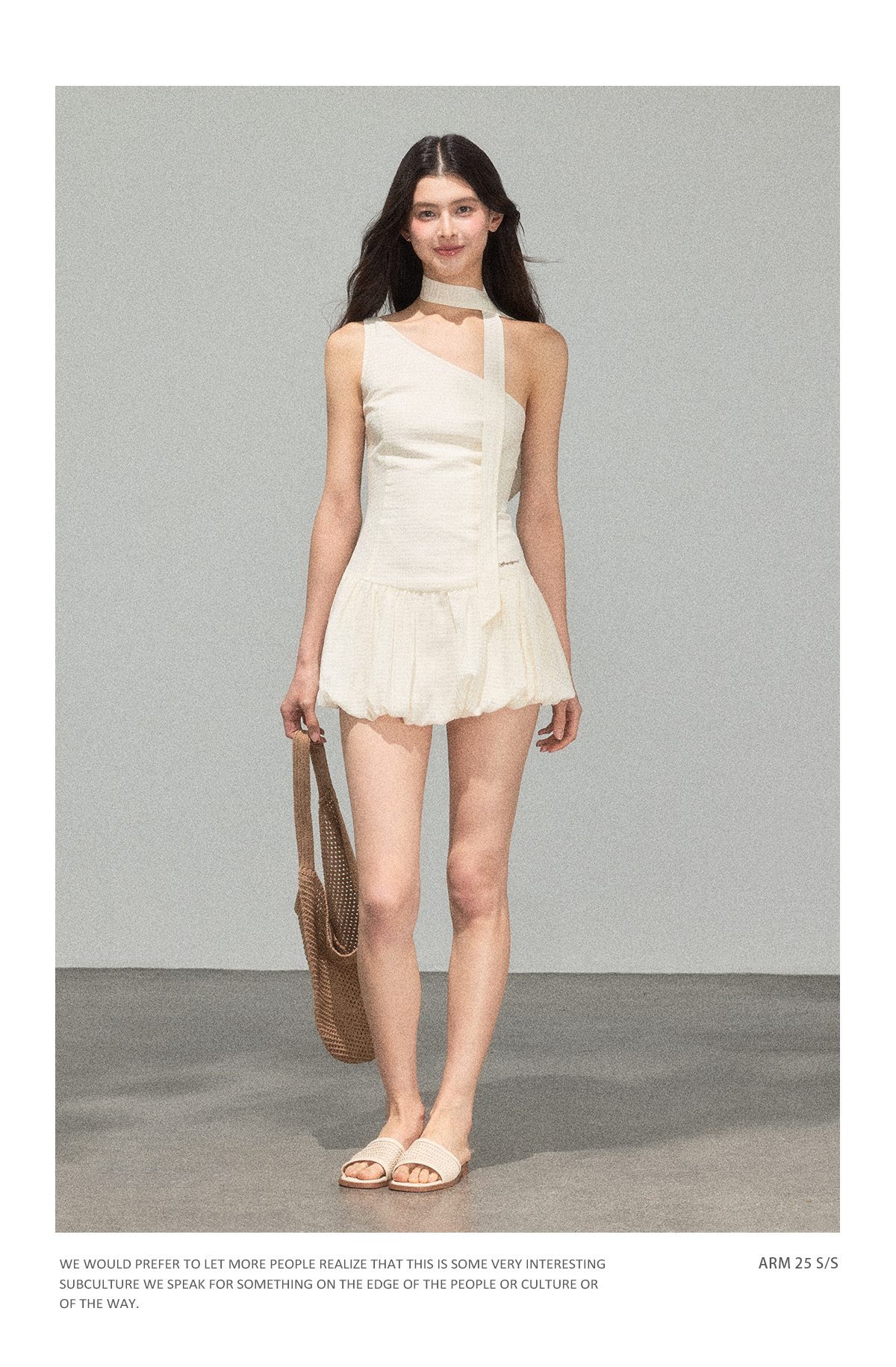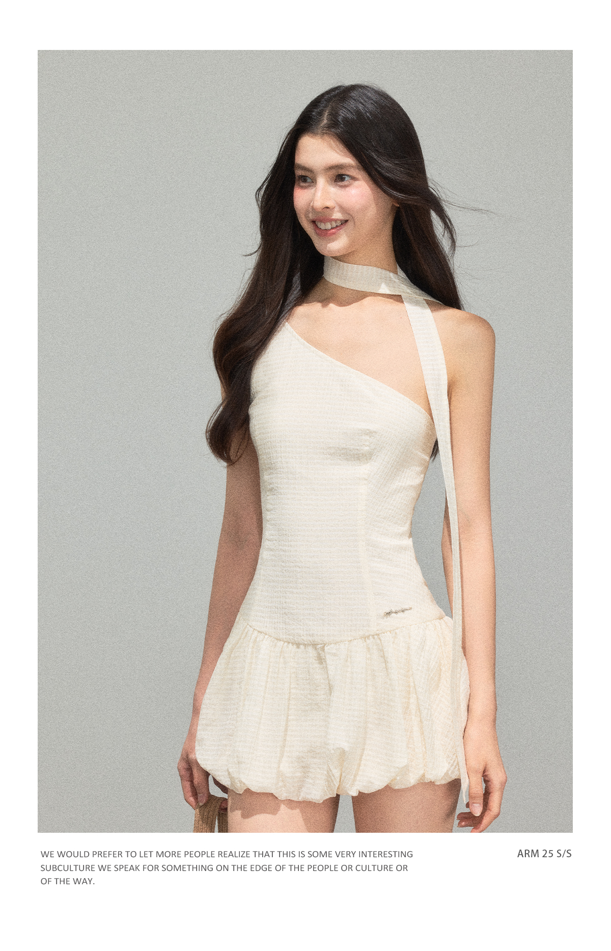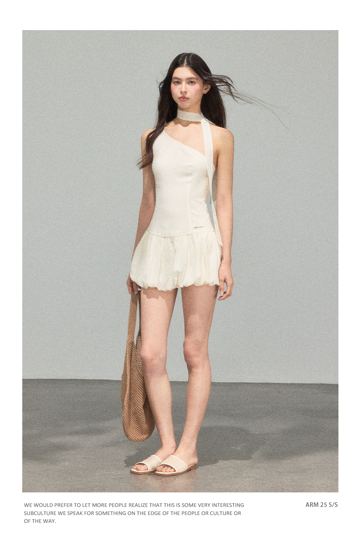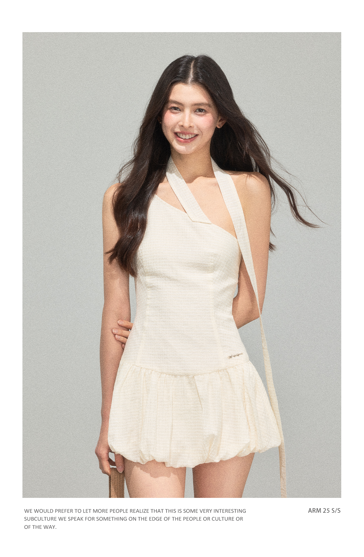 Ariseism 美式复古米色带挂脖连衣裙女夏季新款裙子