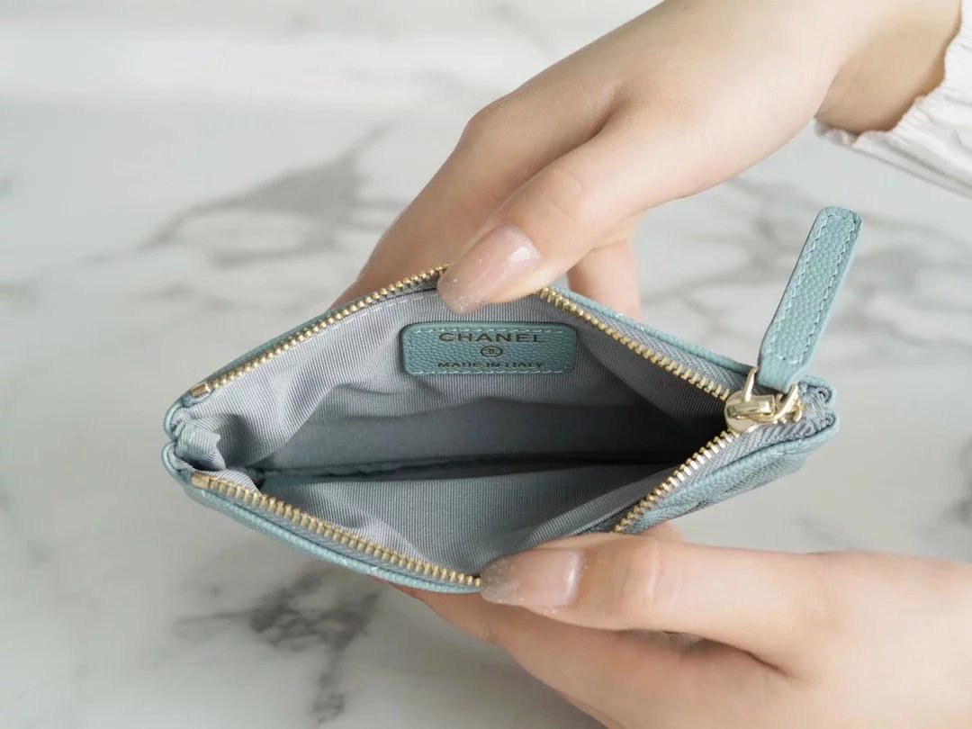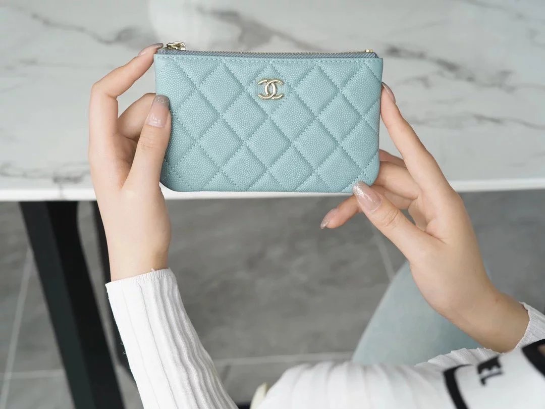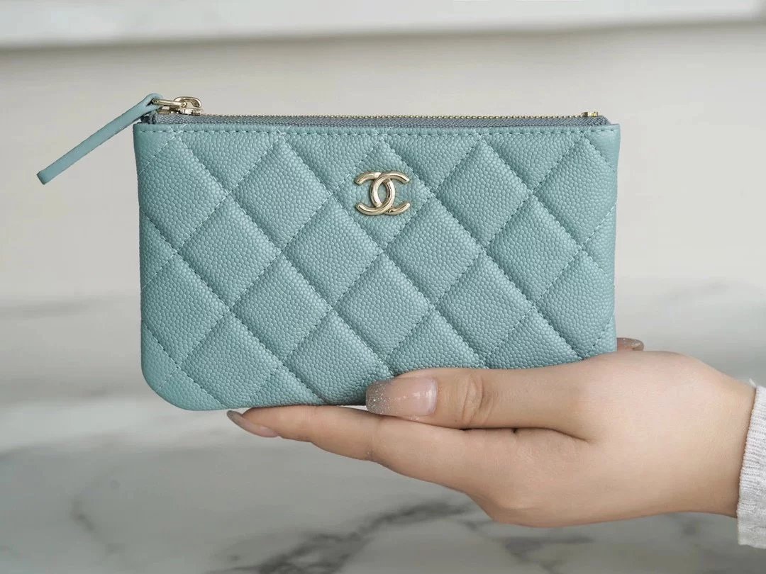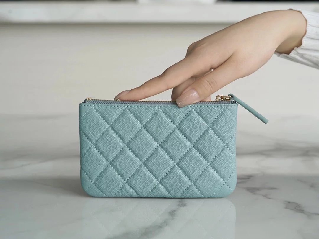 mini拉链随身包#浪漫心动的Tiffany蓝 采用细颗粒压花的小牛皮 ,经典的菱格纹设计,很简约的style,包包为拉链设计、大容量,实用感也是赞哟 尺寸:9.5 15 1cm