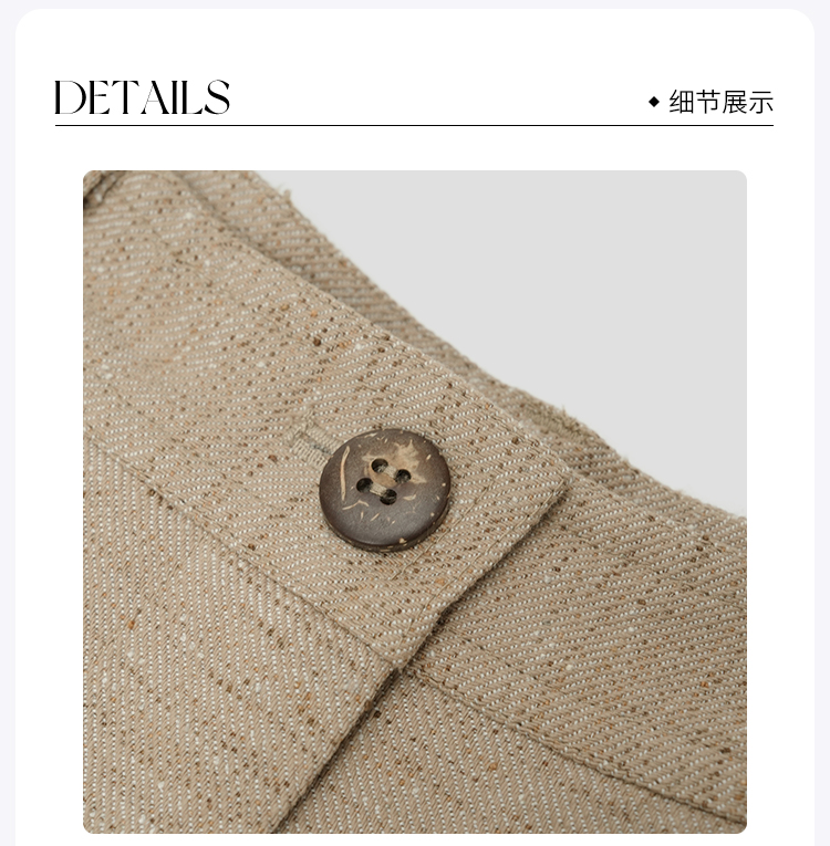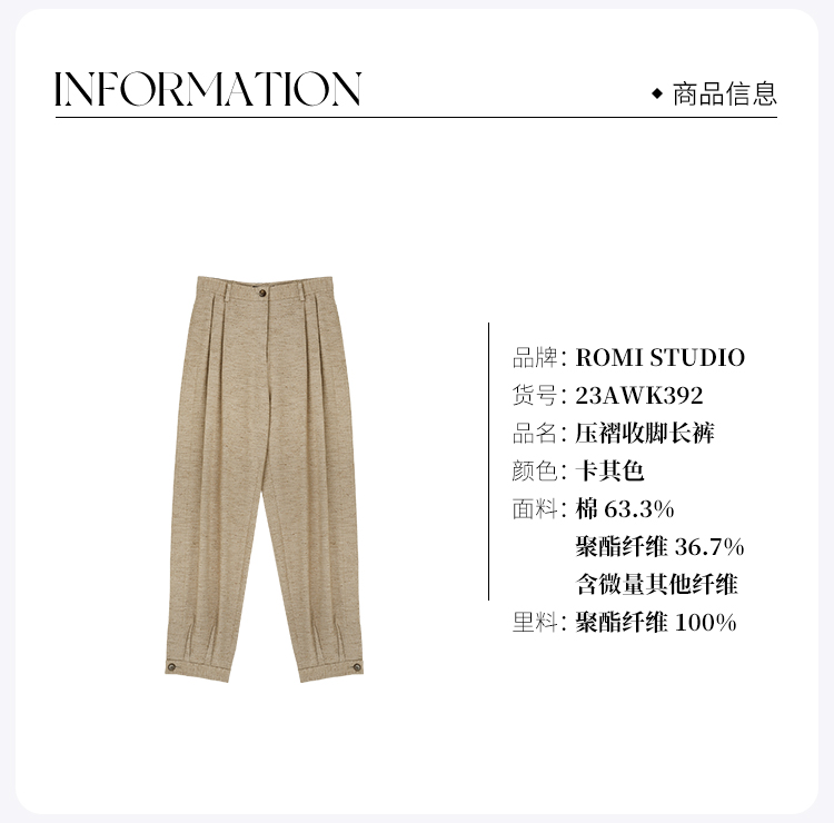 ROMI STUDIO“棕标系列”新疆棉+点子纱混纺压褶收脚长裤23AWK392