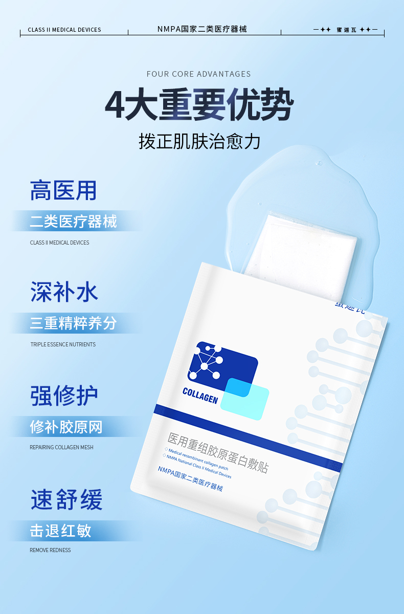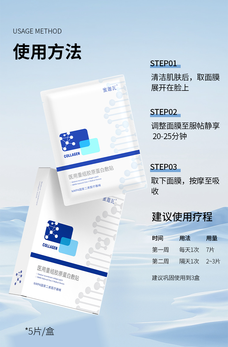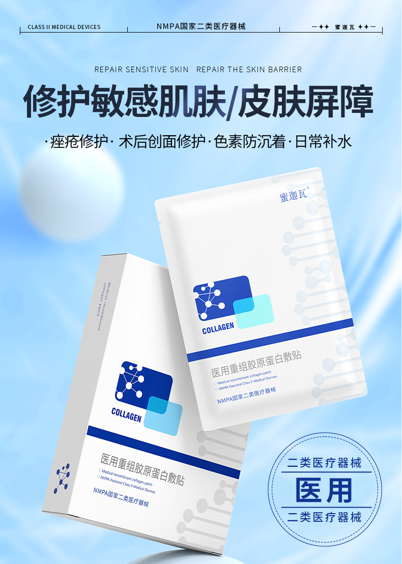 蜜迦瓦重组III型胶原蛋白敷贴 非面膜 日常/术后修护 舒缓褪红 补水保湿 创面修护