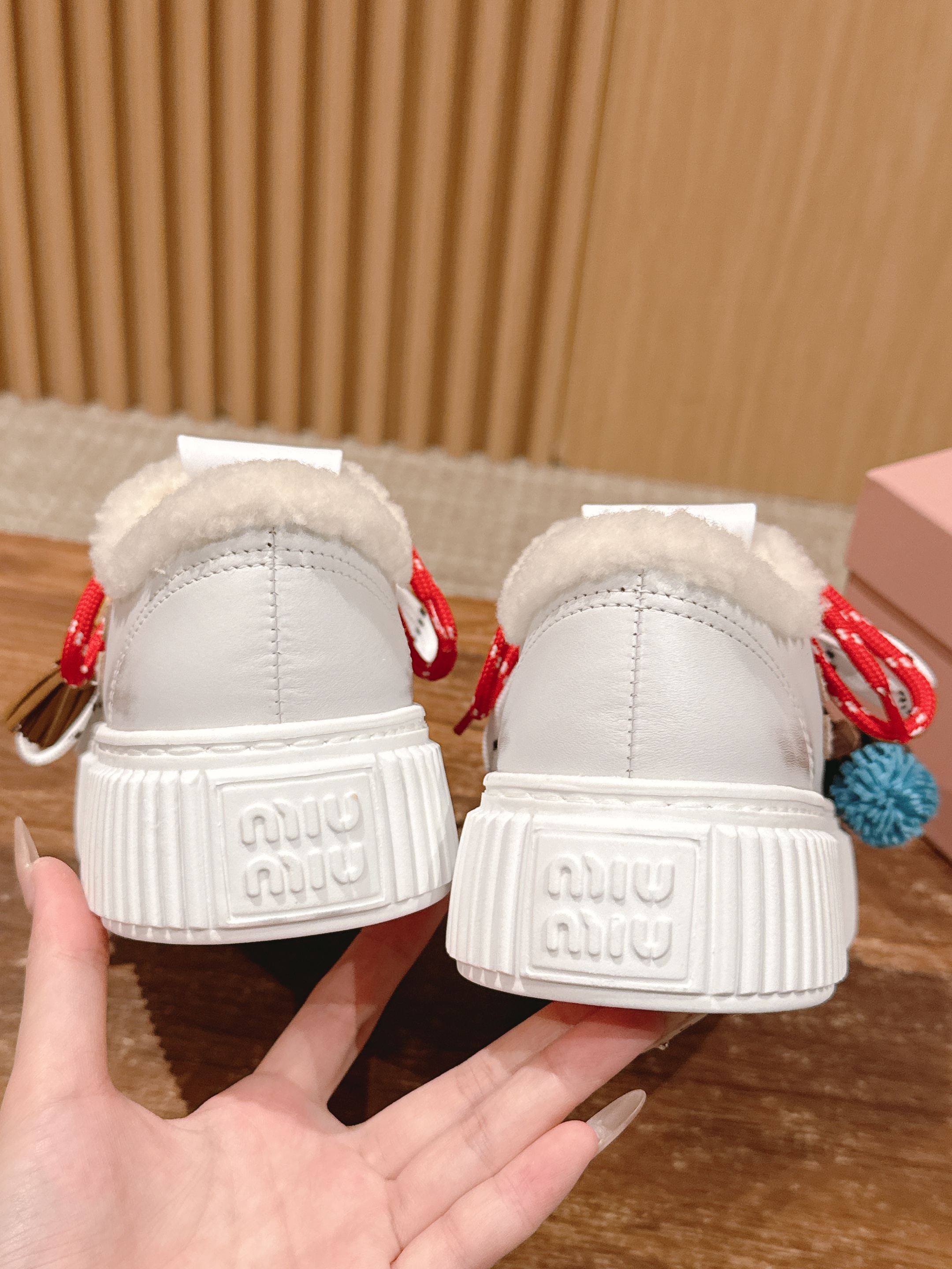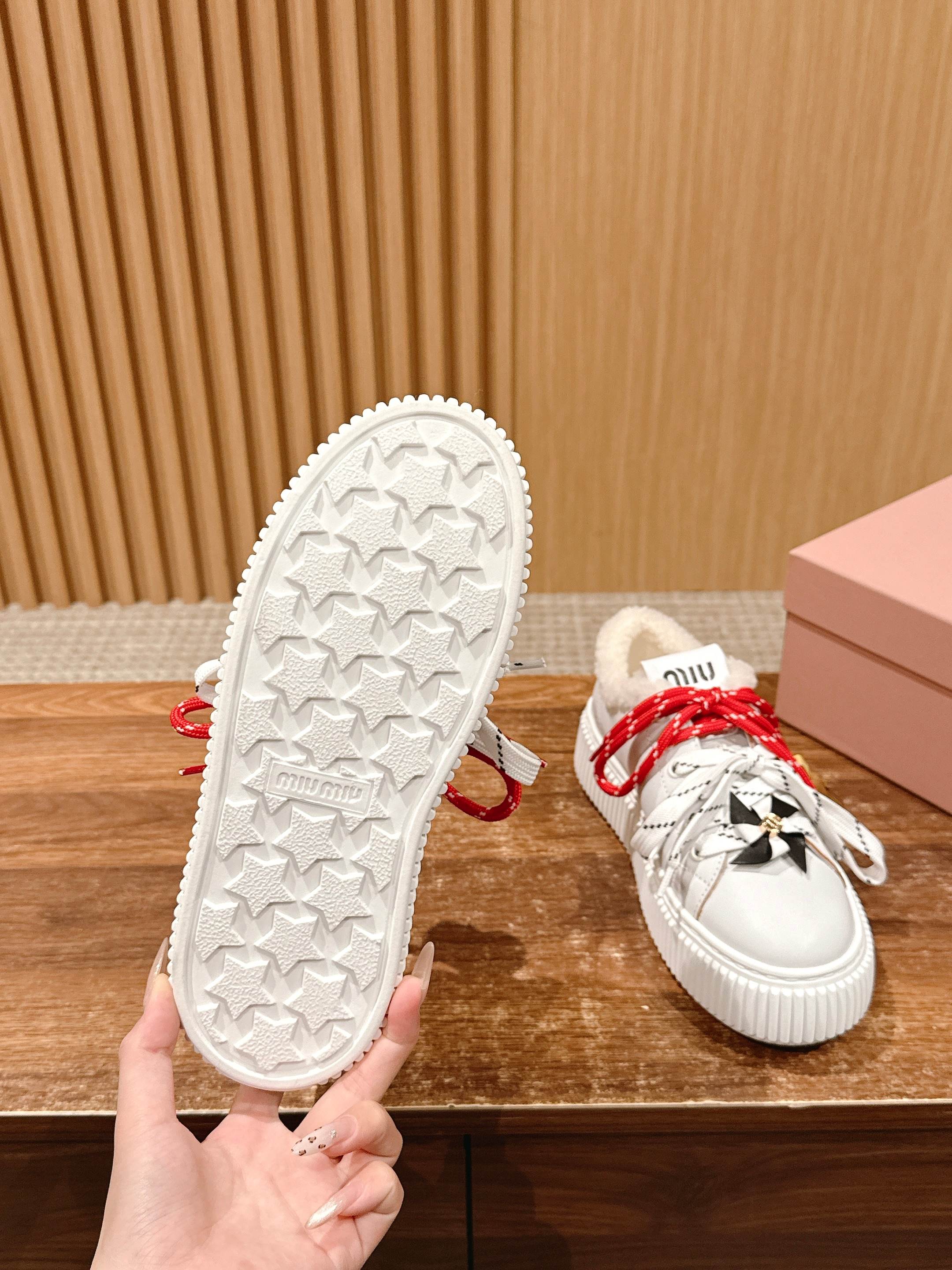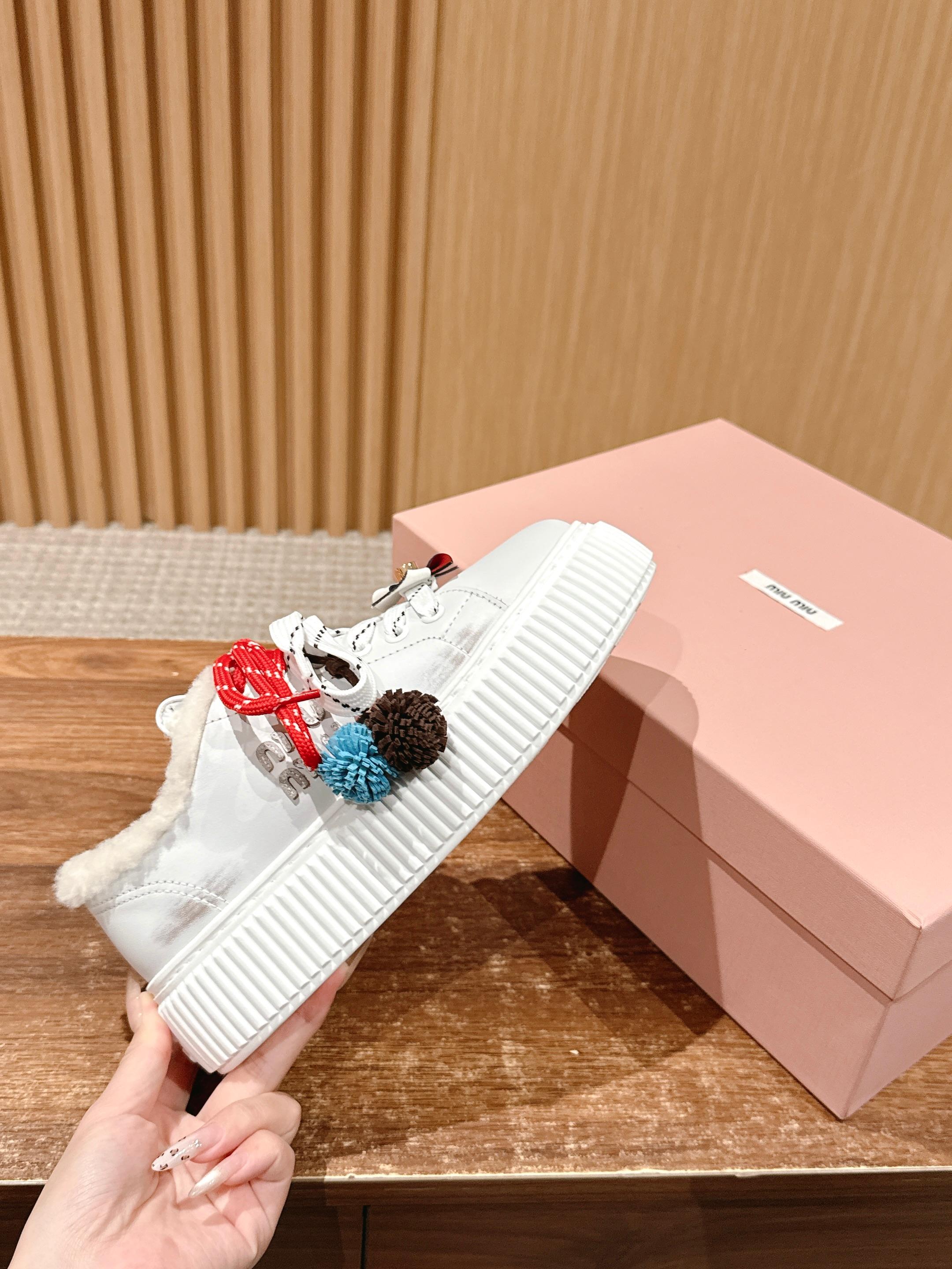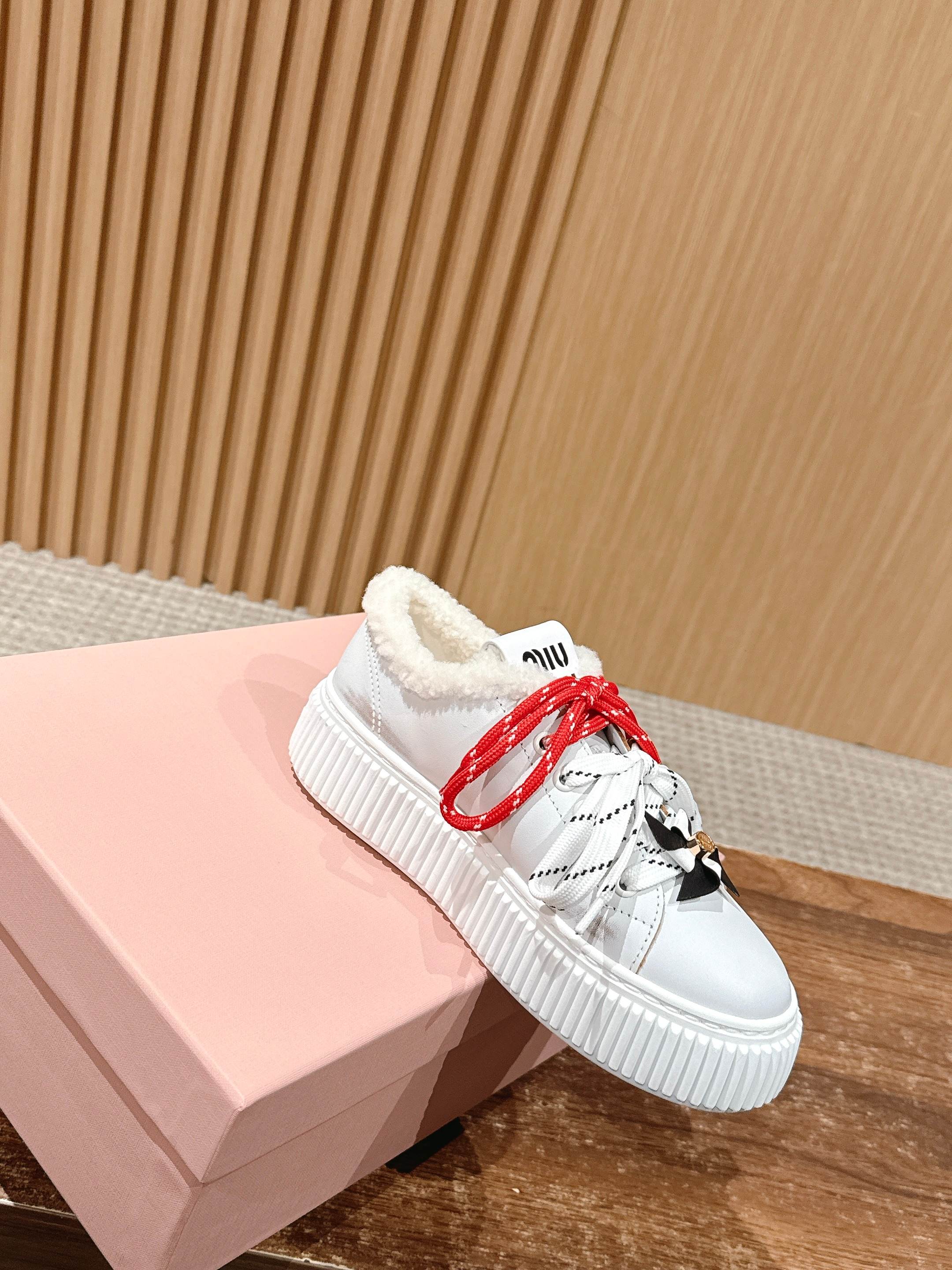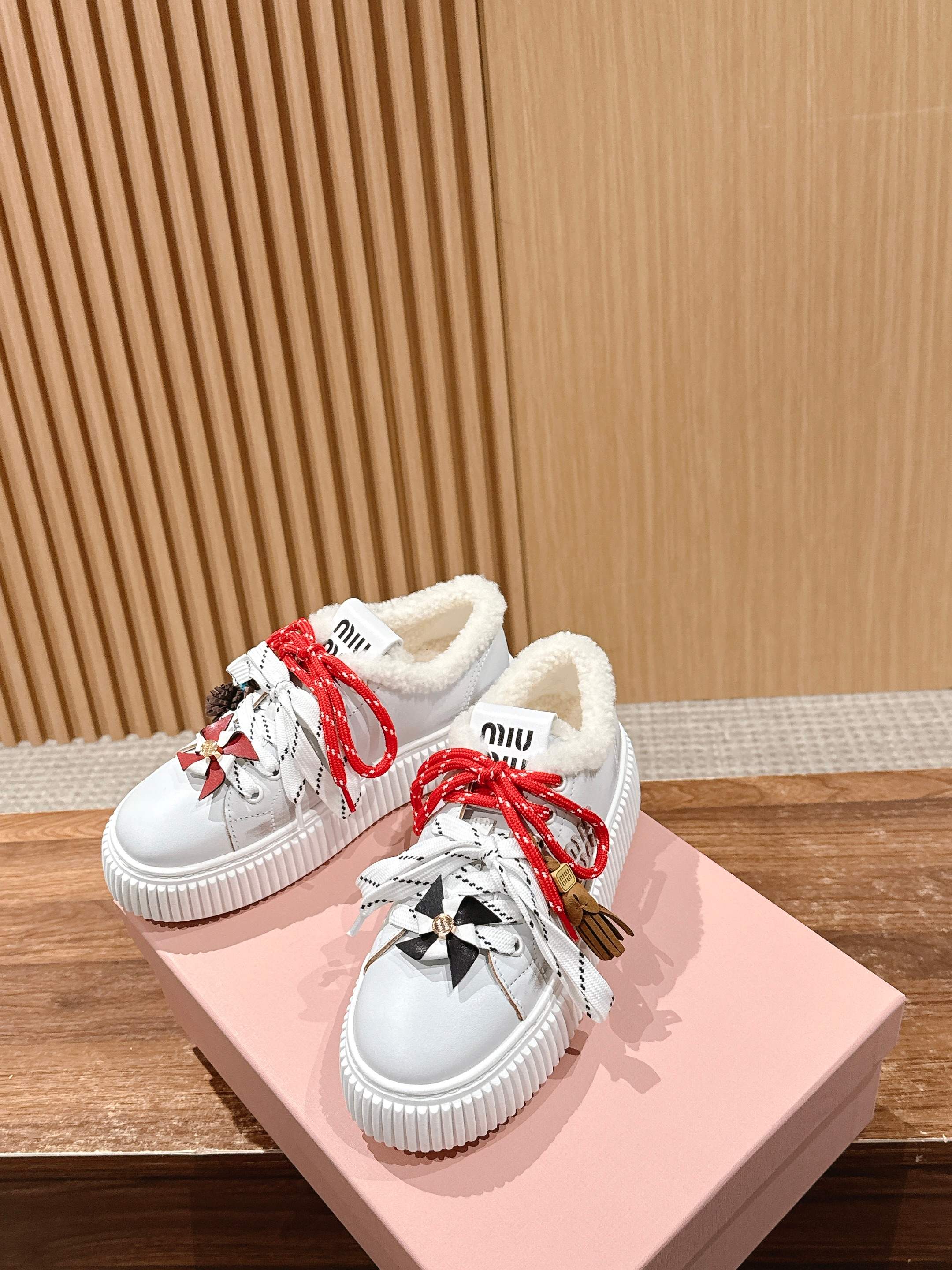 缪缪 秋冬新款 厚底 休闲小白鞋 羊毛饼干鞋 加绒(DBG)
