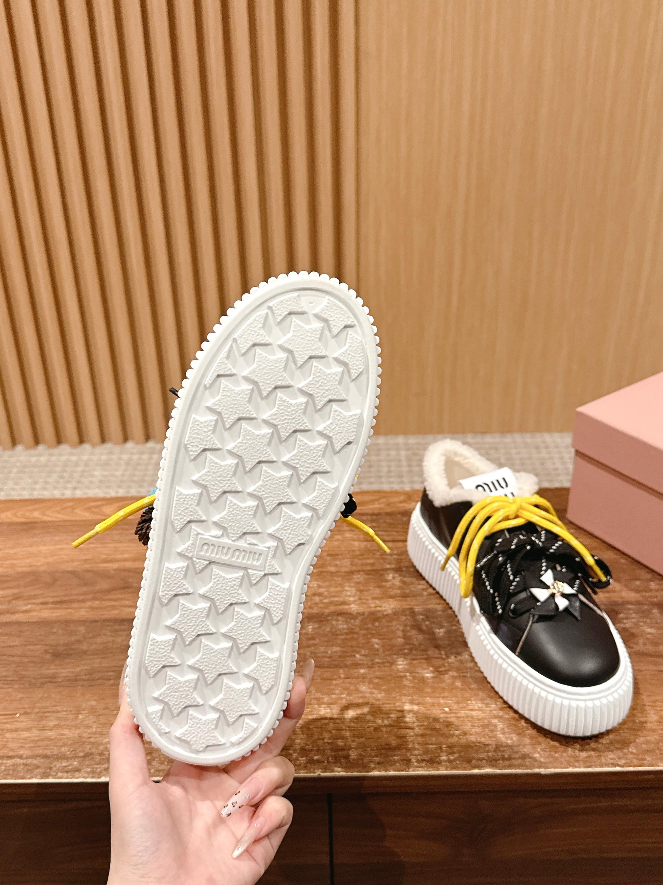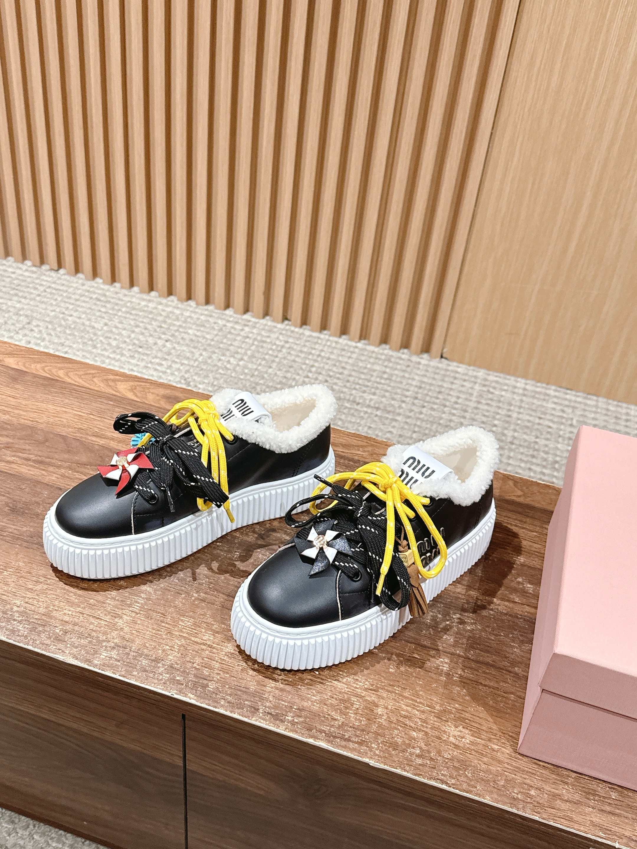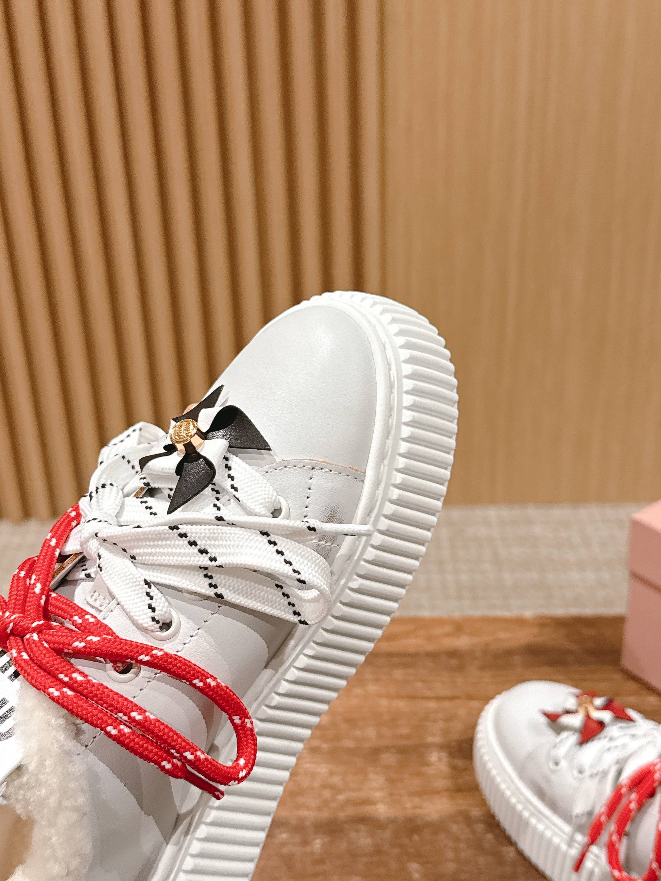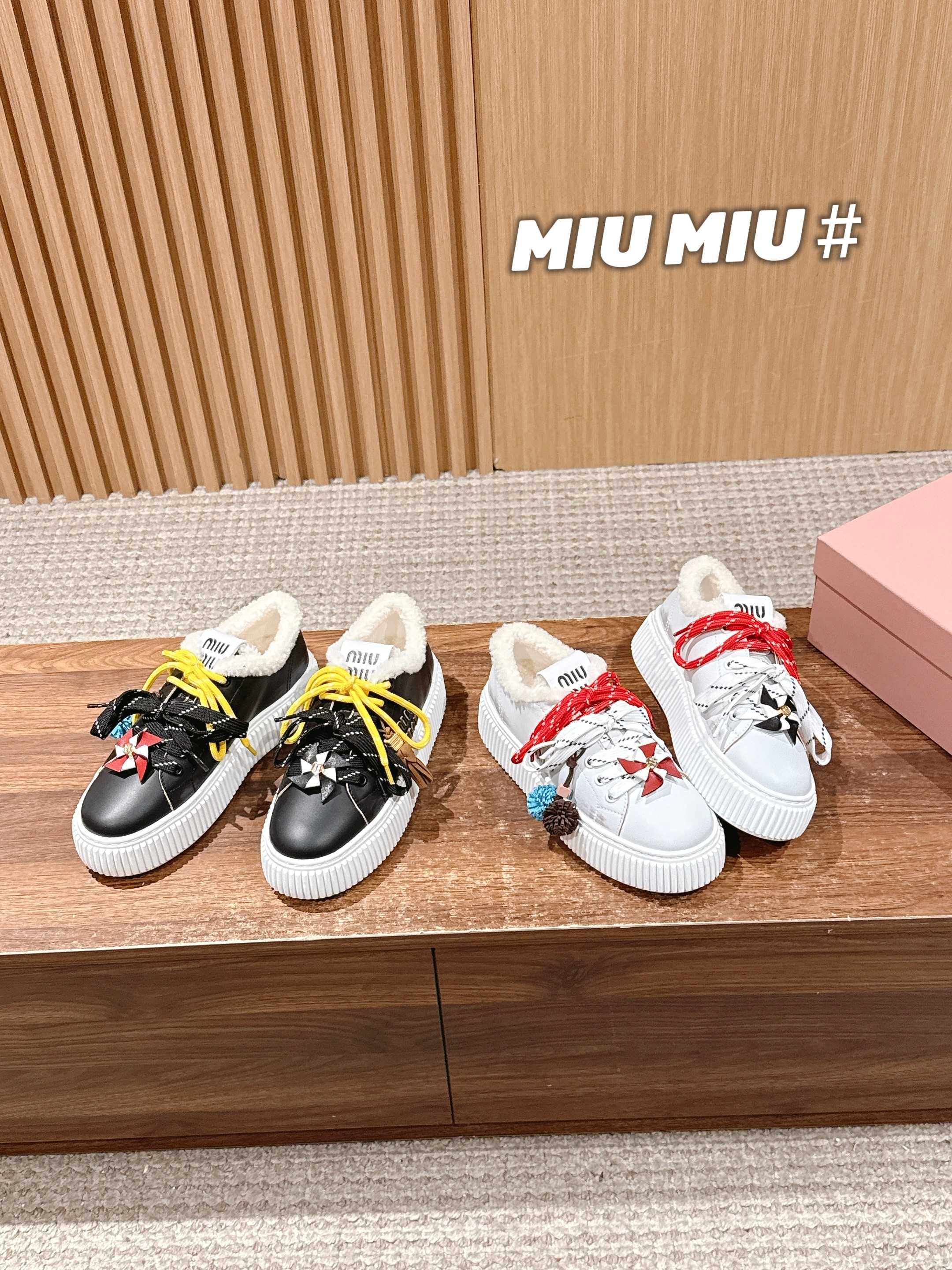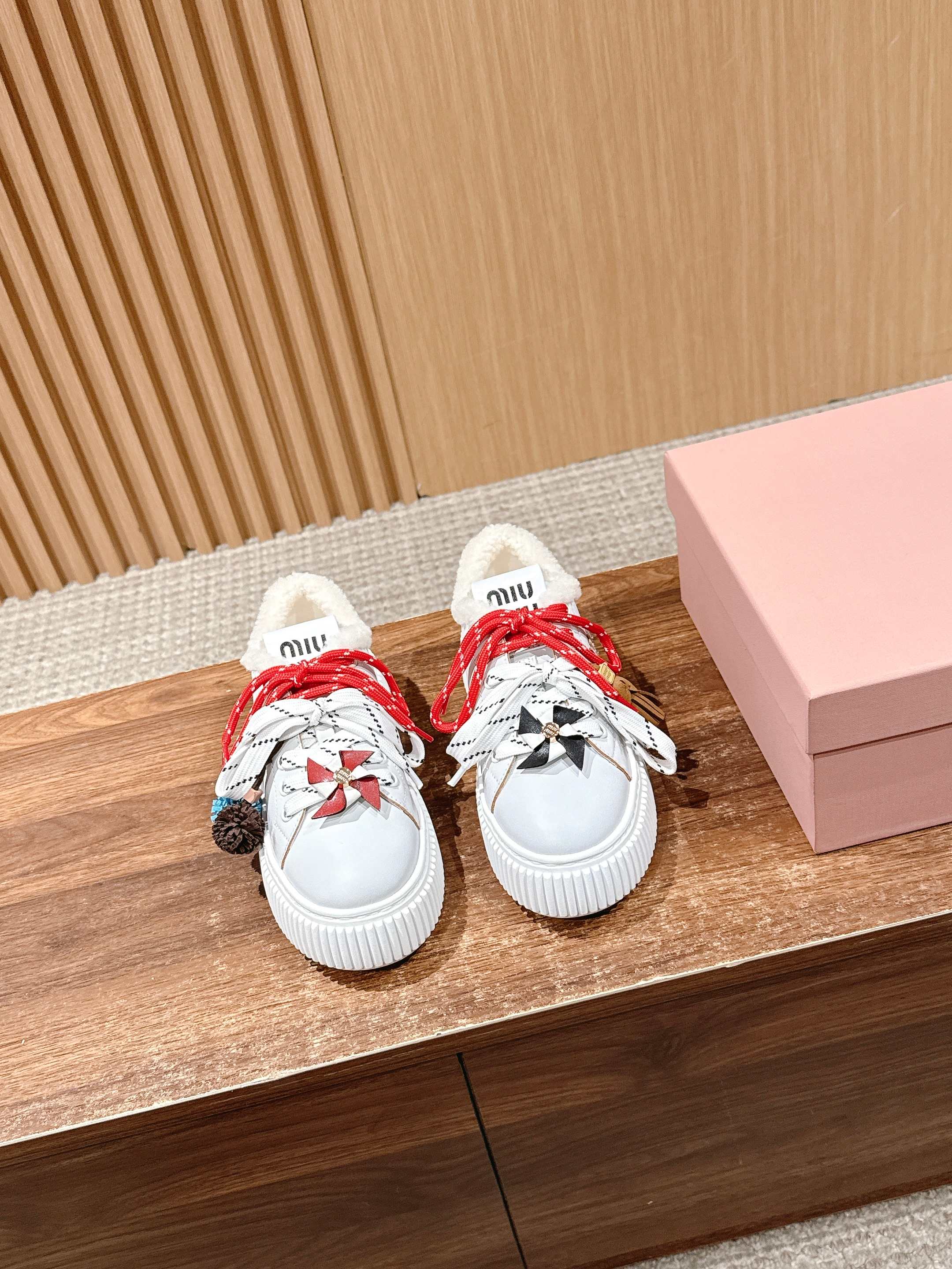 缪缪 秋冬新款 厚底 休闲小白鞋 羊毛饼干鞋 加绒(DBG)