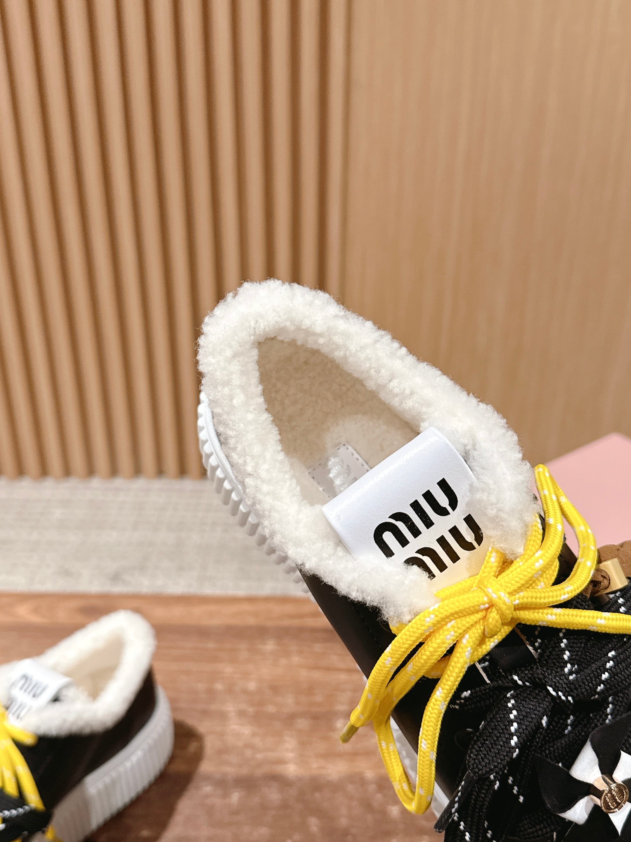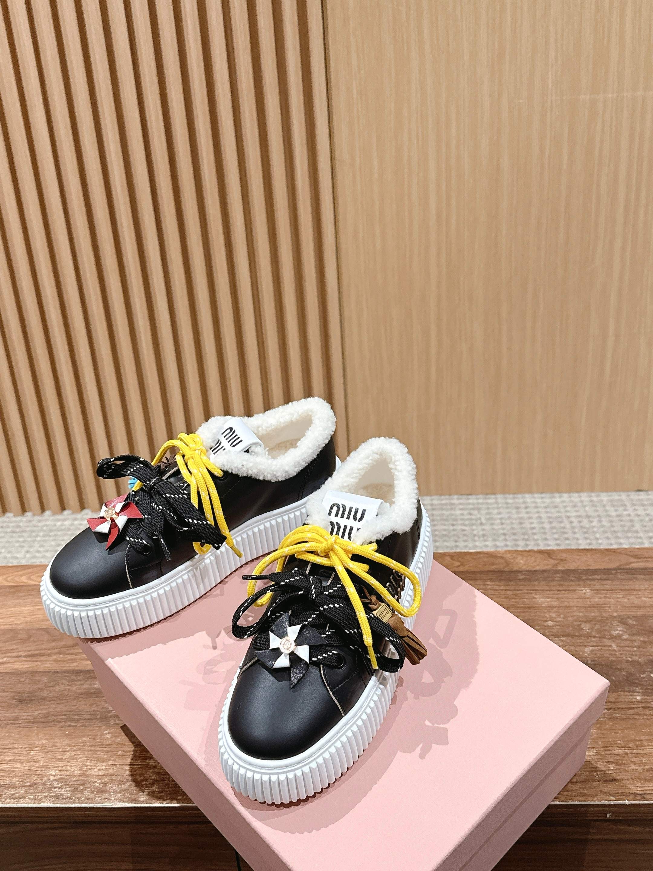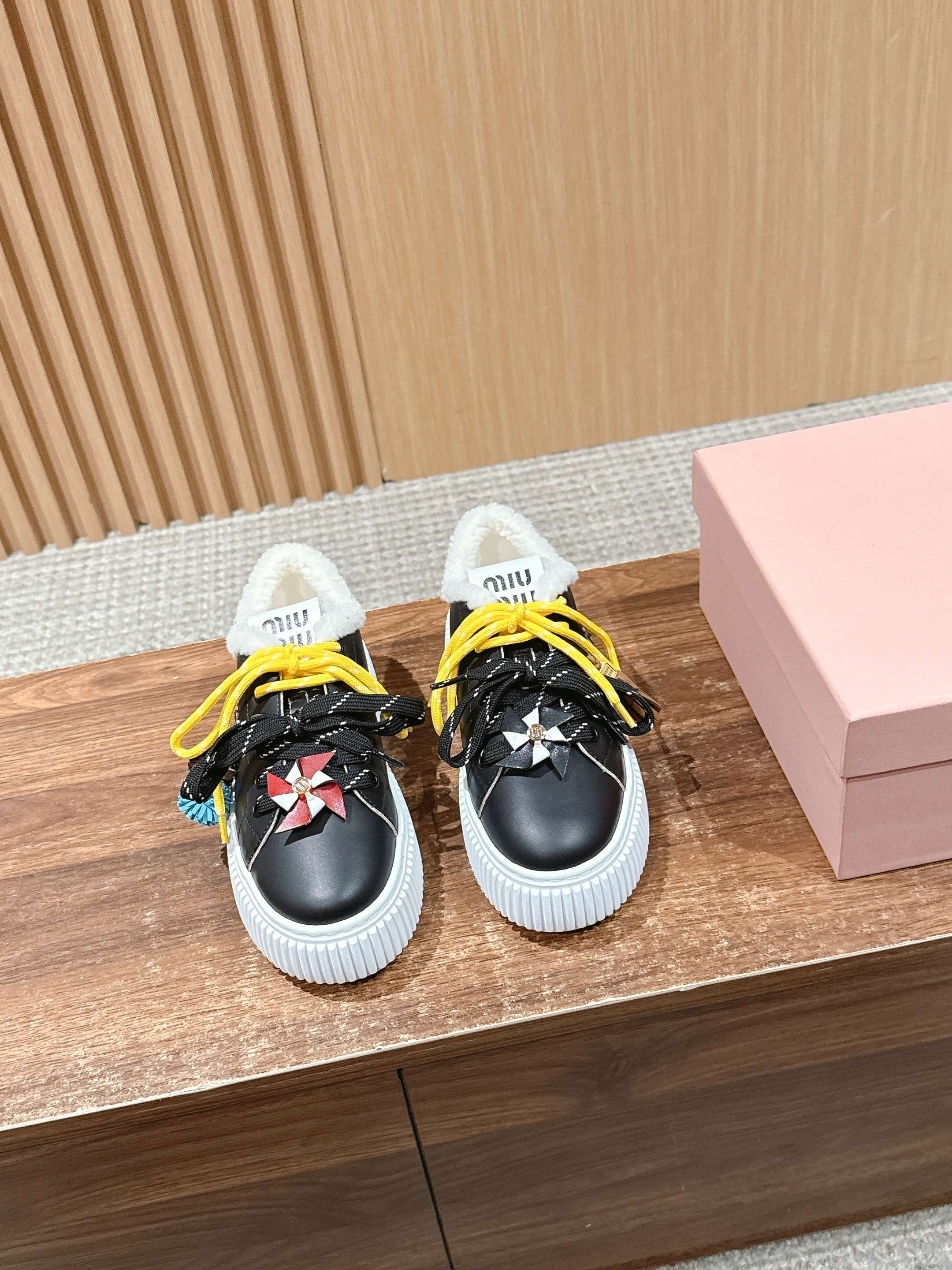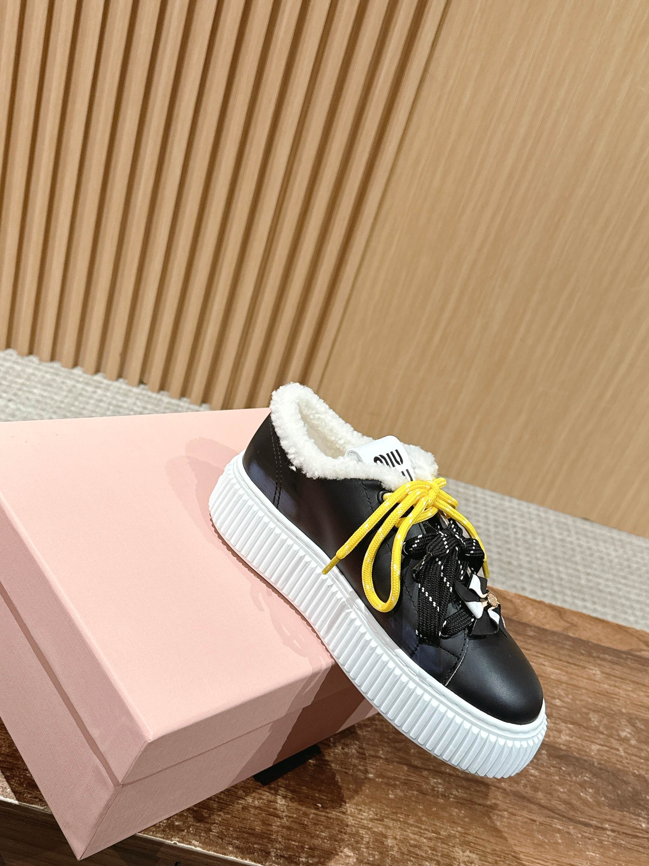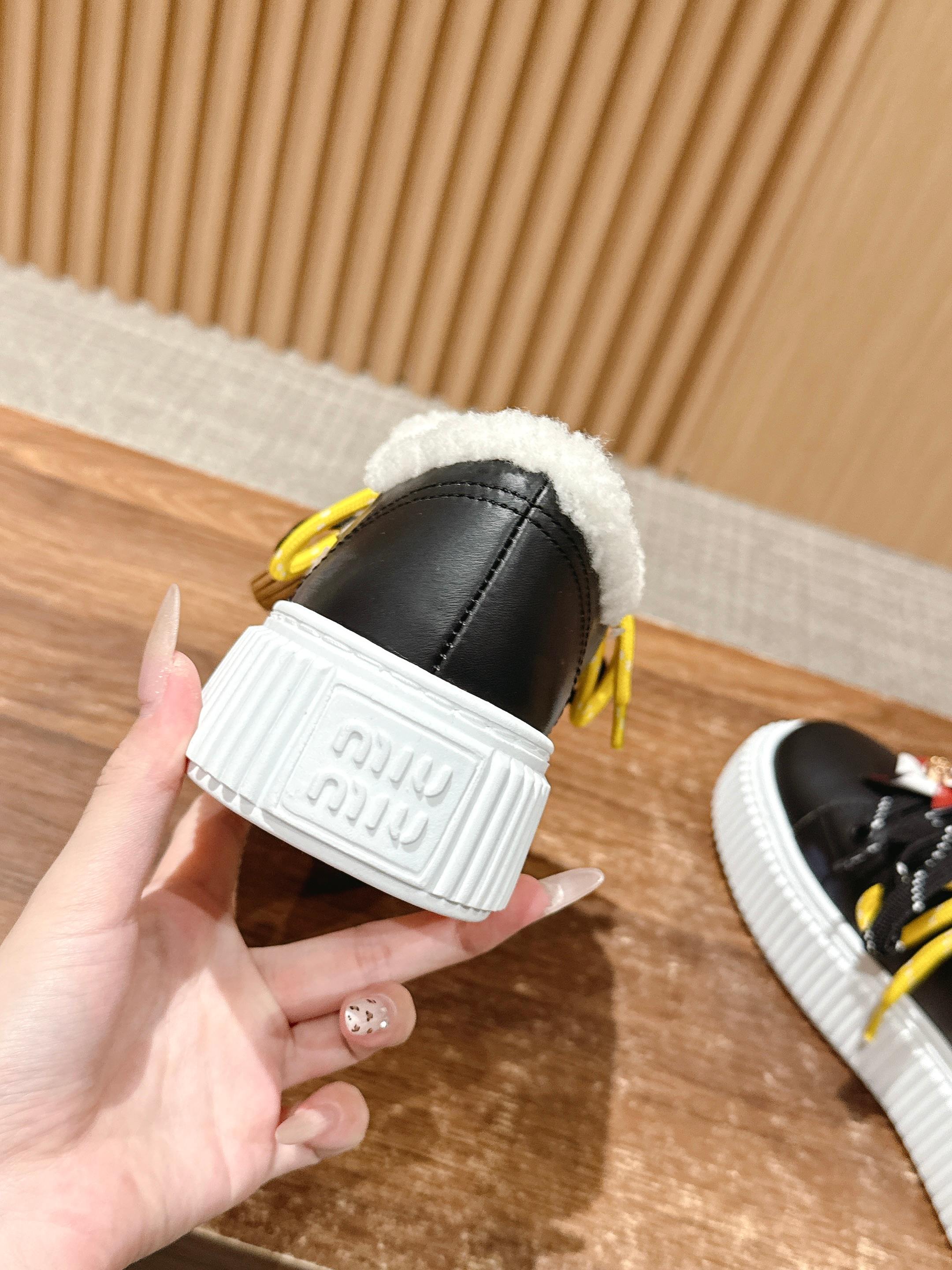 缪缪 秋冬新款 厚底 休闲小白鞋 羊毛饼干鞋 加绒(DBG)