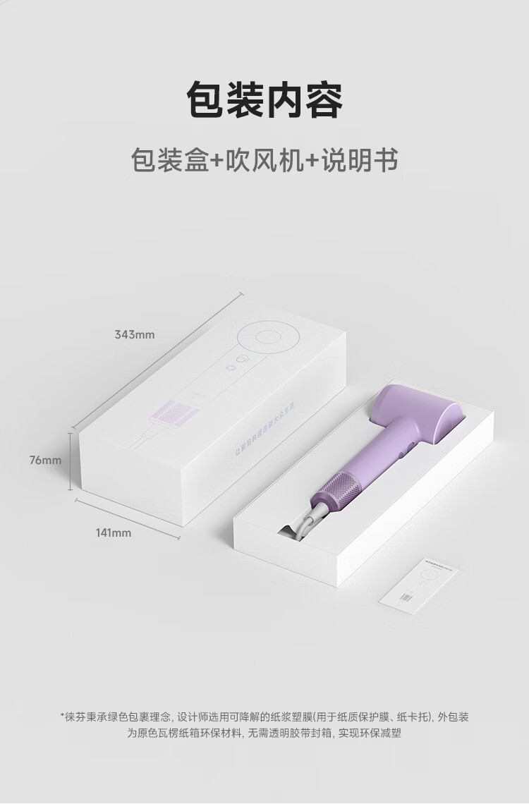 徕芬Laifen SE 家用电吹风大功率高速吹风机负离子大风力速干低噪音莱芬便携无叶不伤发风筒 浅紫色
