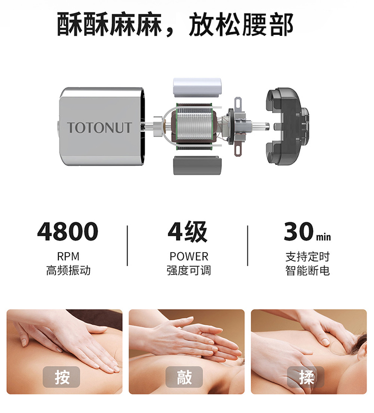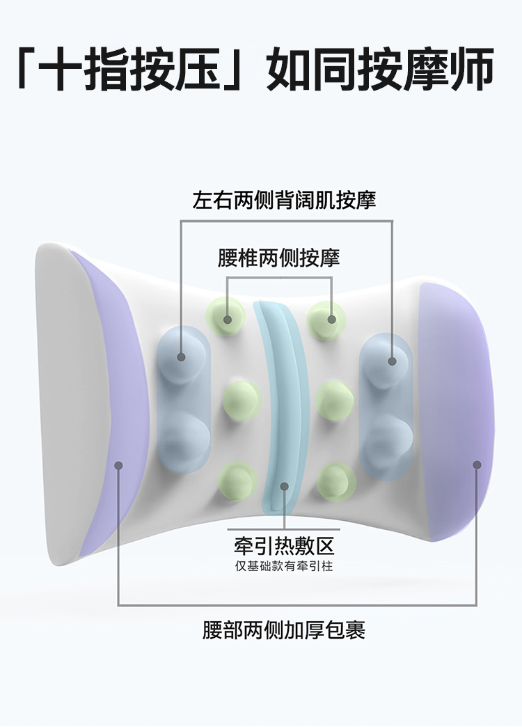 TOTONUT 十指按摩加热腰枕 | 仿真指压按摩牵引 坐躺两用 恒温热敷 放松腰部酸沉胀痛