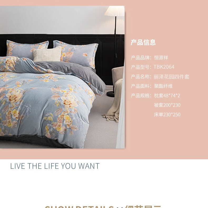 恒源祥礼业TBK2064丽泽花园四件套秋冬家用双人套件 丽泽花园四件套 1.5m(被套:200*230cm)