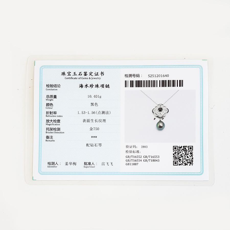 【天然正品】AU750白金豪镶钻镶天然近完美约12.8*11.2MM水滴形孔雀绿大溪地海水珍珠吊坠项链43.7*22.1*7.8MM(皆取最大值)链长:45CM(长度可调节) 231225TJ33