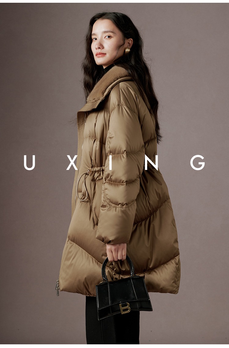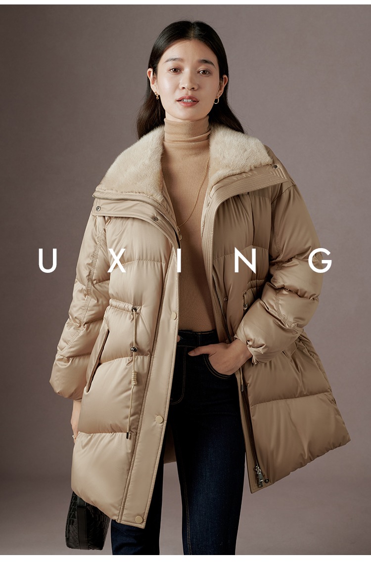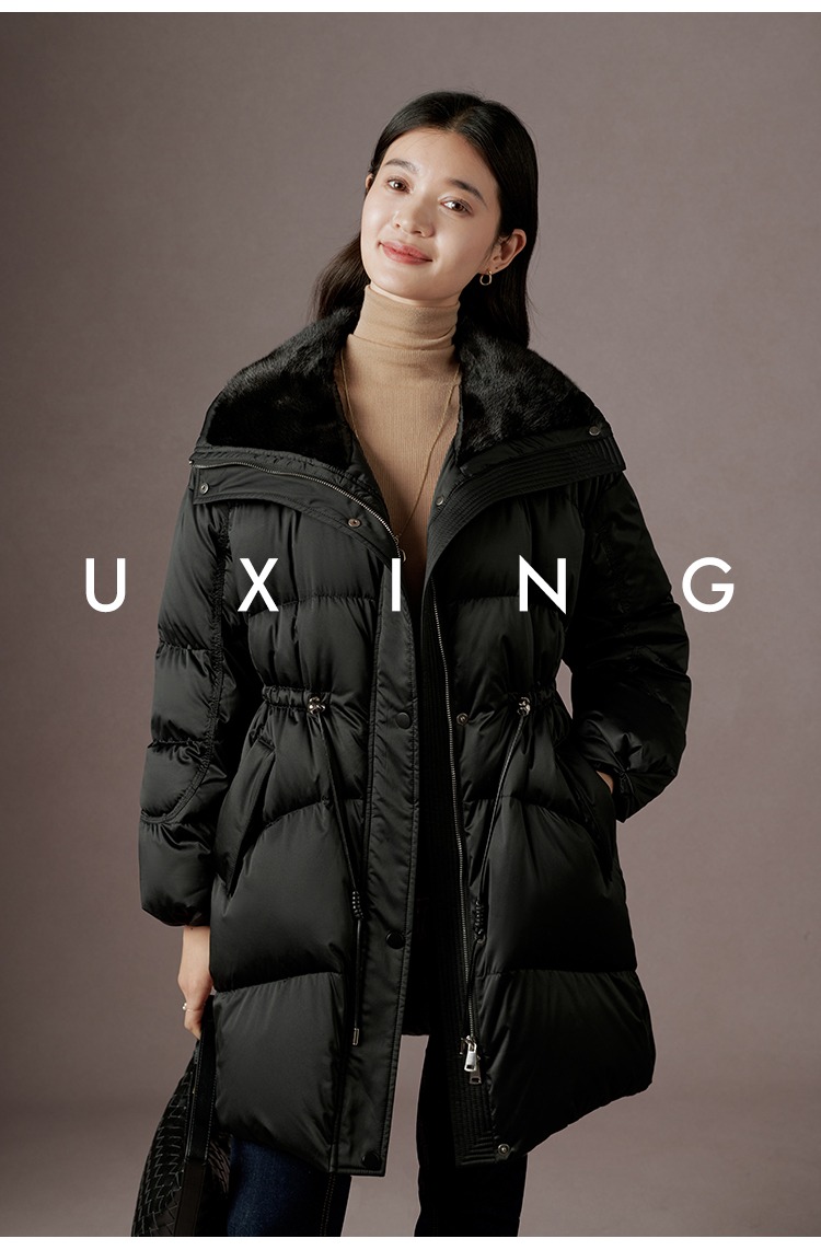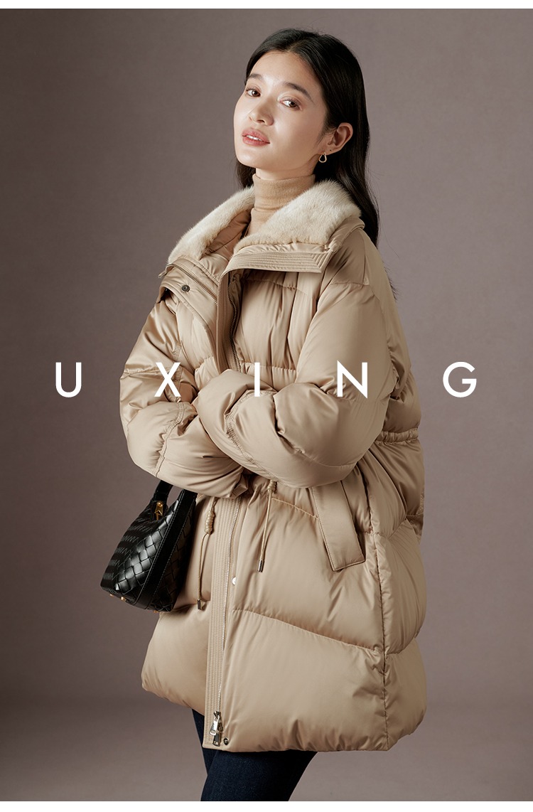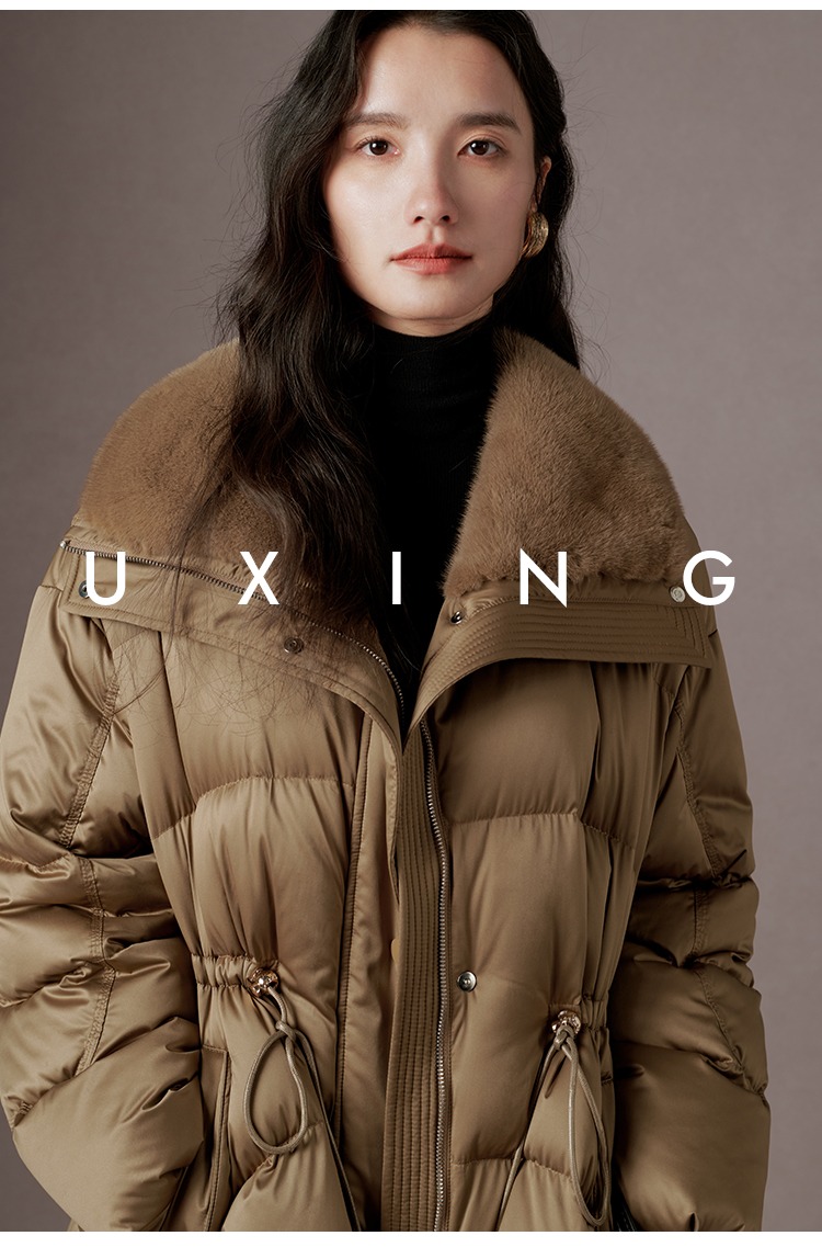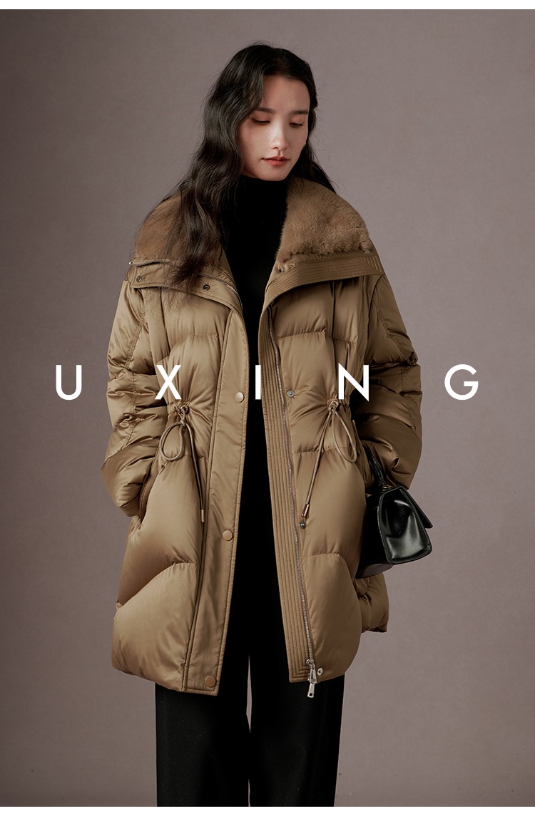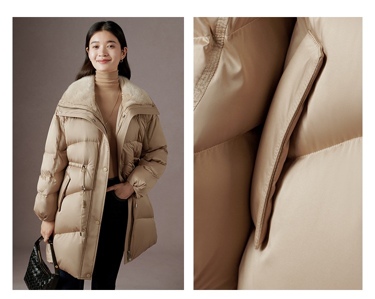 水貂毛大翻领白鹅绒羽绒服女2023冬季新款高端修身显瘦外套