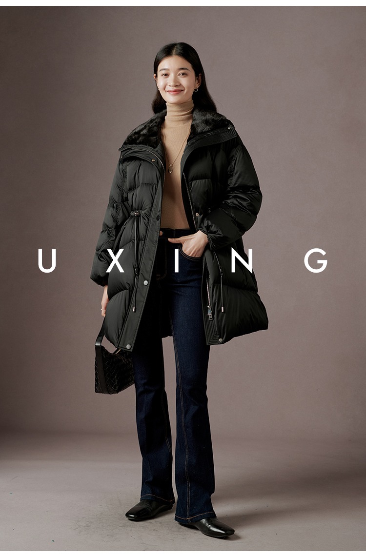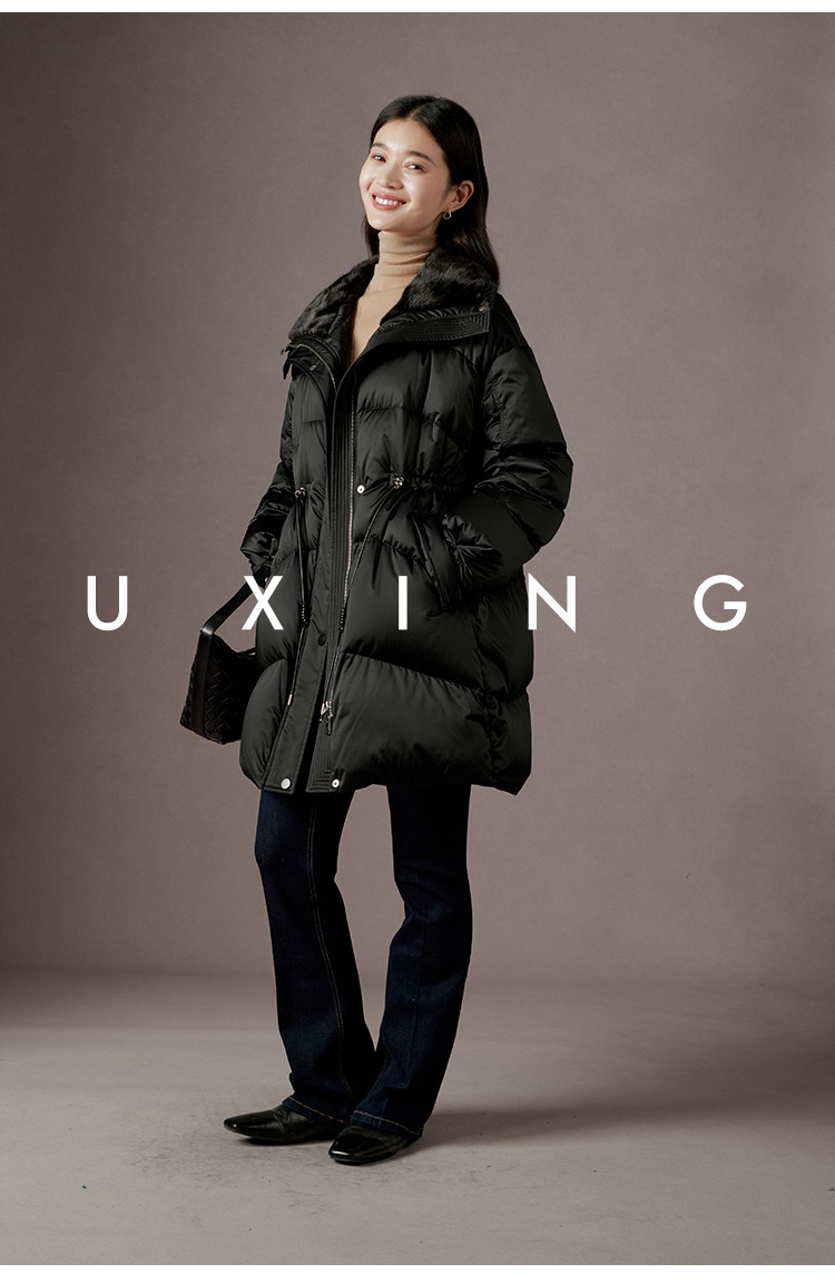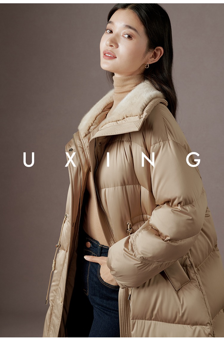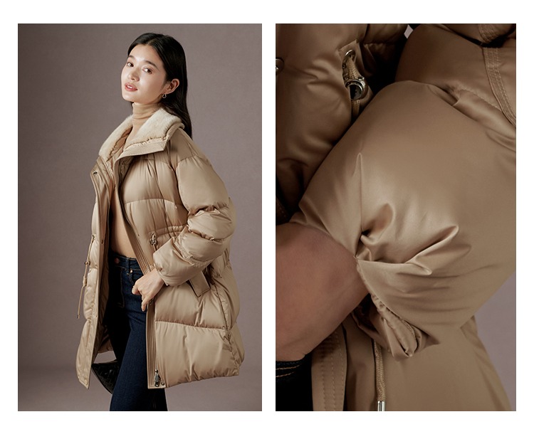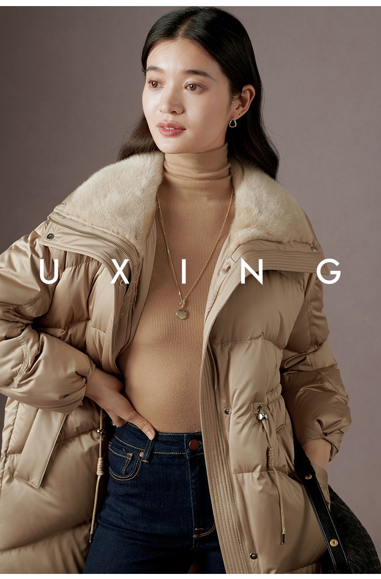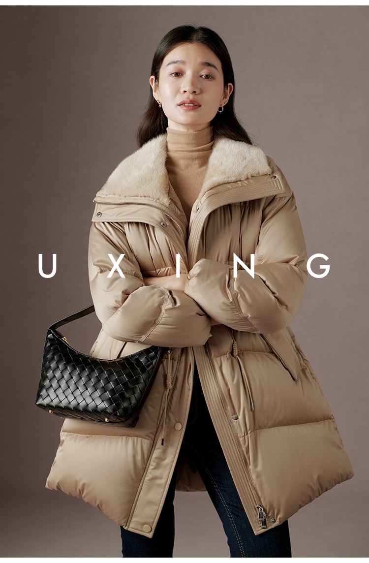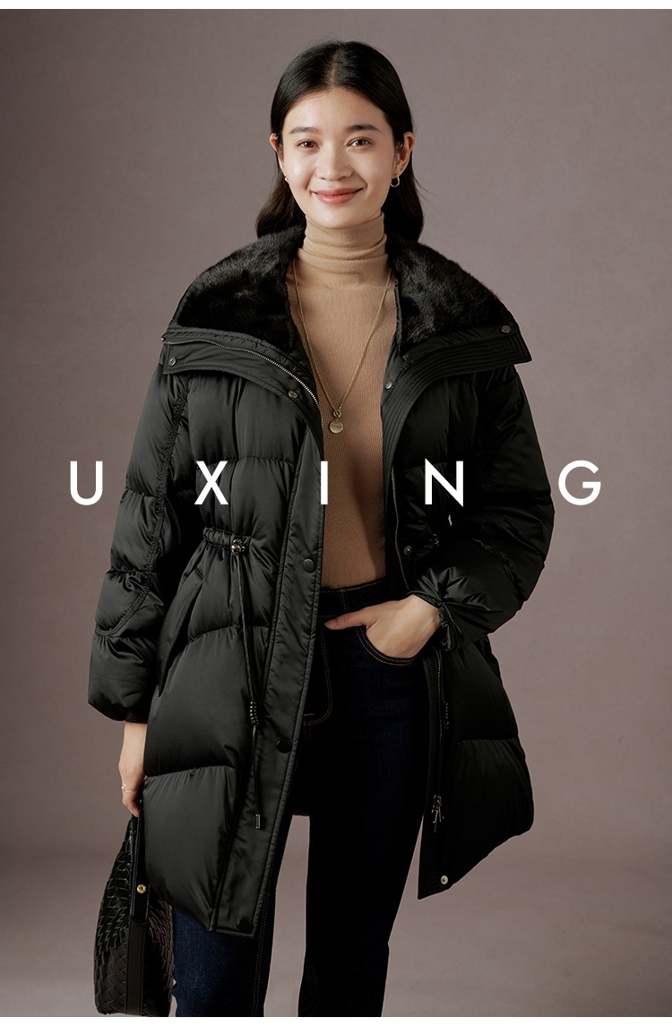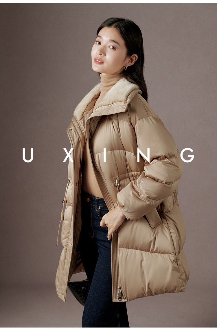 水貂毛大翻领白鹅绒羽绒服女2023冬季新款高端修身显瘦外套