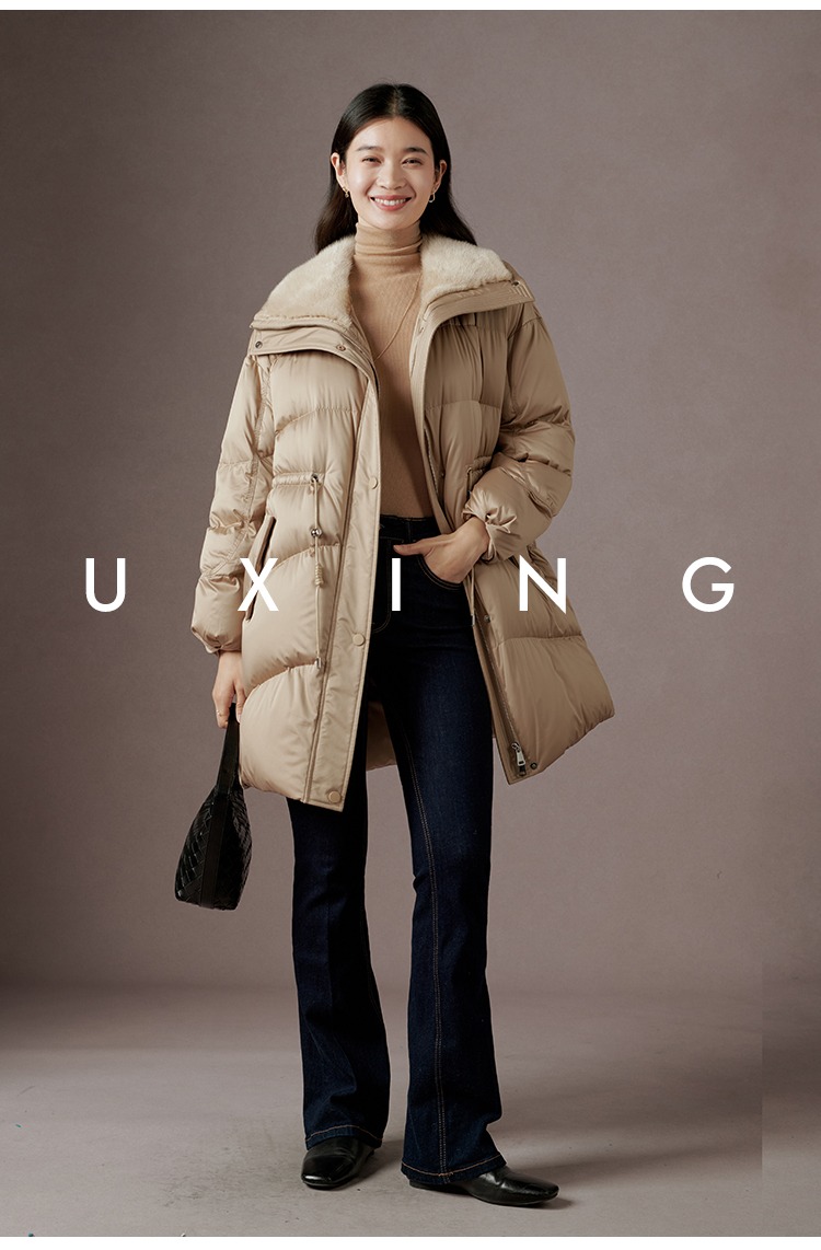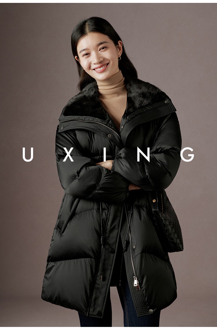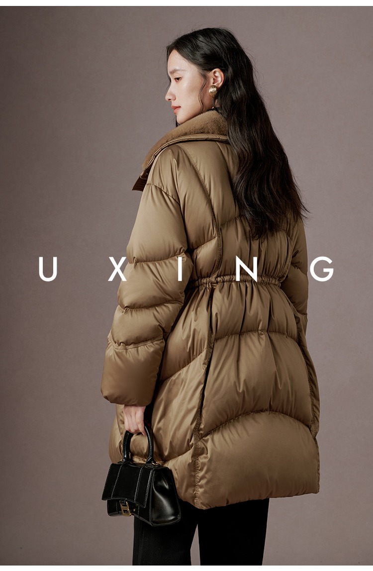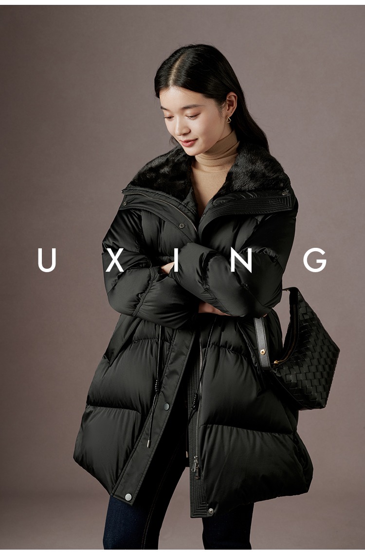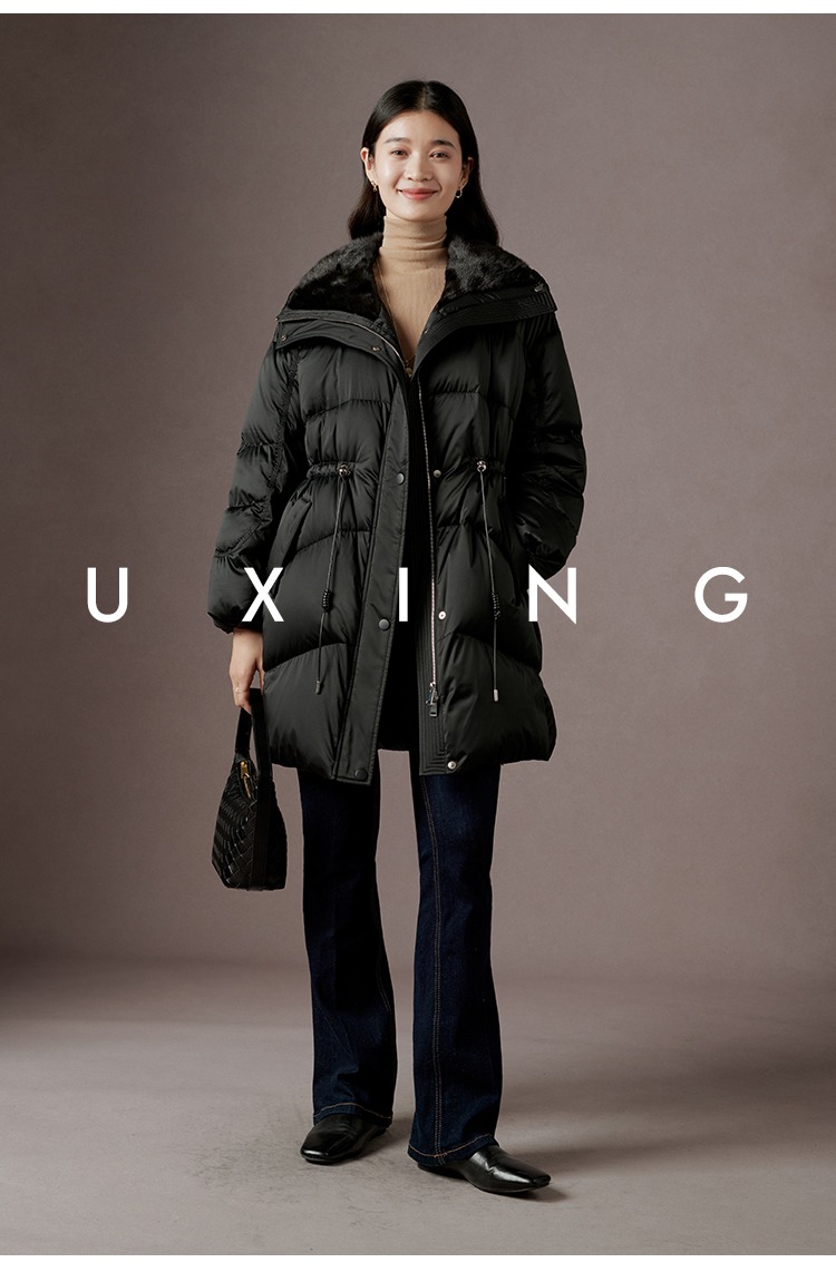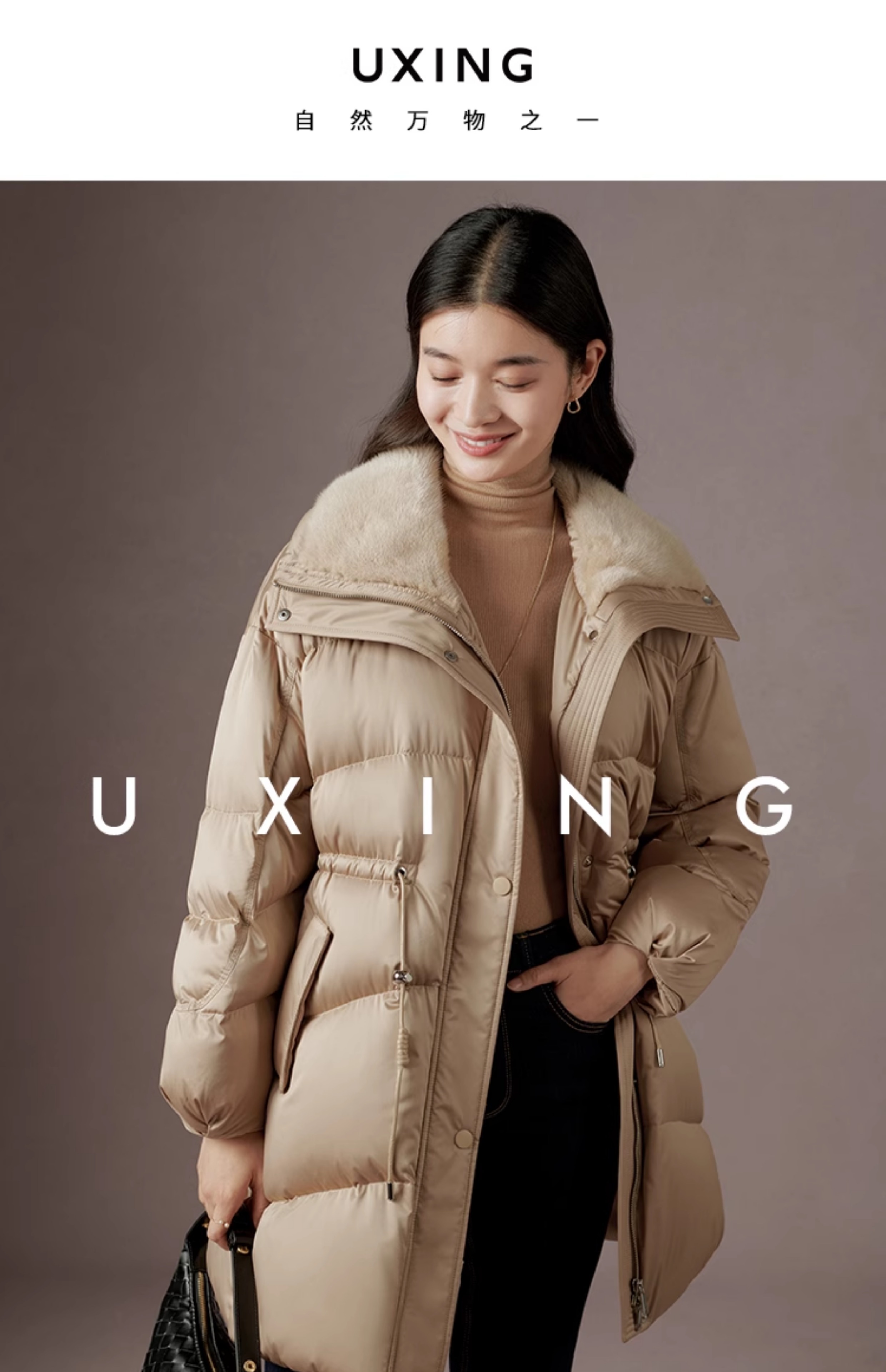 水貂毛大翻领白鹅绒羽绒服女2023冬季新款高端修身显瘦外套