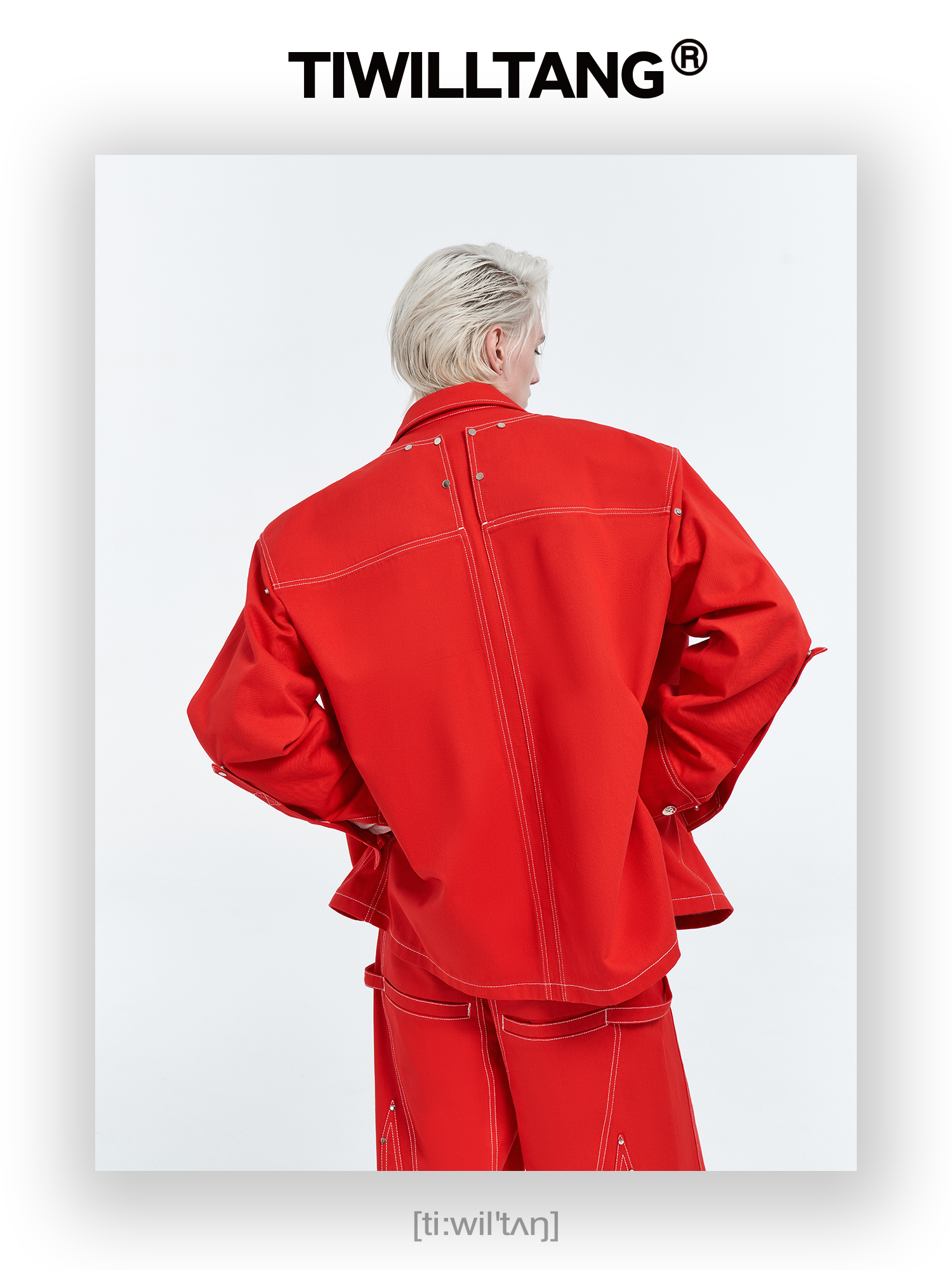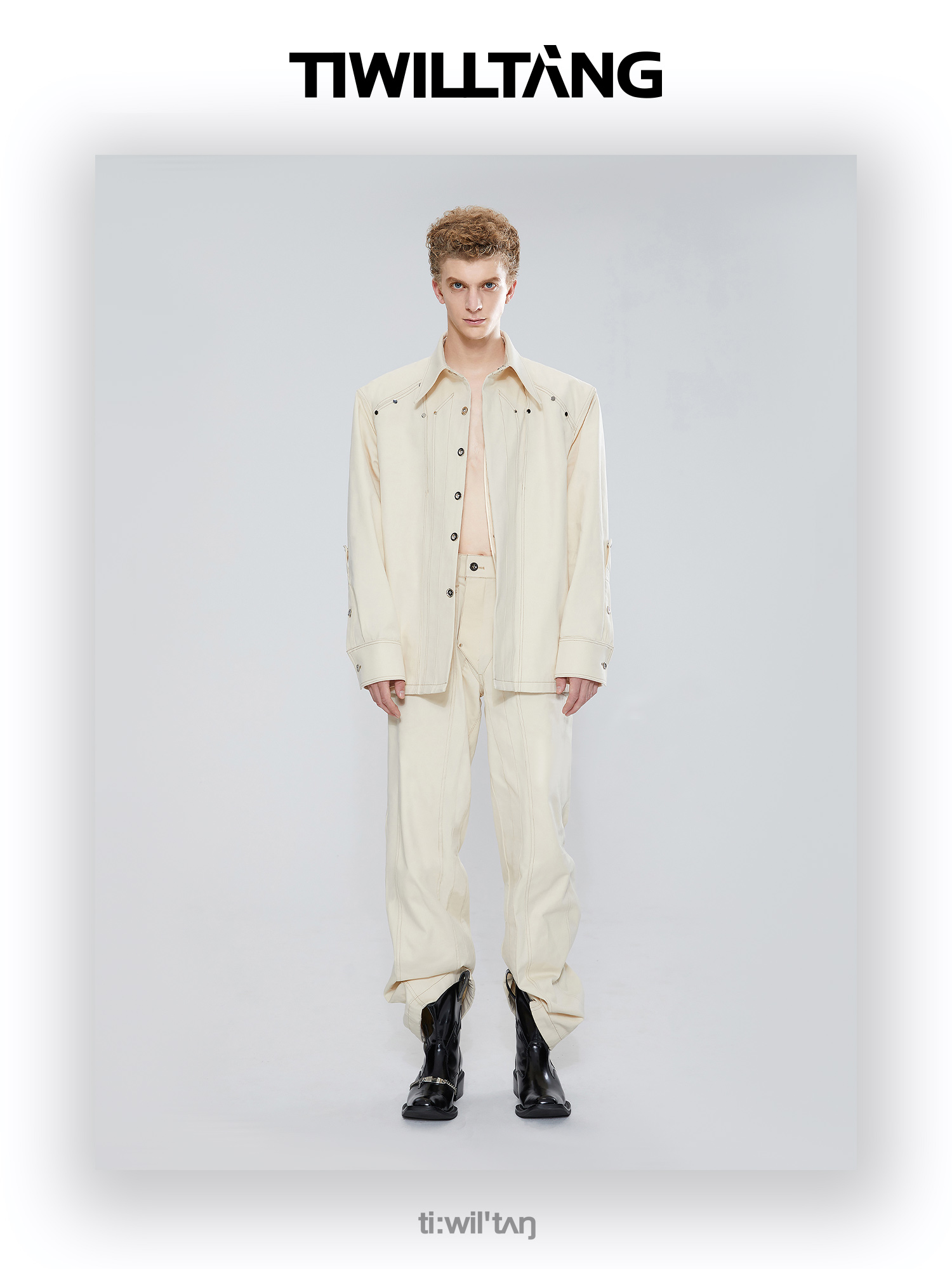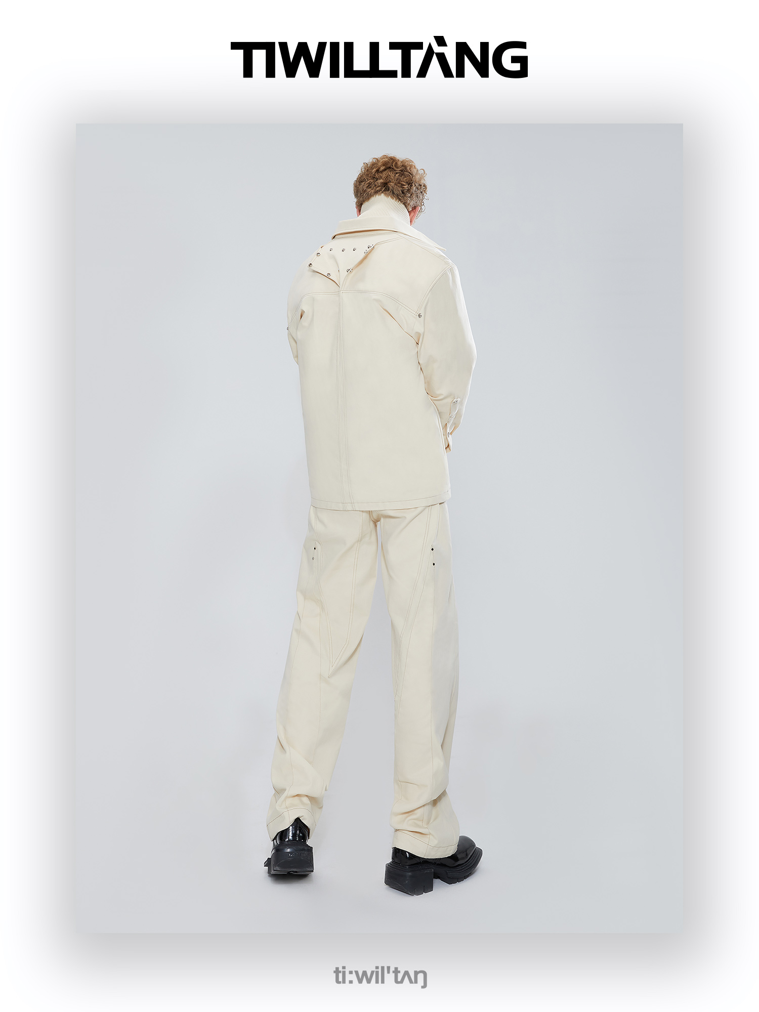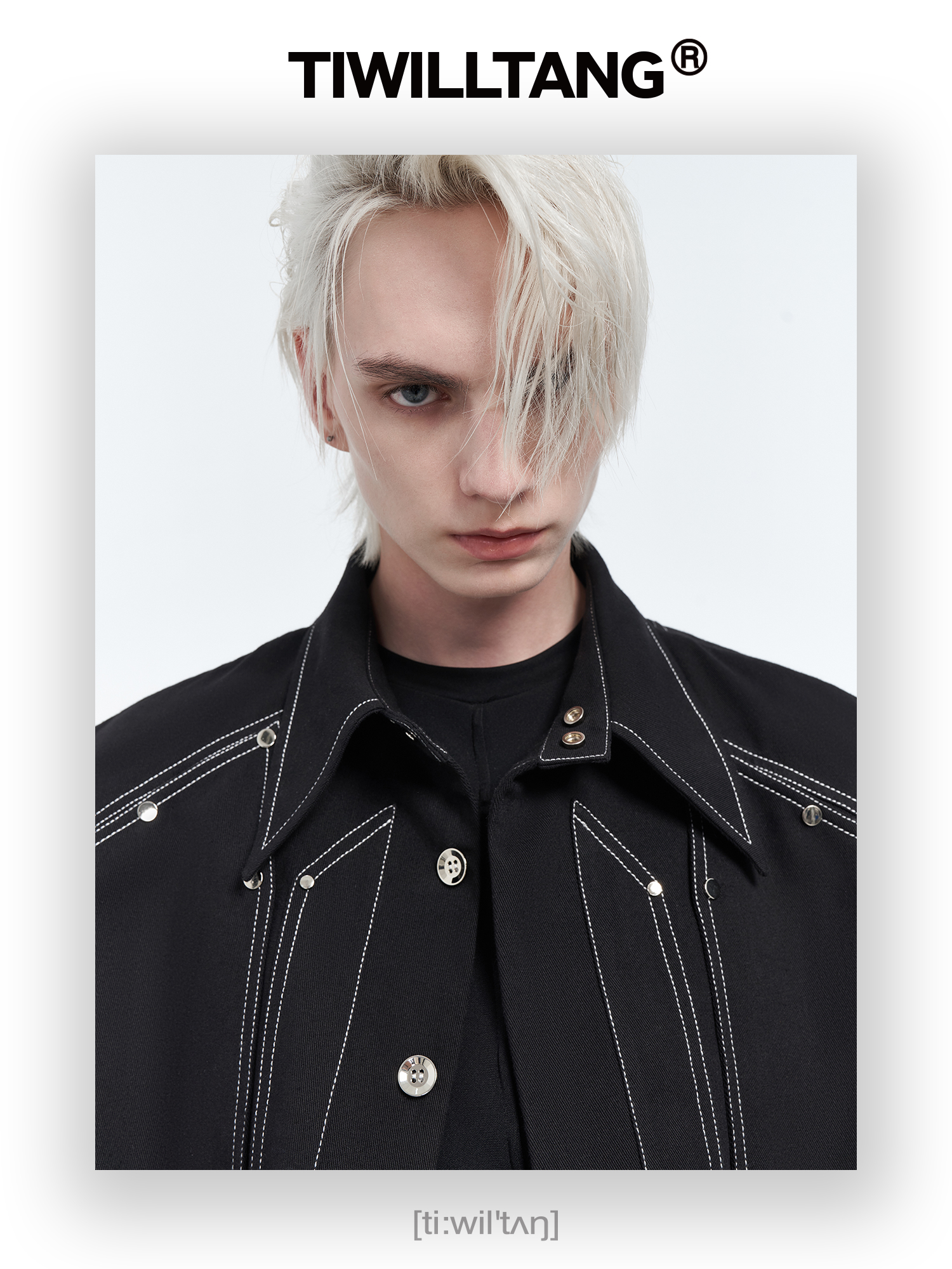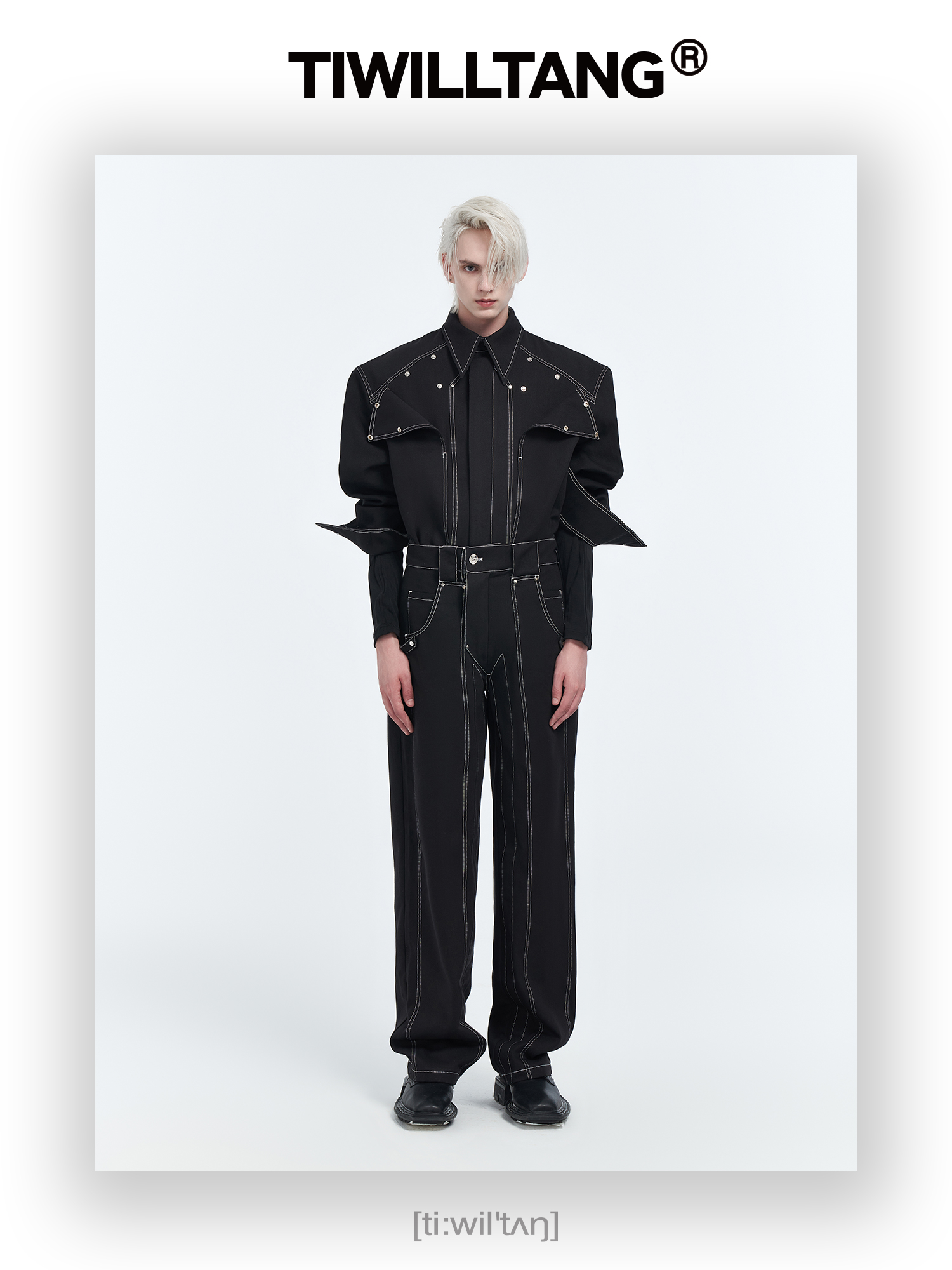 TIWILLTANG启世录“纤裕制焕”黑色异形可拆卸铆钉工装夹克套装