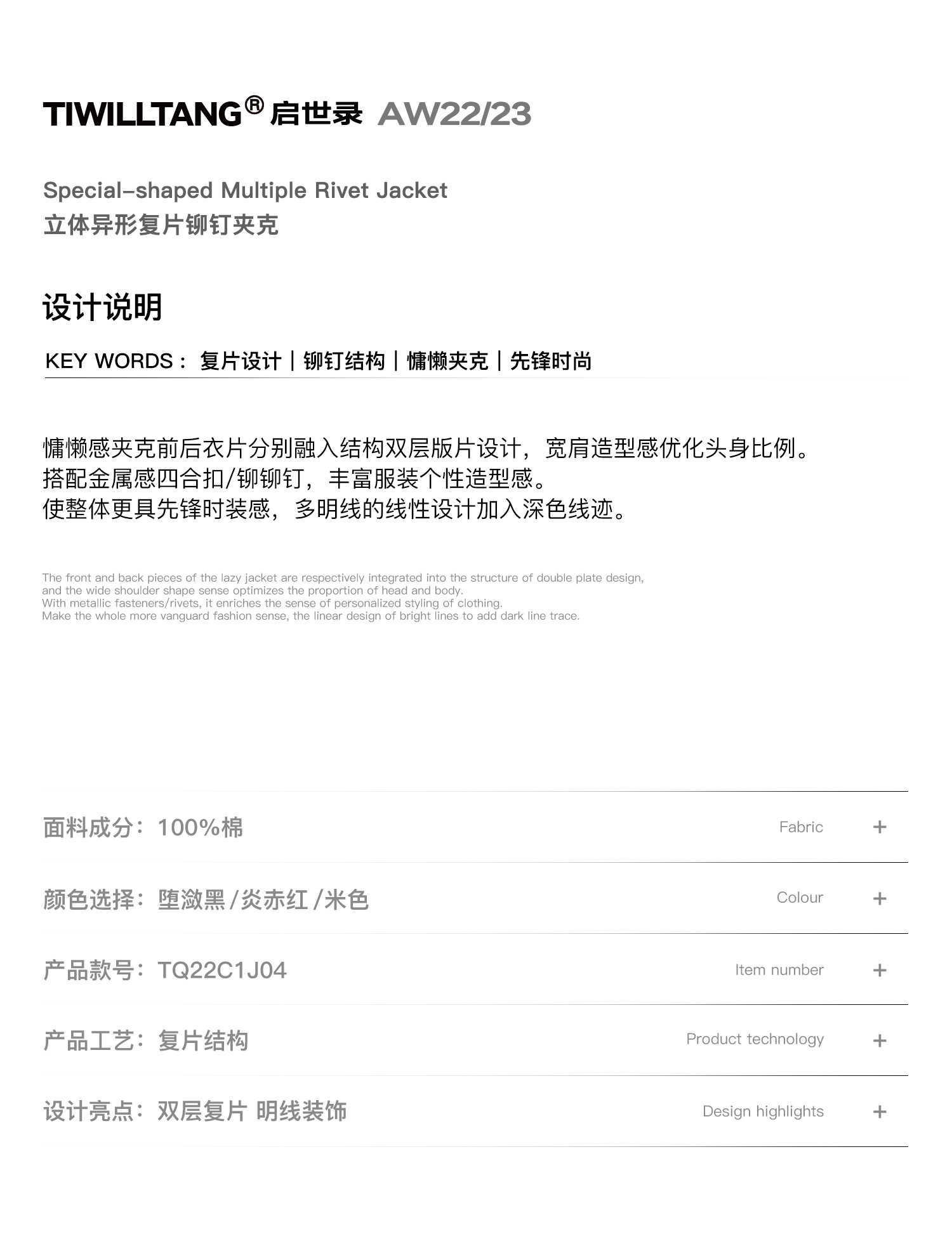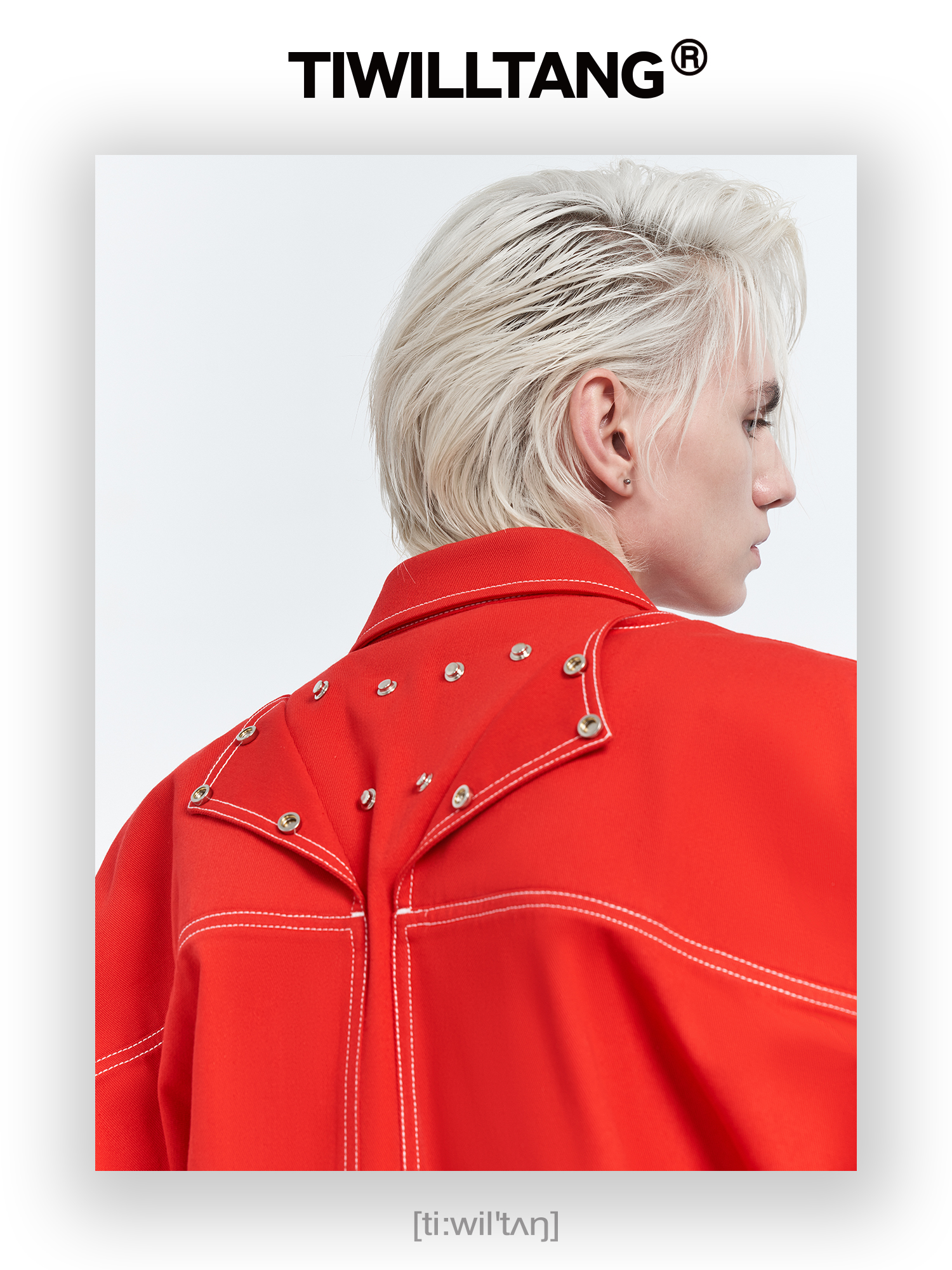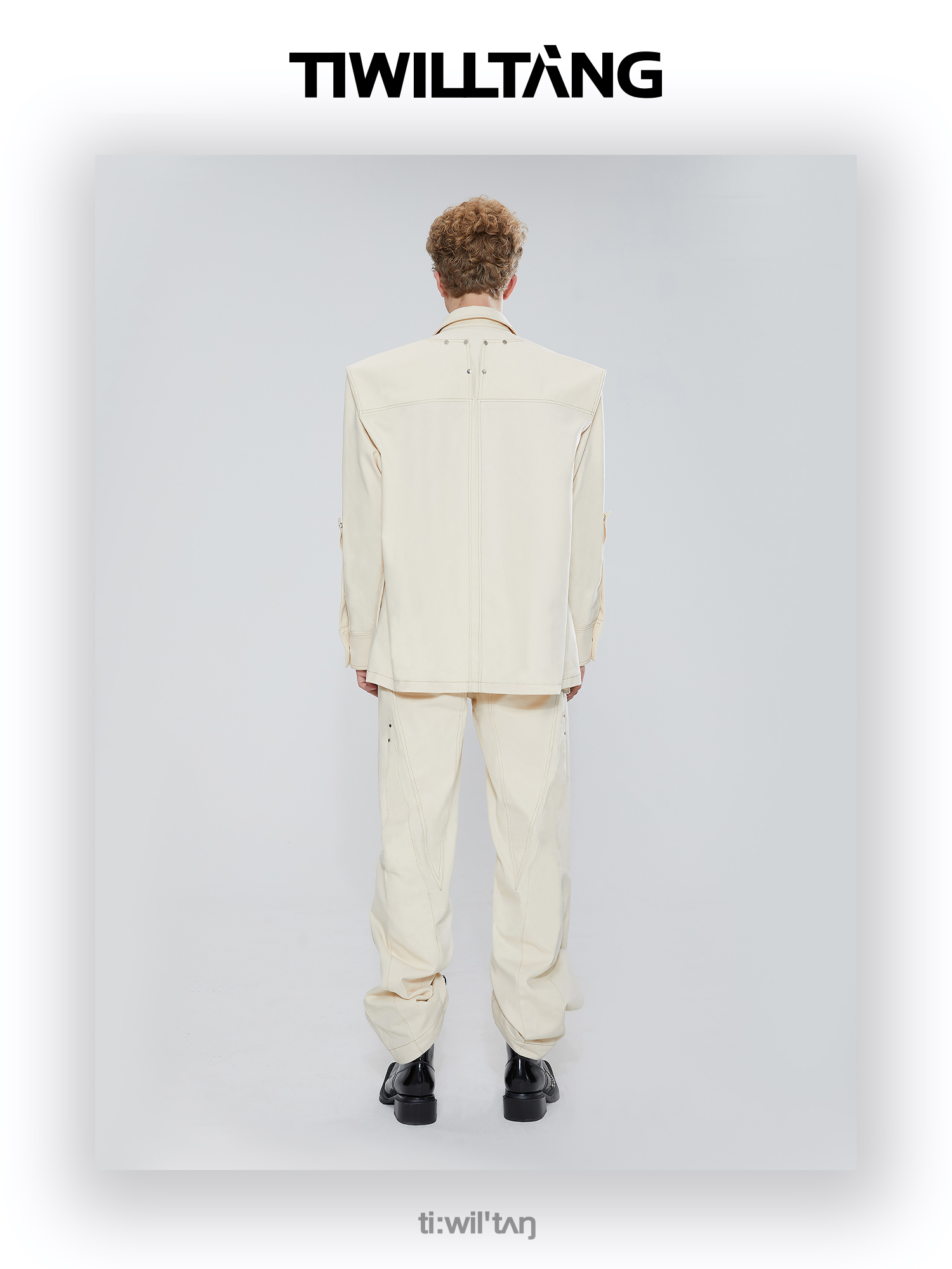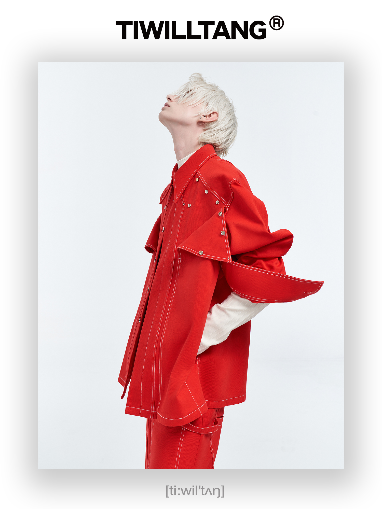 TIWILLTANG启世录“纤裕制焕”黑色异形可拆卸铆钉工装夹克套装