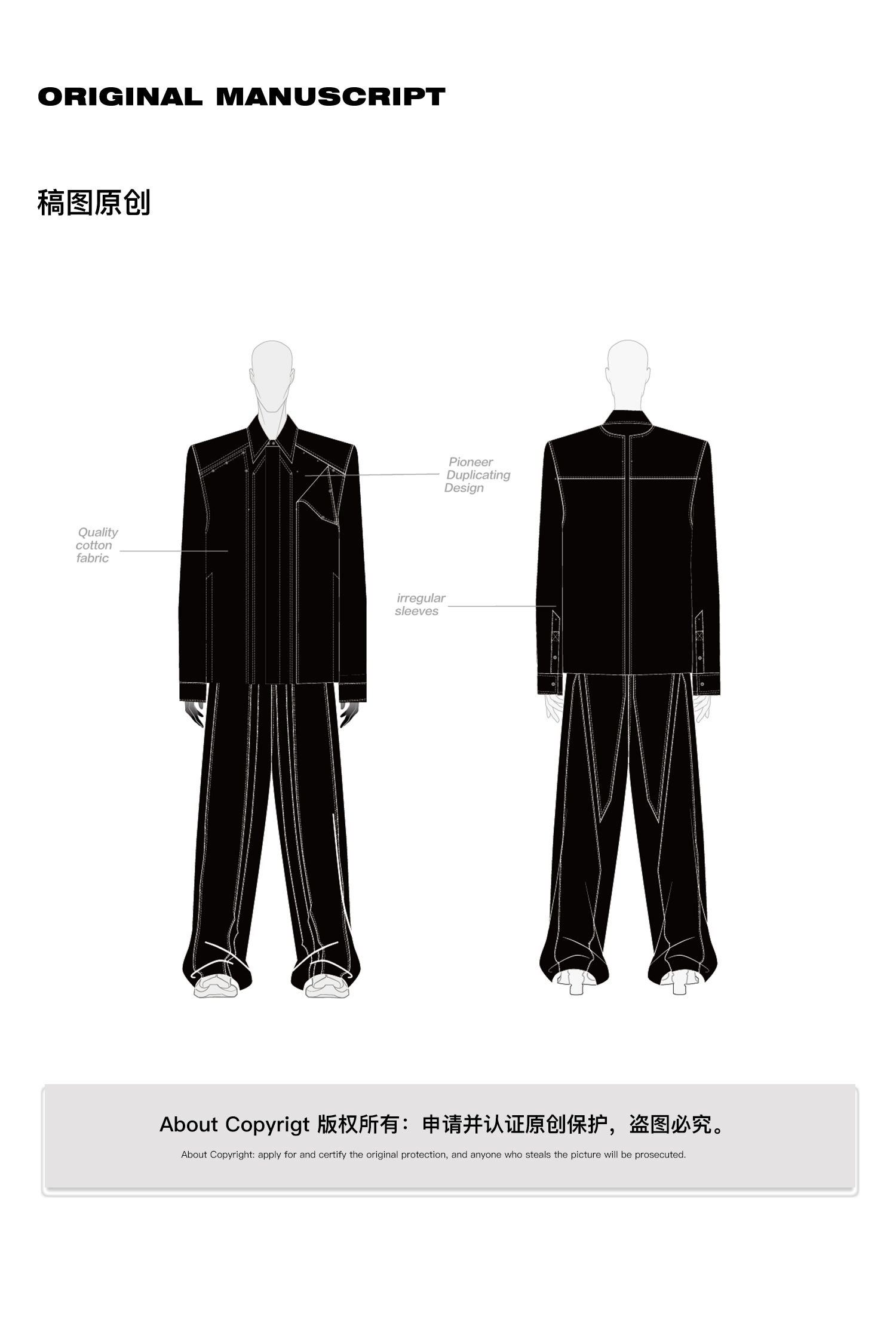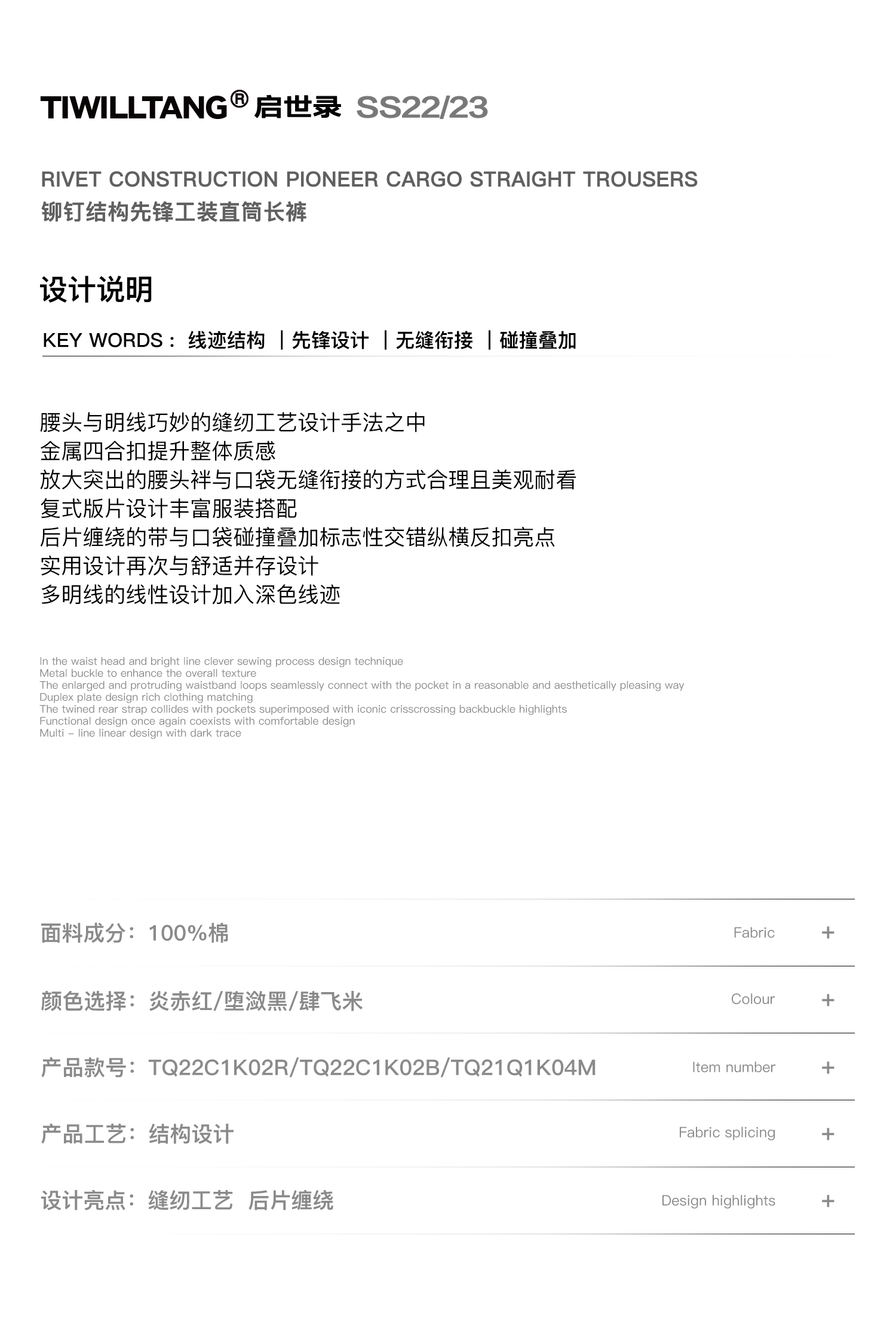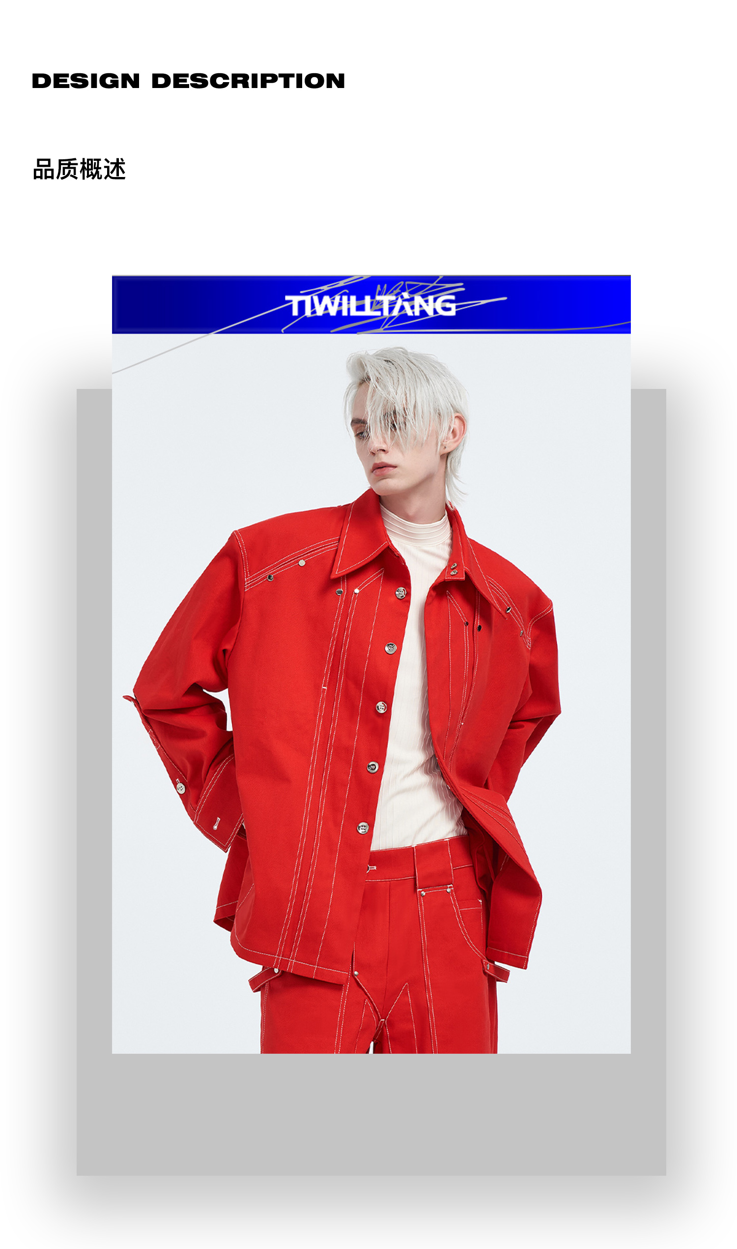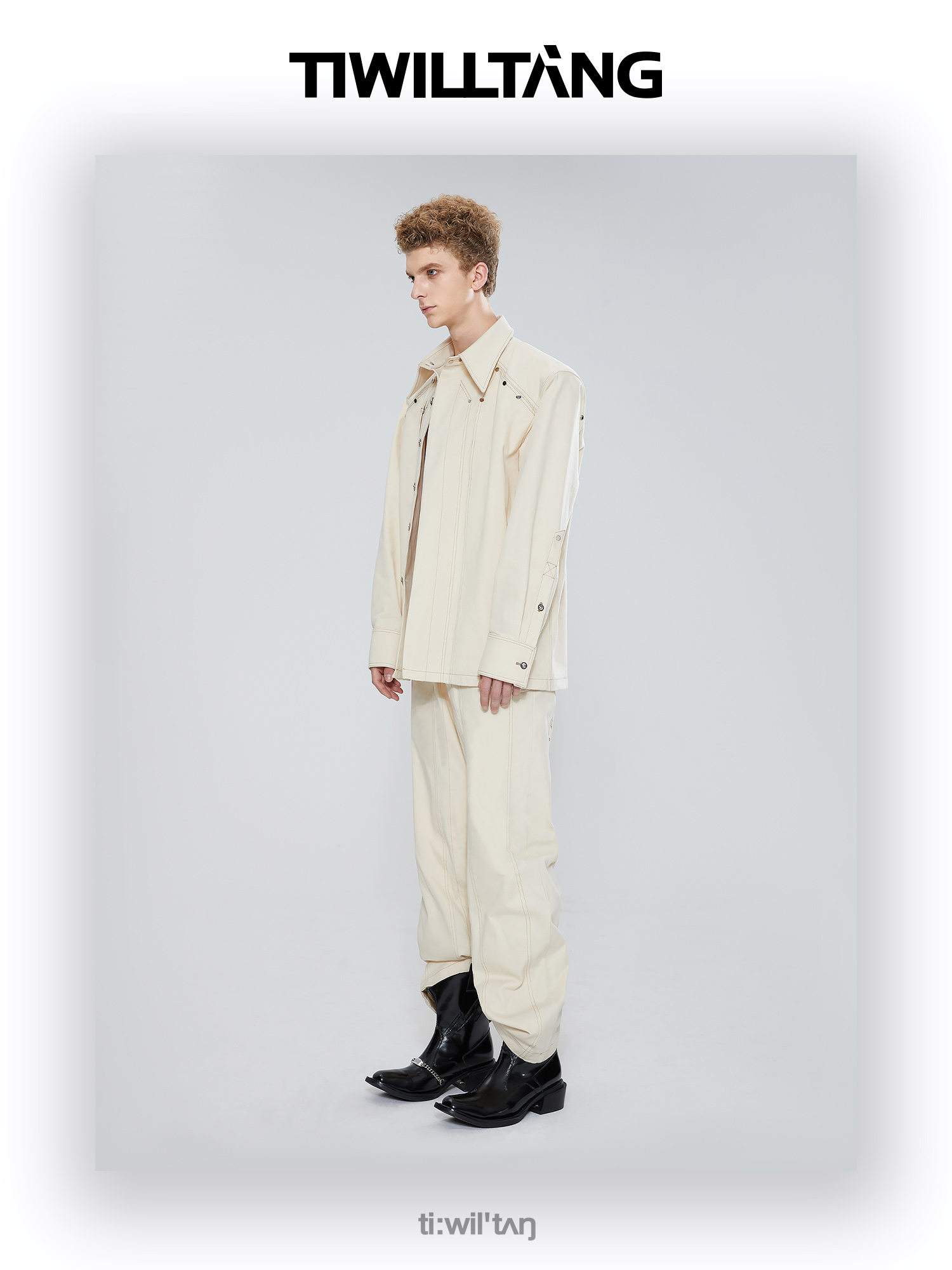 TIWILLTANG启世录“纤裕制焕”黑色异形可拆卸铆钉工装夹克套装