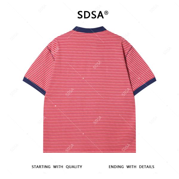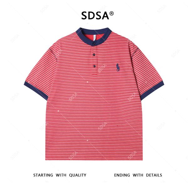 T3938夏季高级感新款男士美式撞色条纹半纽扣短袖T恤刺绣标设计百搭潮