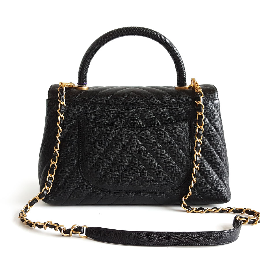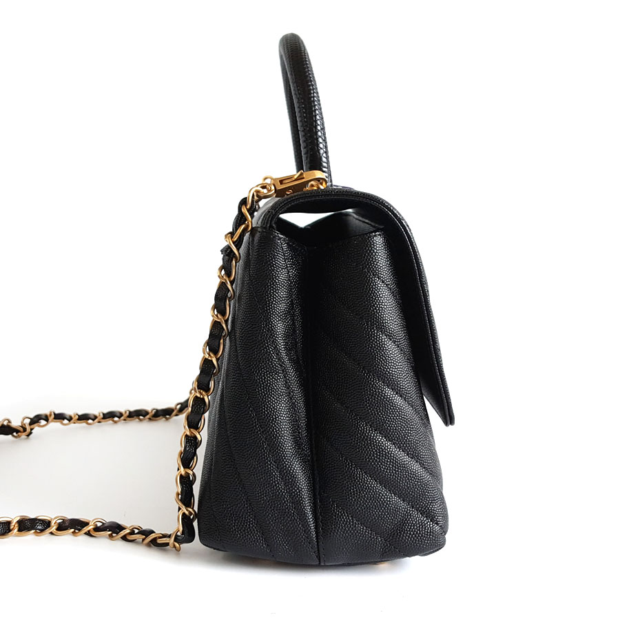 款式 | 中号黑金荔枝皮蜥蜴手柄V纹cocohandle手提单肩包 |