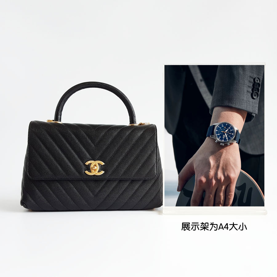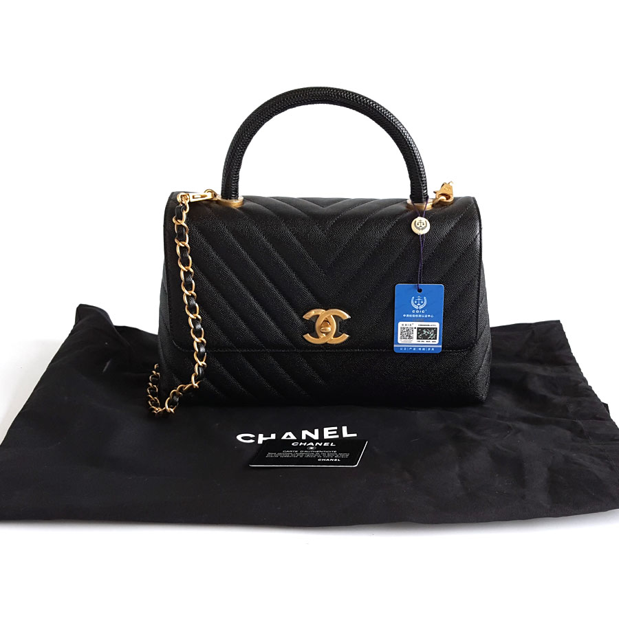 【全新】CHANEL香奈儿Cocohandle系列A92991 Y83710 94305中号黑金荔枝皮蜥蜴手柄V纹Cocohandle手提单肩包110925AK03 现售价:22500!